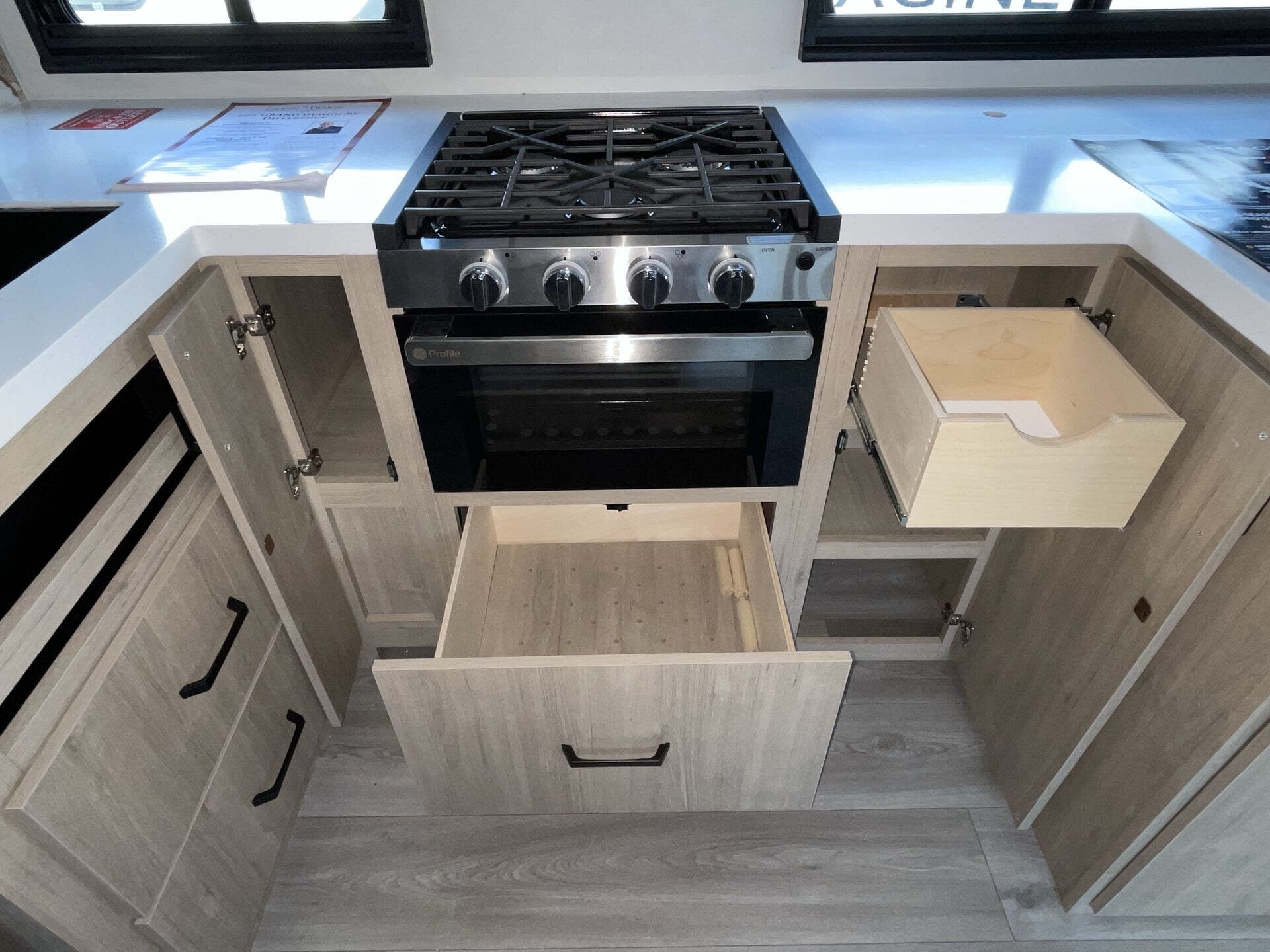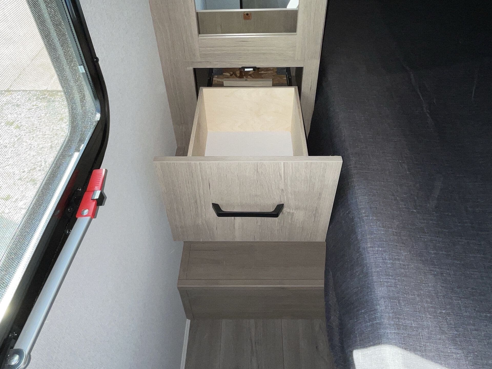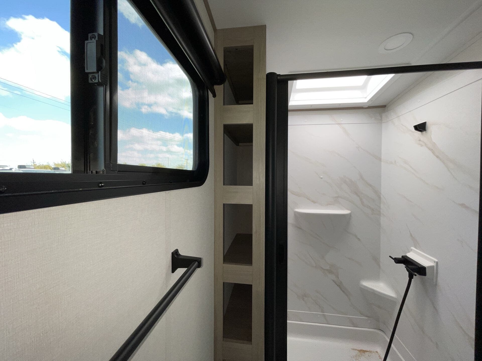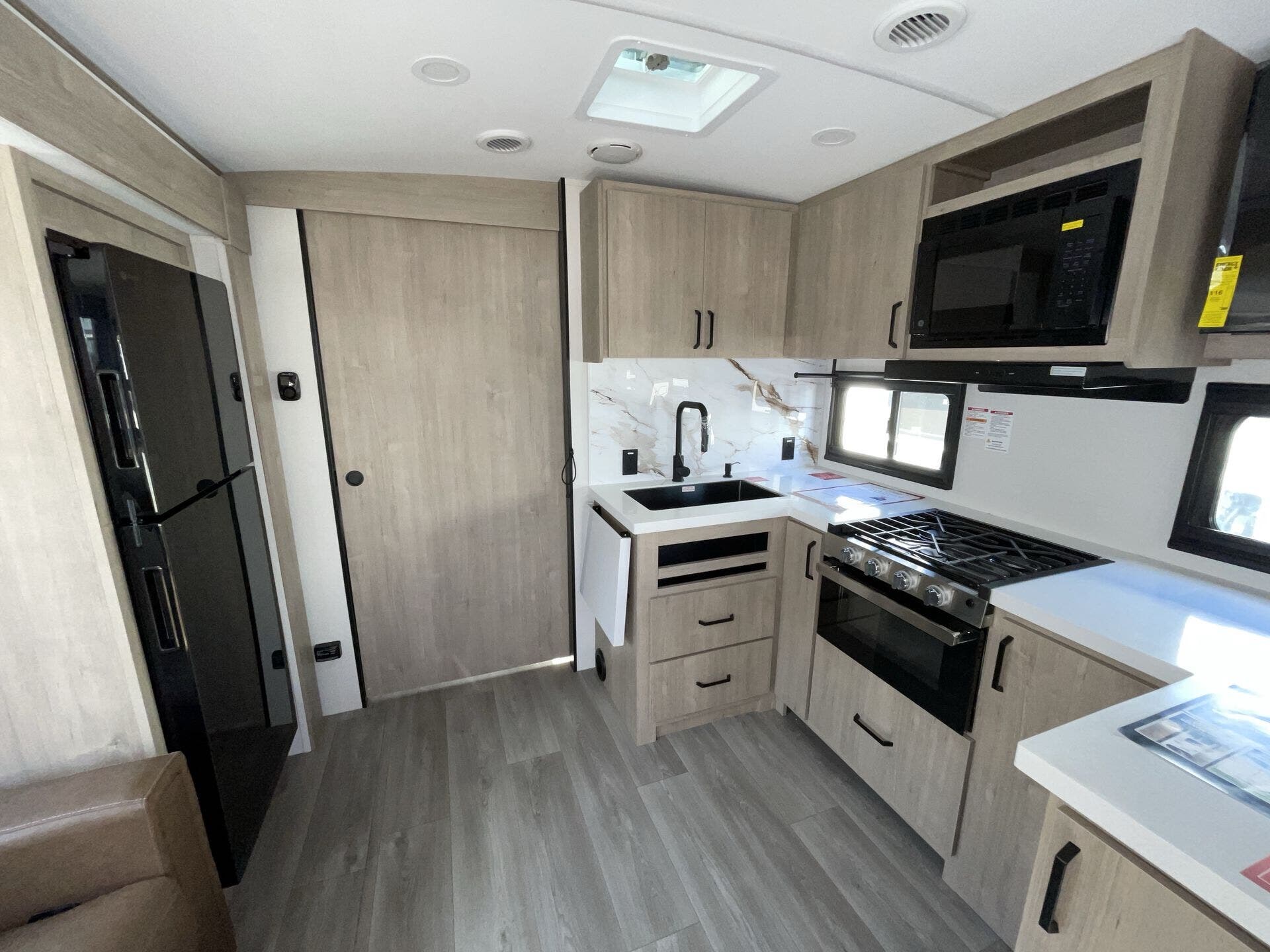 The 2026 Grand Design Imagine 2300MK is perfect if you want something super manageable to tow but still spacious and comfortable inside. The front queen bedroom gives you a cozy, private spot, and the slide-out really opens up the living area. The theater seating is great for relaxing after a long day, and the rear bath actually has room to move — no squeezing in sideways.