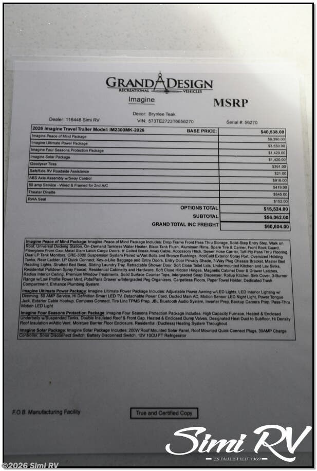 Request More Info on this 2026 Grand Design Imagine 2300MK Offered for sale by Simi RV