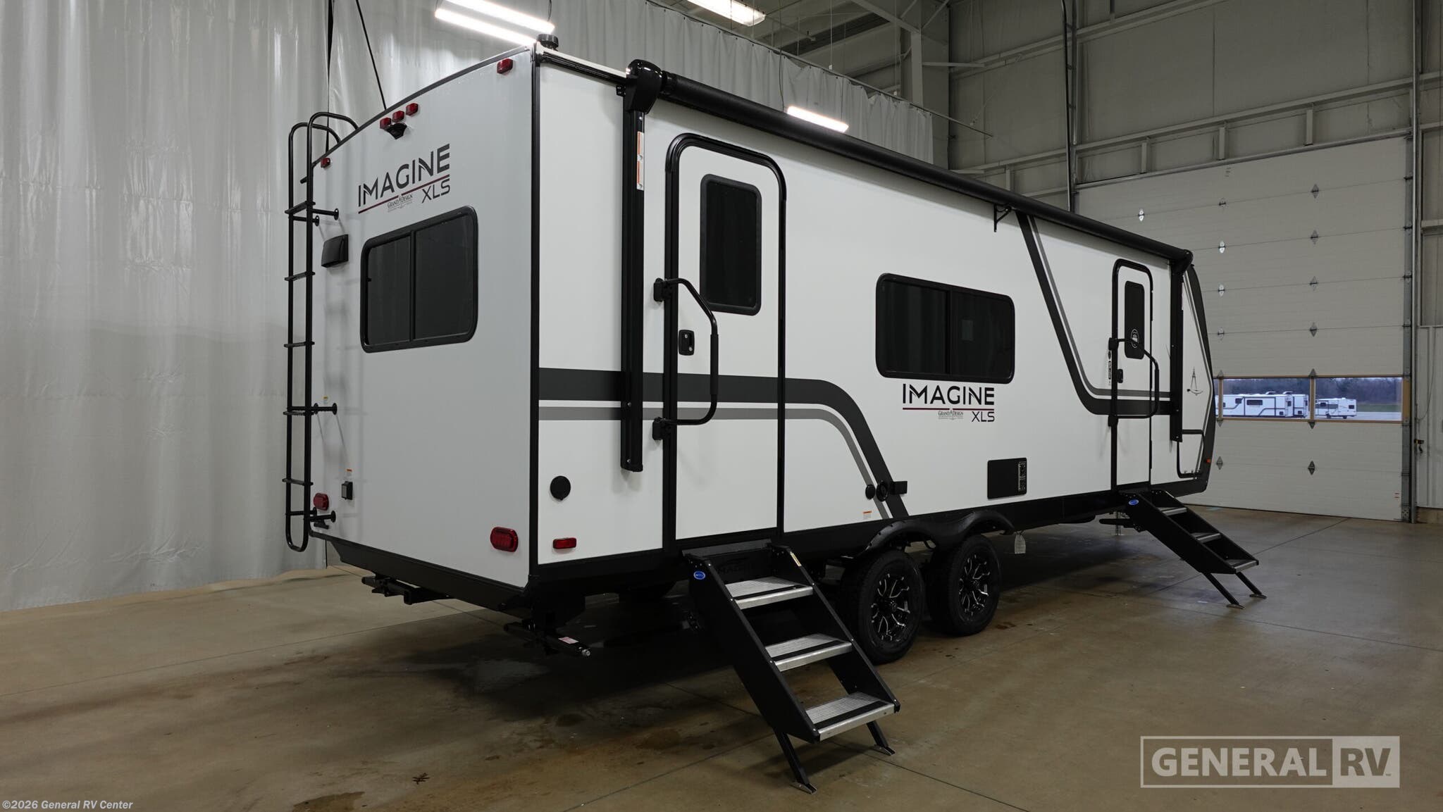 ## Grand Design Imagine XLS travel trailer 23LDE highlights: - Private Bedroom - Dual Entry - Walk-Through Bath - Single Slide - 20' Electric Awning Treat yourself to a weekend of fun in this Imagine XLS travel trailer! Whether it's just you and your spouse, or you've chosen to bring along a group of friends, this trailer will meet your needs. The front bedroom can sleep two people on the walk-around queen-size bed. The bedroom is quite functional because it not only contains the second exterior entry door, but it also has a private entrance into the walk-through bathroom since it is located on the other side of the bathroom. The booth dinette is functional too because it can transform from a dining location into a sleeping location, and the theater seating is directly across from the LED TV for easy viewing. The rear kitchen is fit for the chef on the trip, it features residential countertops, a stainless-steel sink and a 3-burner range with oven for you to cook your meals in comfort. Let your imagination run wild with the possibilities that the Grand Design Imagine XLS travel trailer can provide! The Imagine XLS has been built with oversized tank capacities, an extra-large 2" fresh water drain valve, a ducted A/C system, a power tongue jack, and a heated and enclosed underbelly with suspended tanks. There is a designated heat duct to the subfloor and a residential ductless heating system throughout. For outdoor adventures, the electric awning with LED lights will enable you to stay protected, and the Tuff-Ply pass-thru flooring will withstand your adventures. You will also love the XLS Solar Package that comes with a 200W roof mounted solar panel, a 30 Amp charge controller, a 12V 10 cu. ft. refrigerator, and roof mounted quick connect plugs!