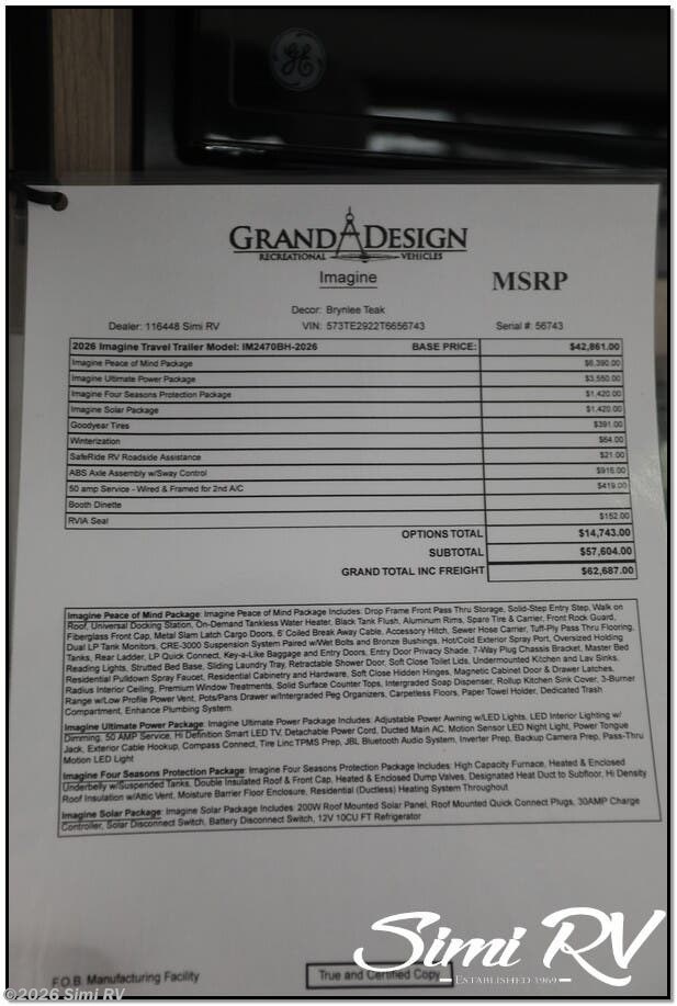 Request More Info on this 2026 Grand Design Imagine 2470BH Offered for sale by Simi RV