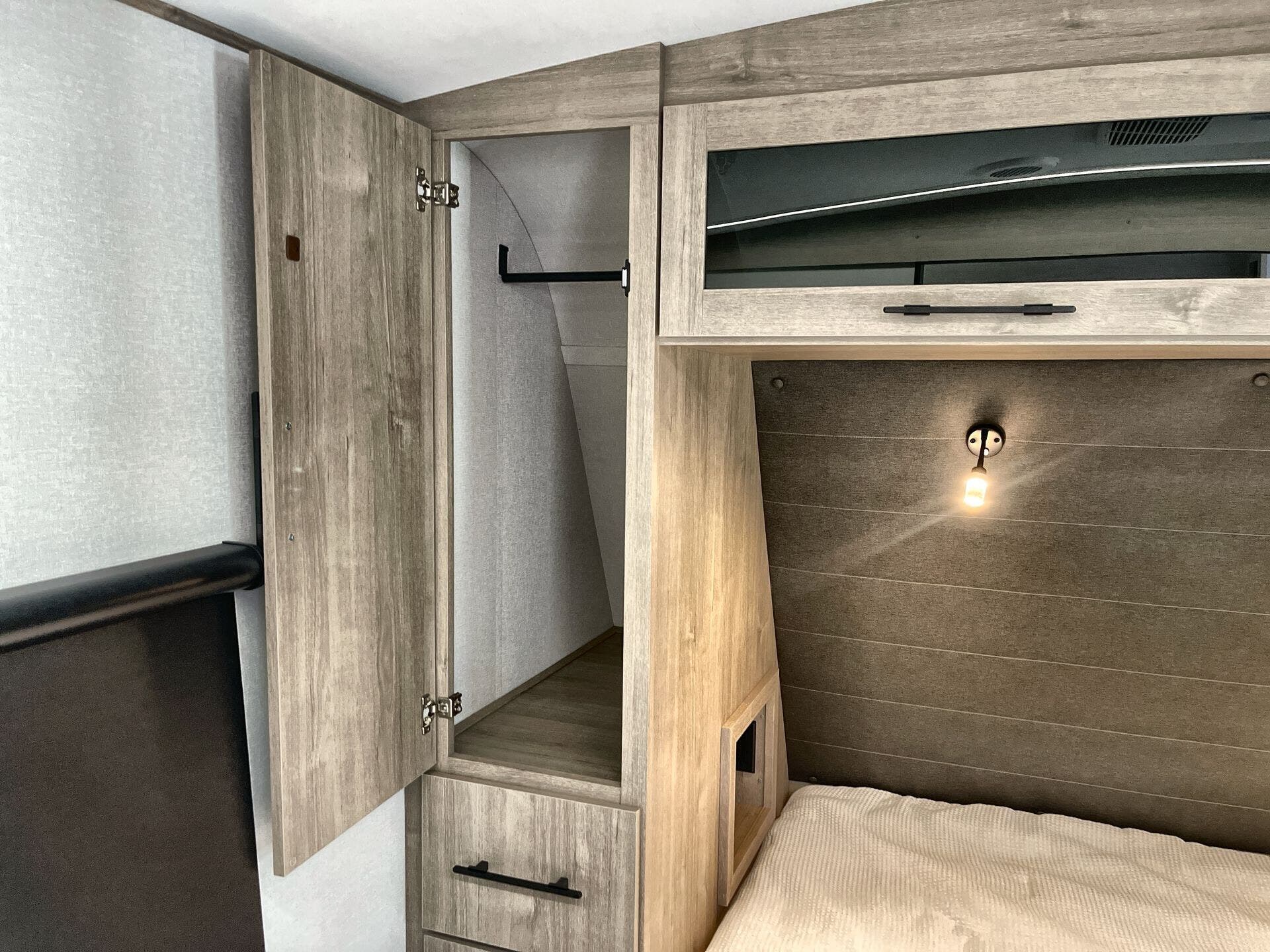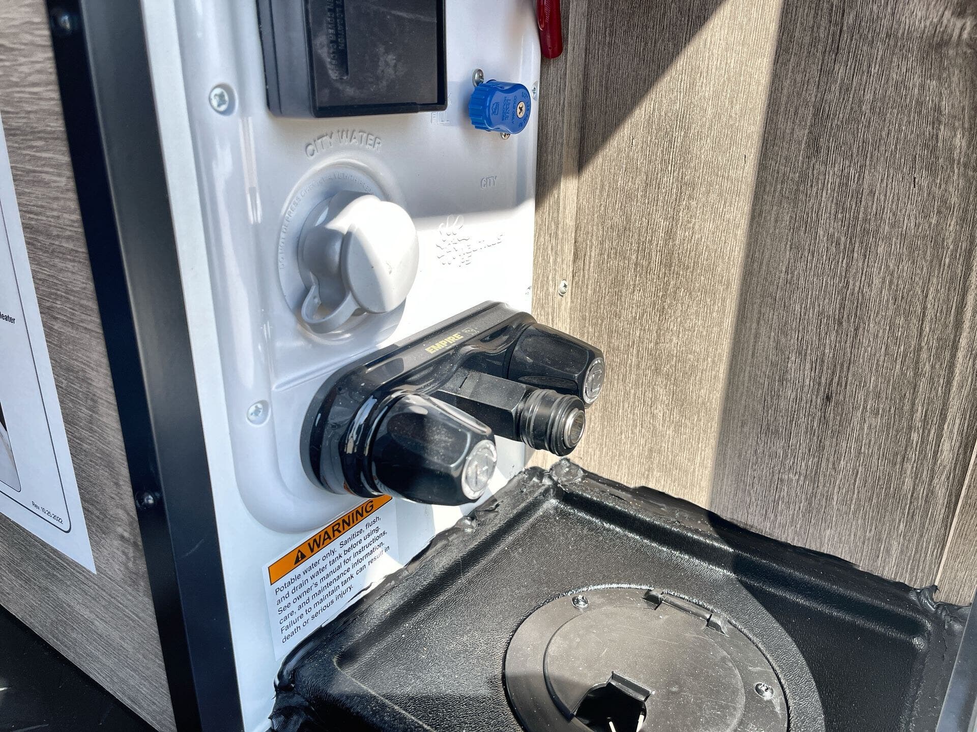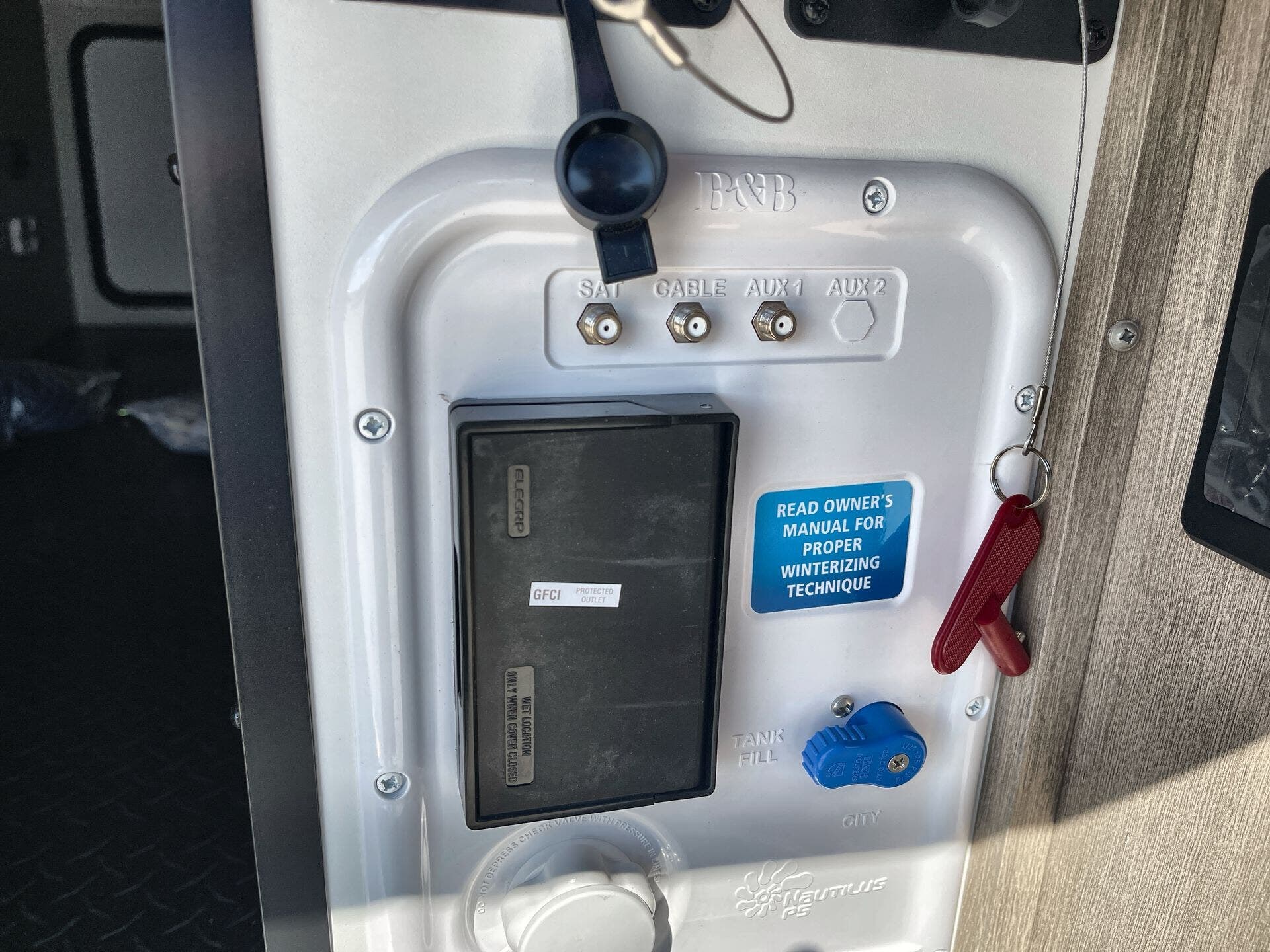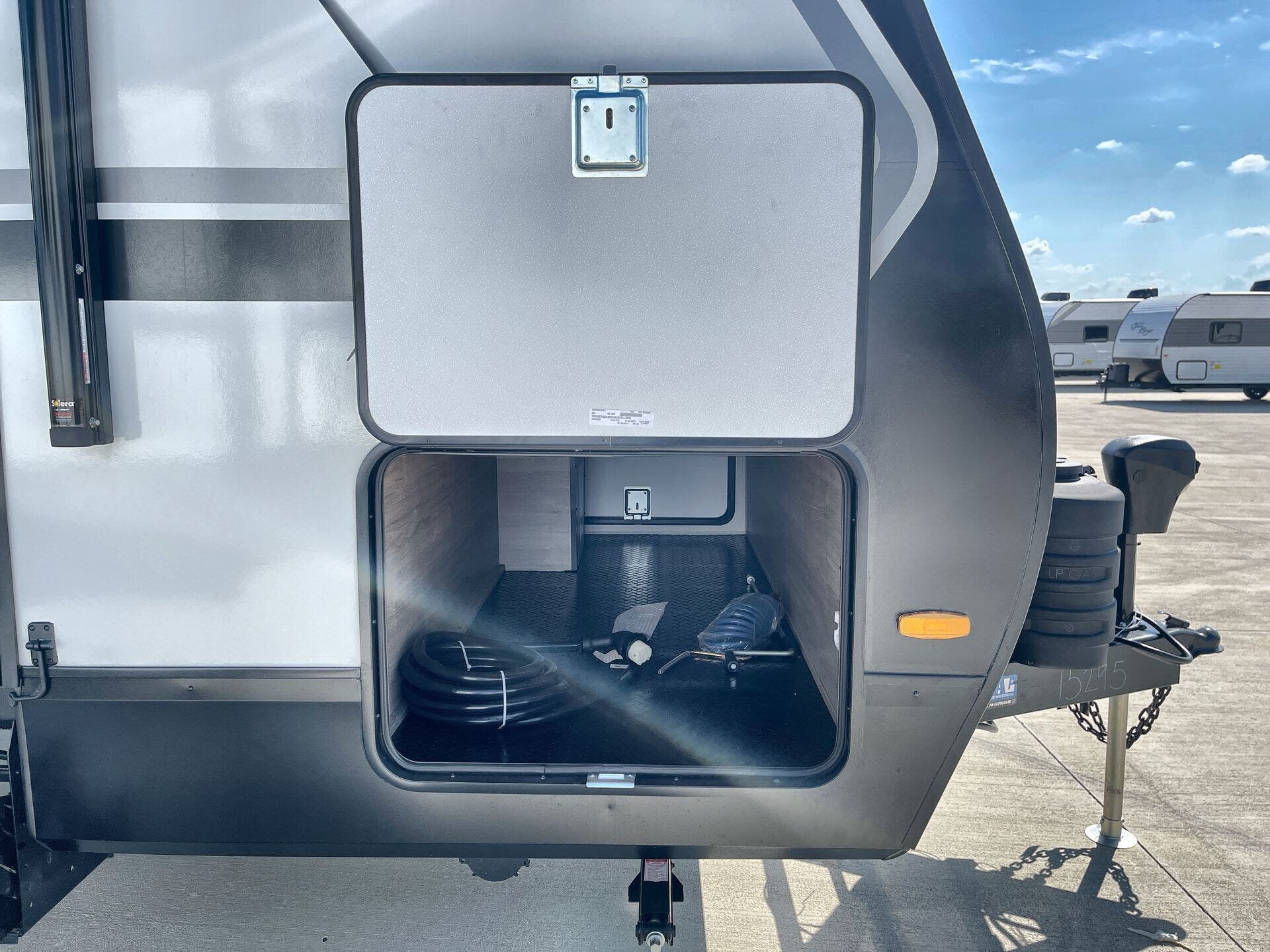 Awning, Black Tank Flush, Detachable, Detachable Power Cord, Enclosed Underbelly, Hitch, Ladder, Power Awning, Skylight, Slam Latch Baggage Doors -