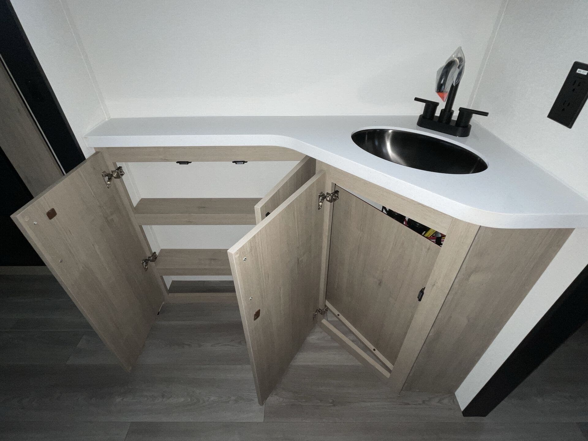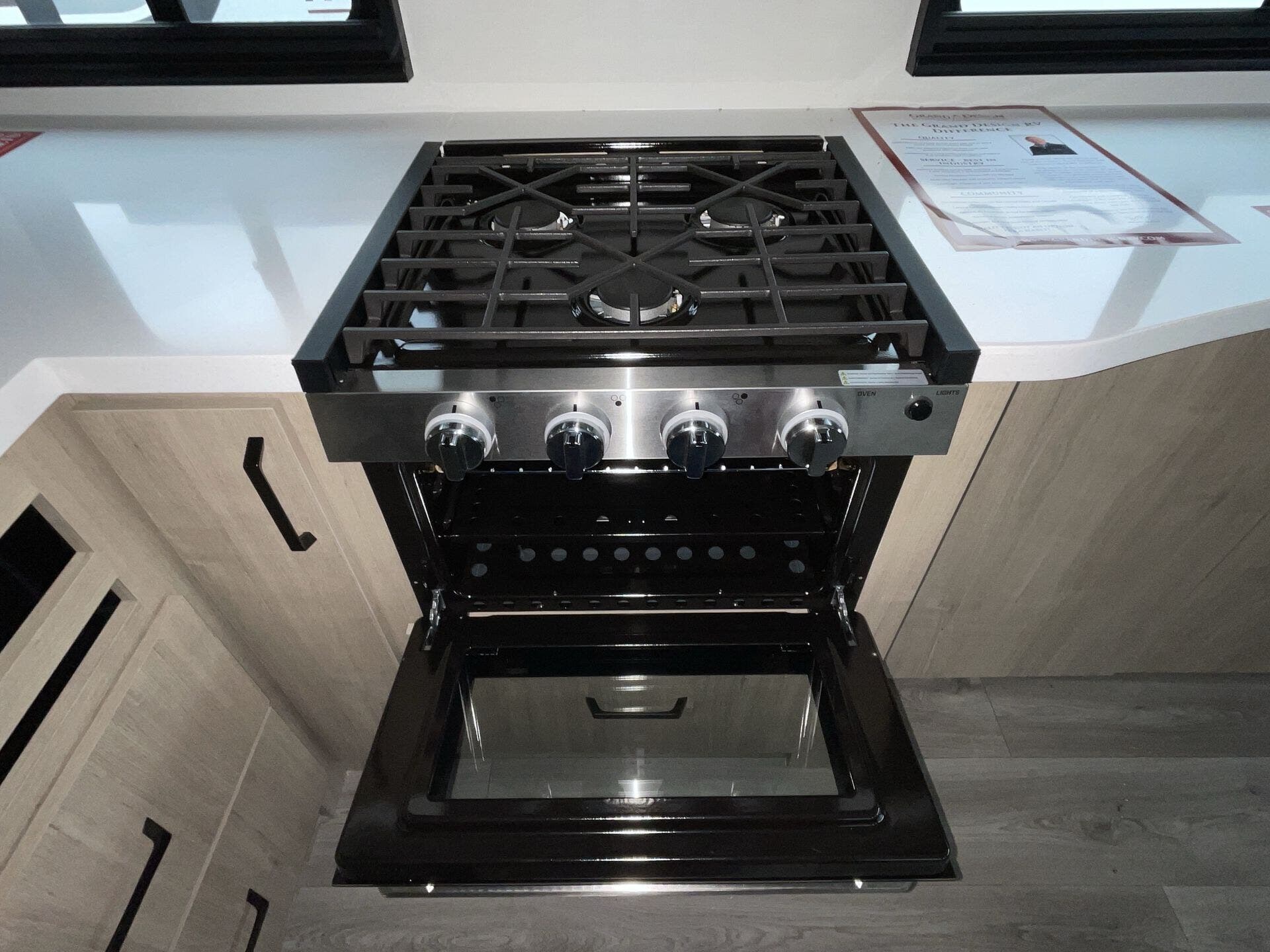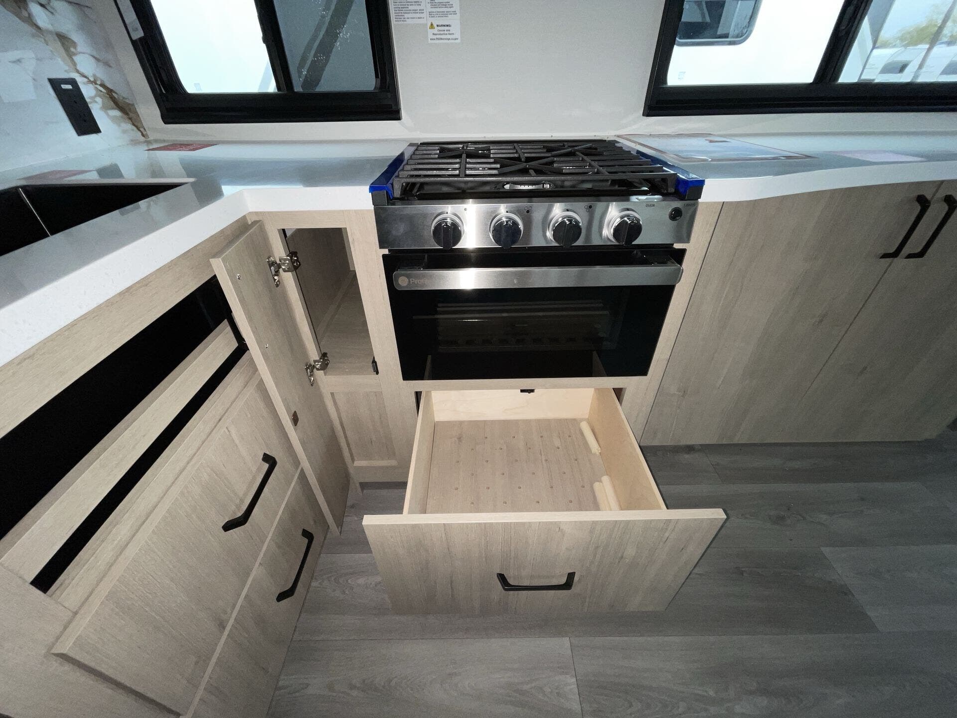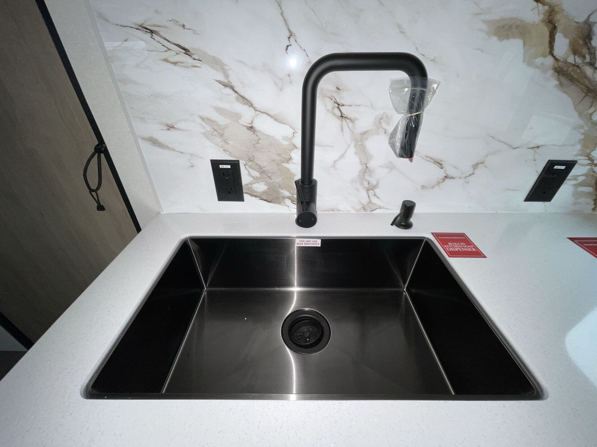 I like that it’s built right: an enclosed, heated underbelly; good insulation; tankless water heater — all those details add up when you’re out camping or traveling. The tank capacities give you enough water and gray/black tank space so you’re not constantly stopping to refill or dump.