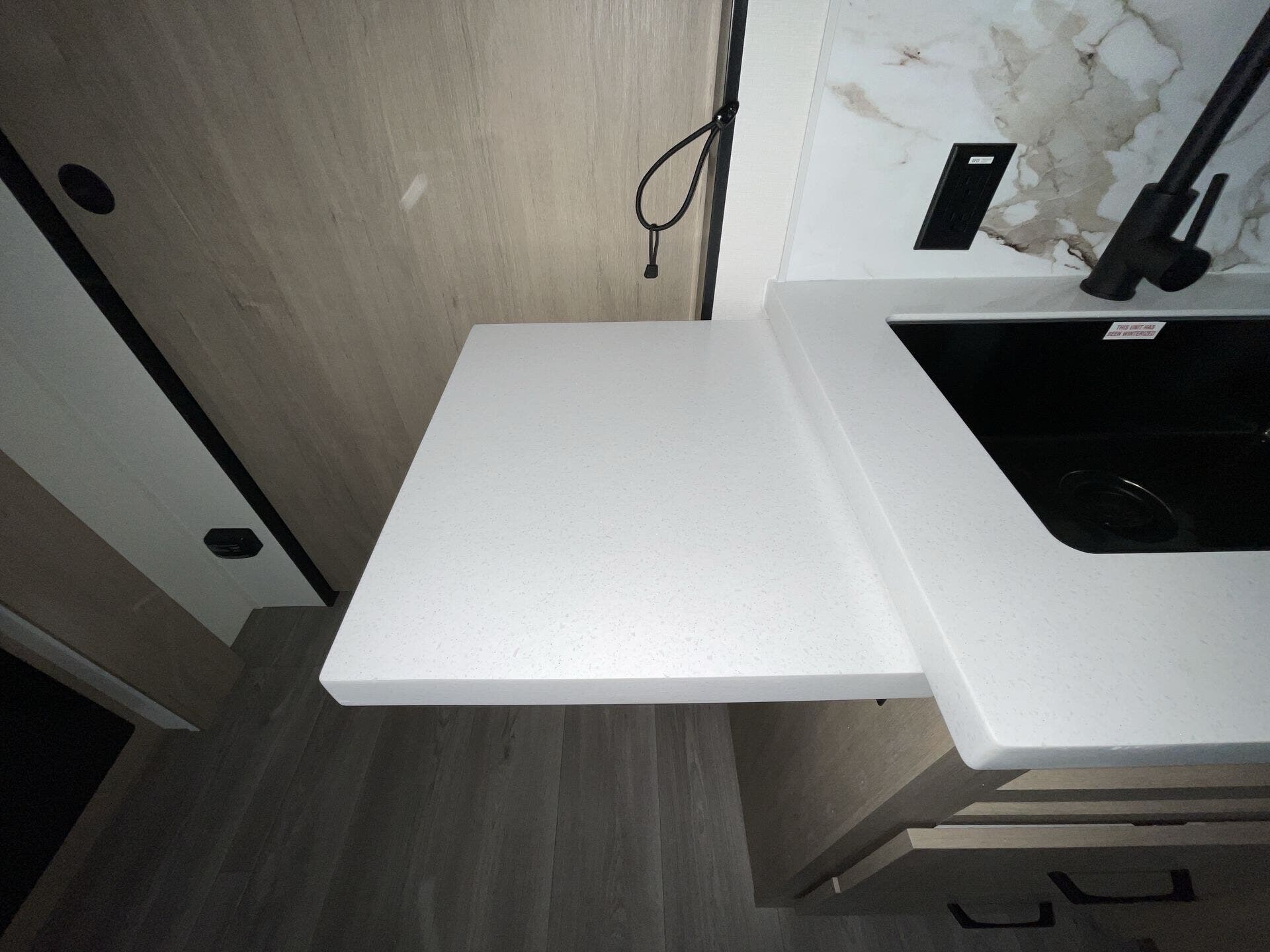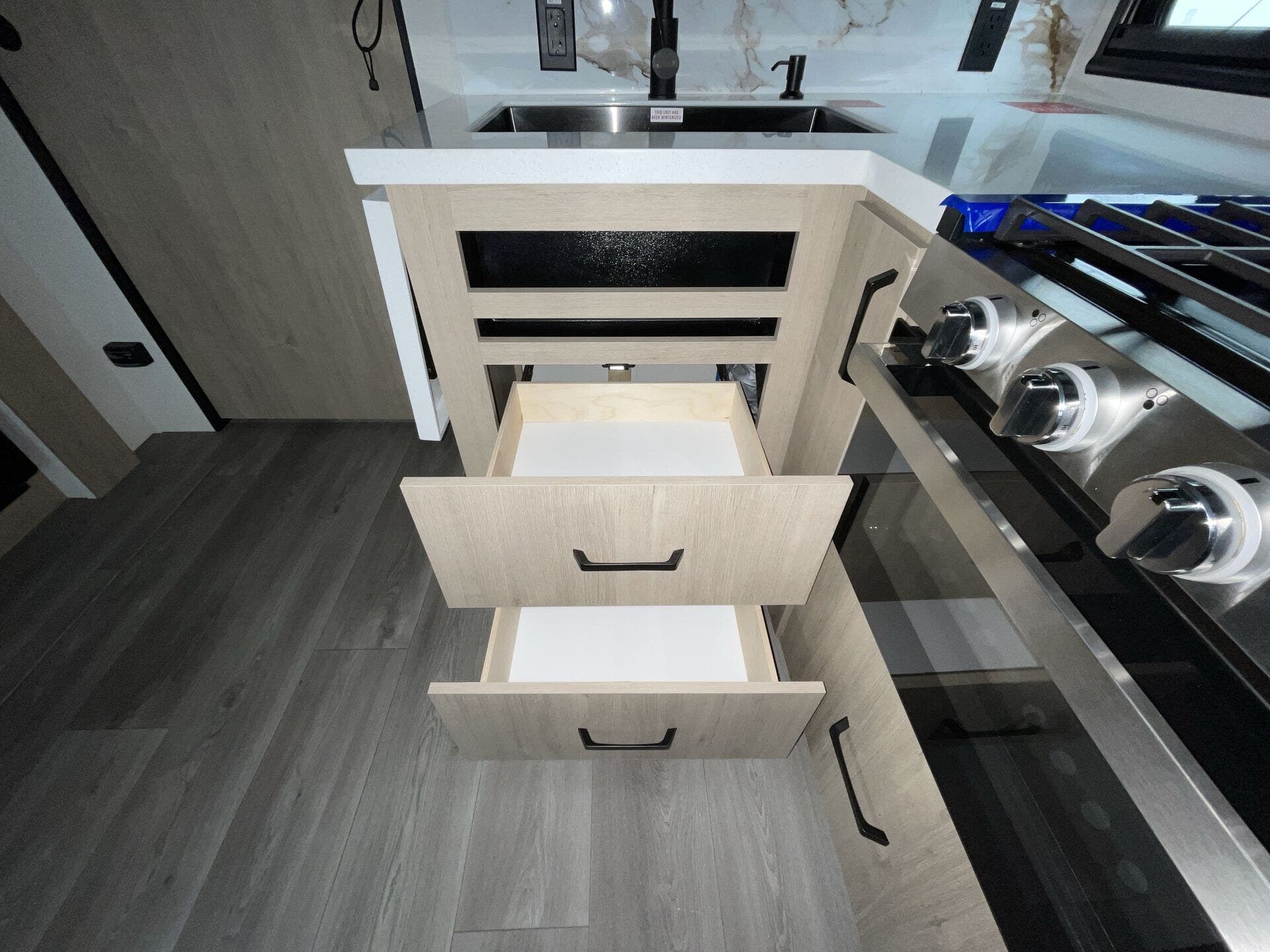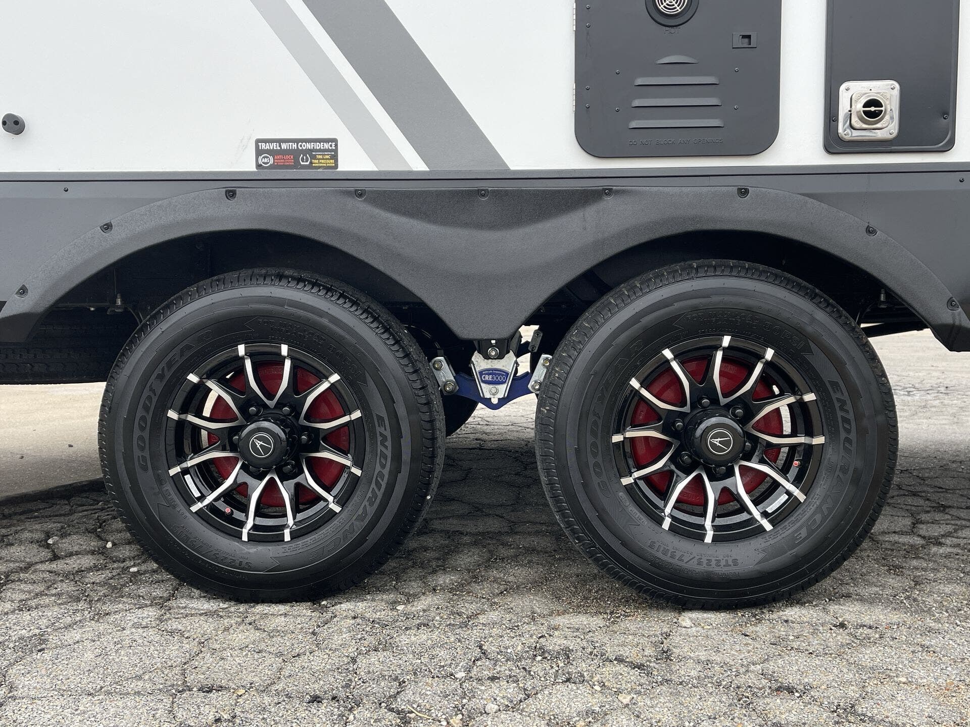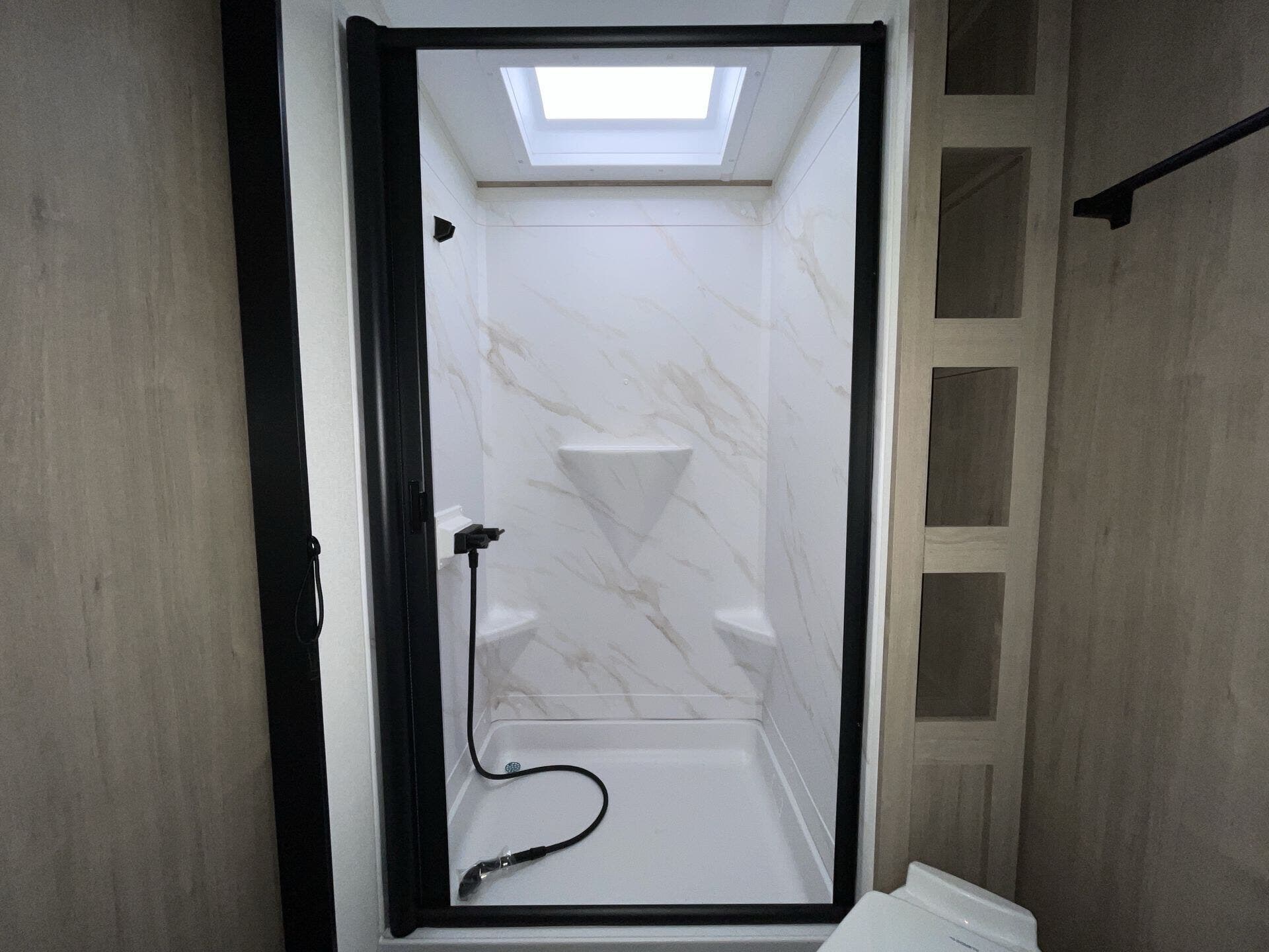 I like that it’s built right: an enclosed, heated underbelly; good insulation; tankless water heater — all those details add up when you’re out camping or traveling. The tank capacities give you enough water and gray/black tank space so you’re not constantly stopping to refill or dump.
