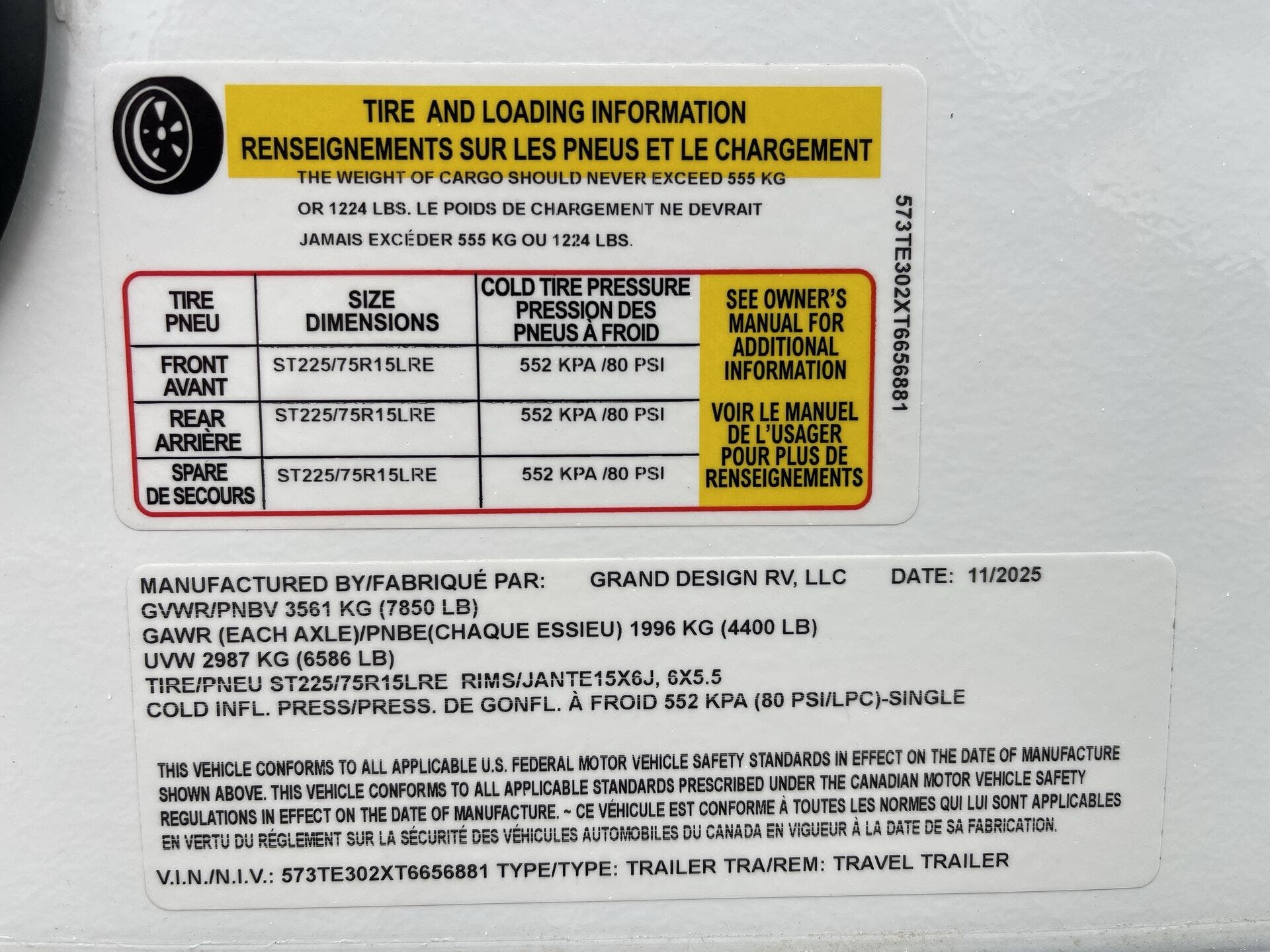 Awning, Black Tank Flush, Detachable Power Cord, Enclosed Underbelly, Hitch, Ladder, Pass Thru Storage, Power Awning, Roof Vent, Screen Door, Slam Latch Baggage Doors, Slideout -