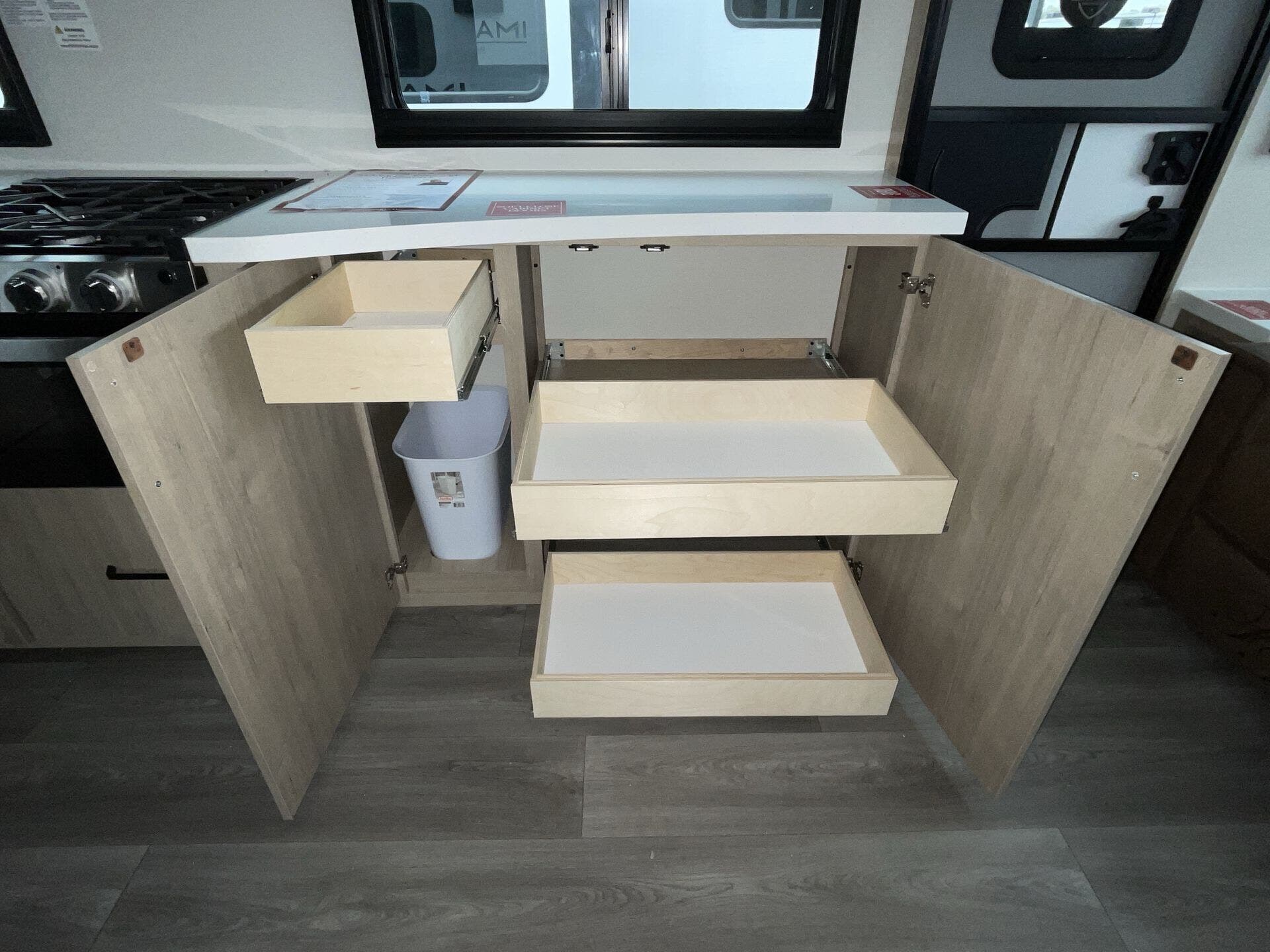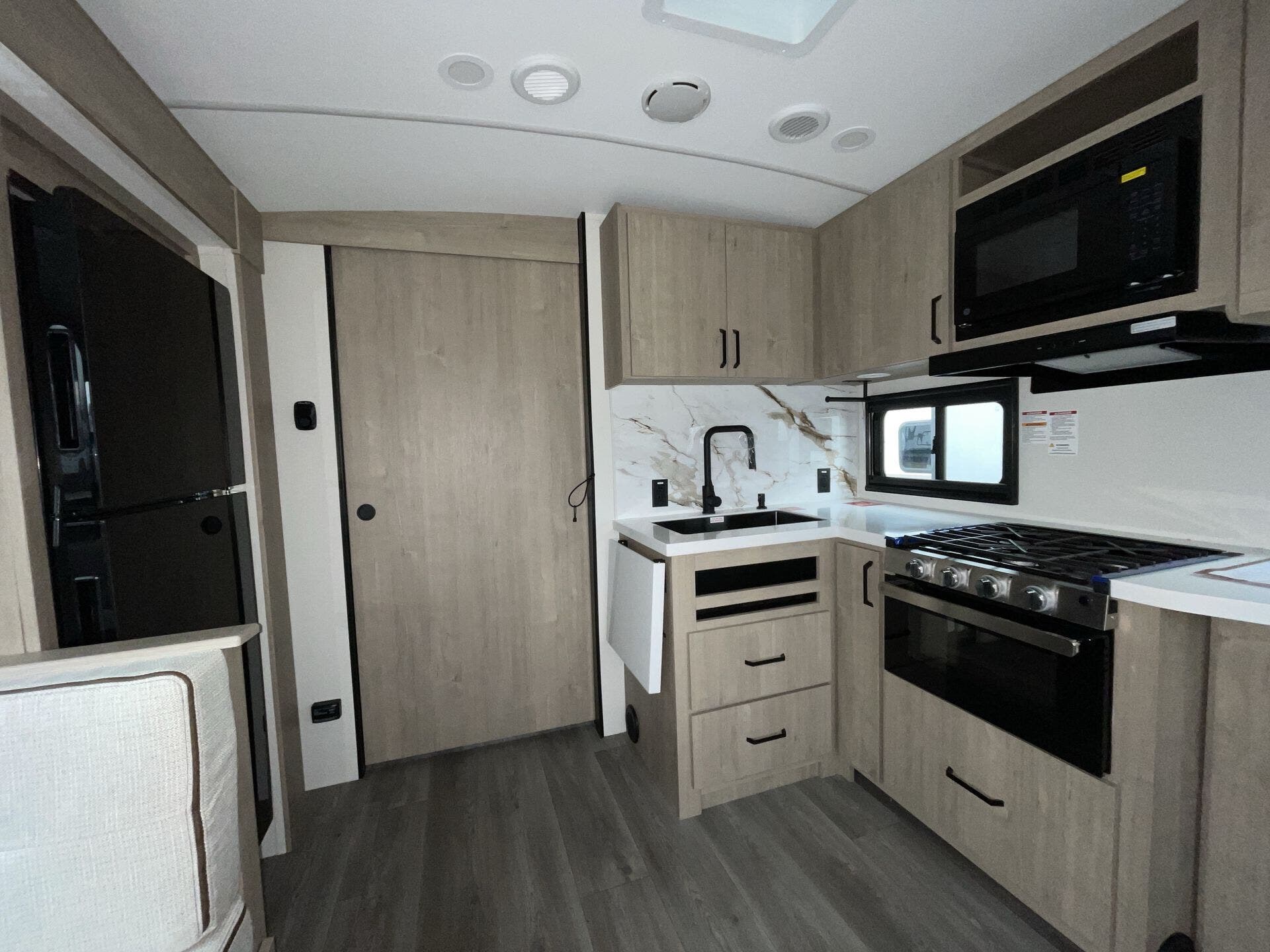 The 2500RL is exactly the kind of travel trailer that works if you want to tow something manageable, but still get a “real home on the road” vibe. It’s not massive — just under 30′ — but once you pop that slide-out, the living and kitchen area opens up nice and gives you breathing room.
