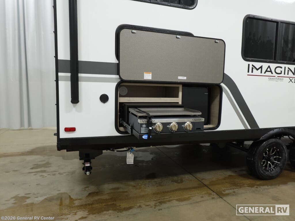 Experience the perfect blend of comfort and adventure with the 2026 Grand Design Imagine XLS 25DBE. This RV is designed to accommodate up to ten sleepers, making it ideal for family outings or trips with friends. The spacious interior features a queen bed and double over double bunks, ensuring everyone has a cozy place to rest. The center kitchen is equipped with a three-burner cooktop and a full-size electric refrigerator, perfect for preparing delicious meals on the road. The U-shaped dinette and theater seating offer plenty of room for dining and relaxation, while the rear bath provides privacy and convenience. The Imagine XLS 25DBE is crafted for ease and enjoyment. Its 22-foot powered retractable awning extends your living space outdoors, perfect for enjoying sunny days or starry nights. The unobstructed pass-through storage ensures you have ample room for all your gear. With a length of just under 30 feet, this RV is both spacious and maneuverable, making it a great choice for both seasoned travelers and RV newcomers. Head to your nearest General RV dealership to explore this fantastic model and start your next adventure!