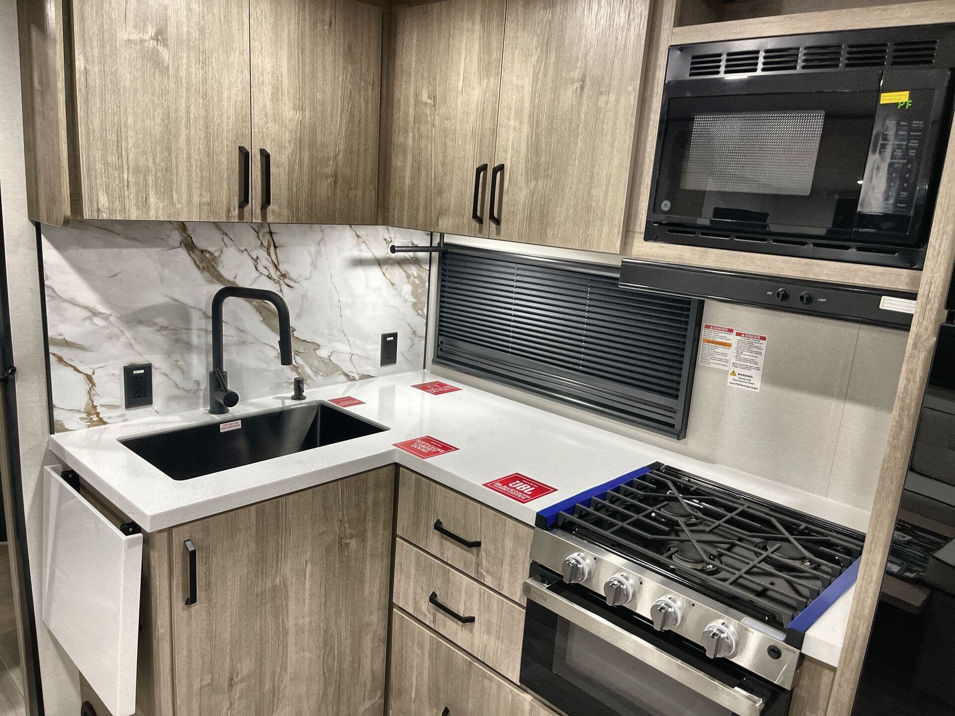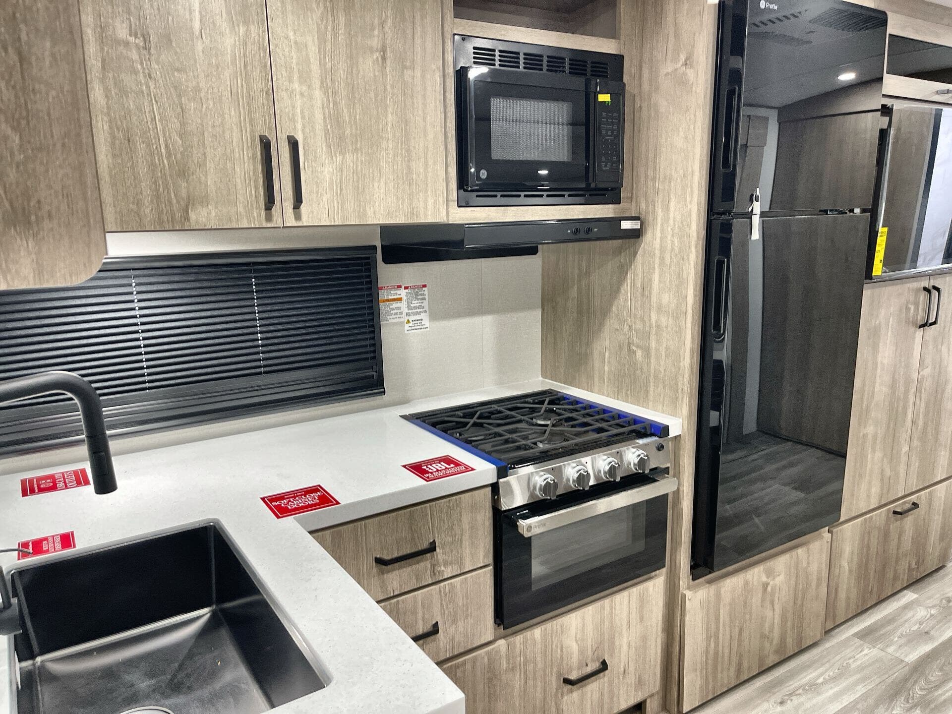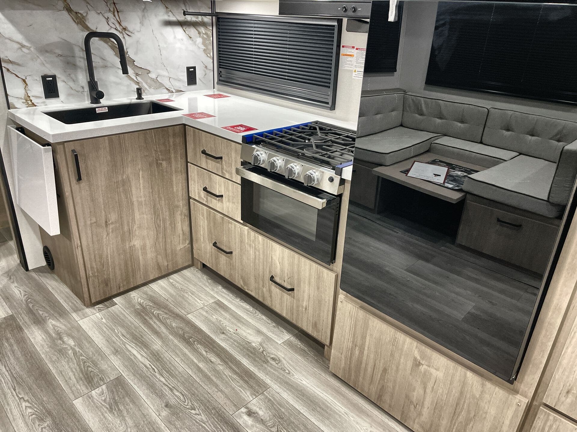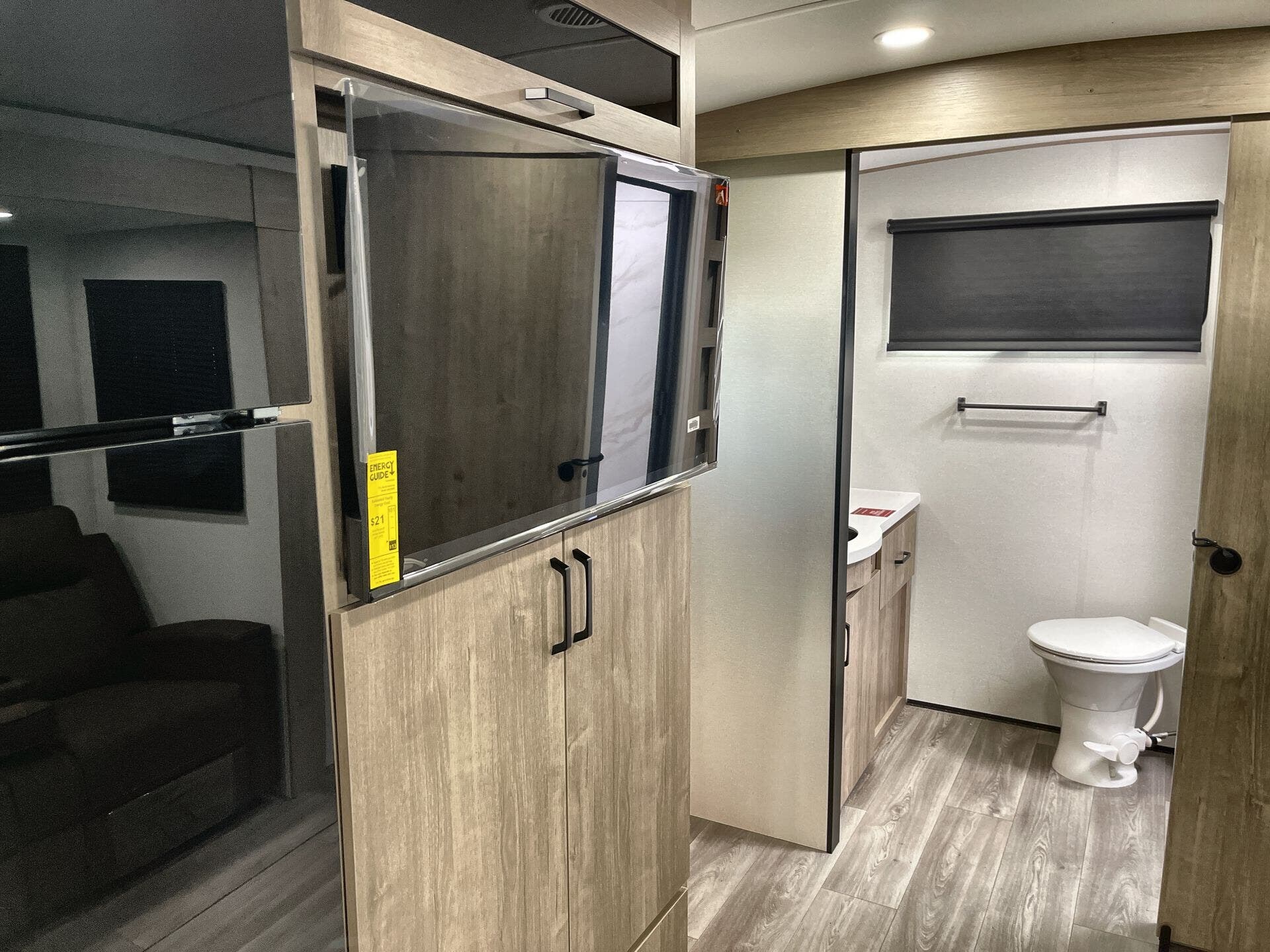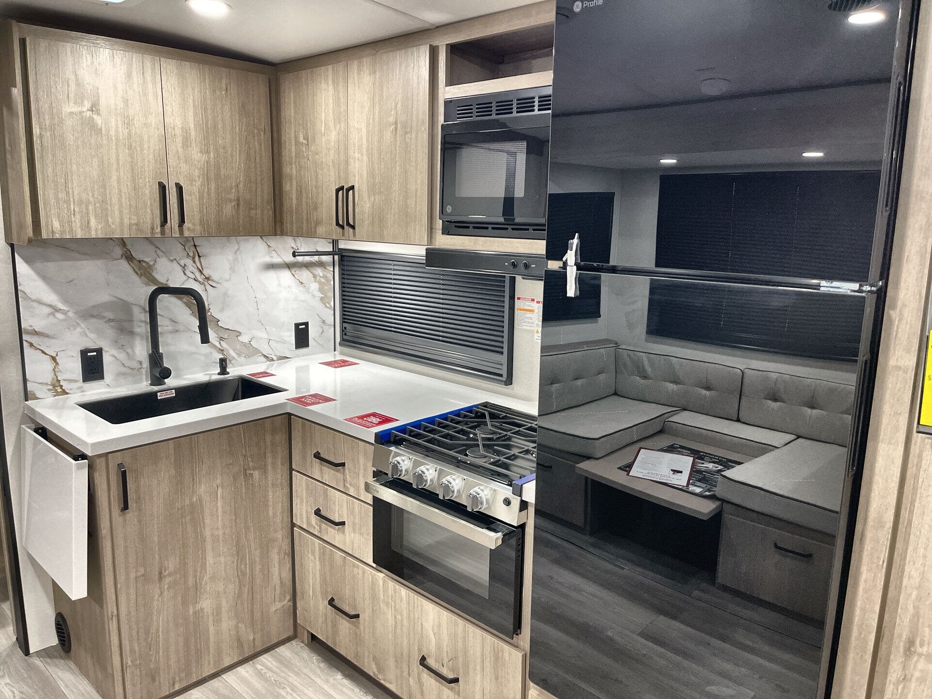 The Imagine 2600RB centers a practical layout around a front bedroom, mid kitchen, and rear bath, all designed to maximize daily living and lounging. The living area showcases theater seating for relaxed evenings, while the dining arrangement includes a U-shaped dinette that adapts into extra sleeping space, making it easy to accommodate guests. A single slide-out enhances open-floor living, and abundant overhead cabinetry plus wardrobe space keep belongings organized. With a dedicated queen bed, you’ll enjoy dedicated sleep space, plus additional storage for comfort items and apparel. This front-bedroom, mid-kitchen, mid-living configuration delivers comfort, convenience, and a welcoming feel for long weekends or extended getaways in your RV or recreational vehicle.