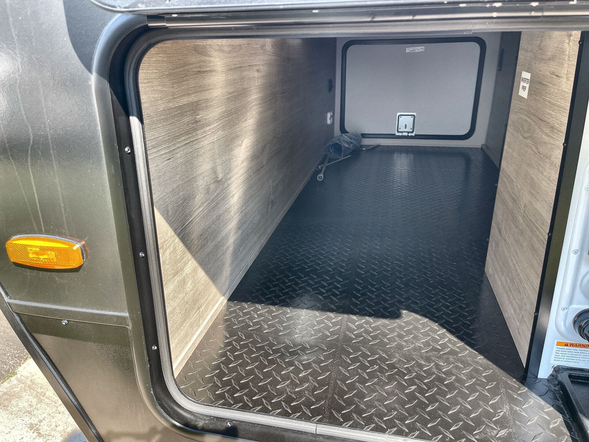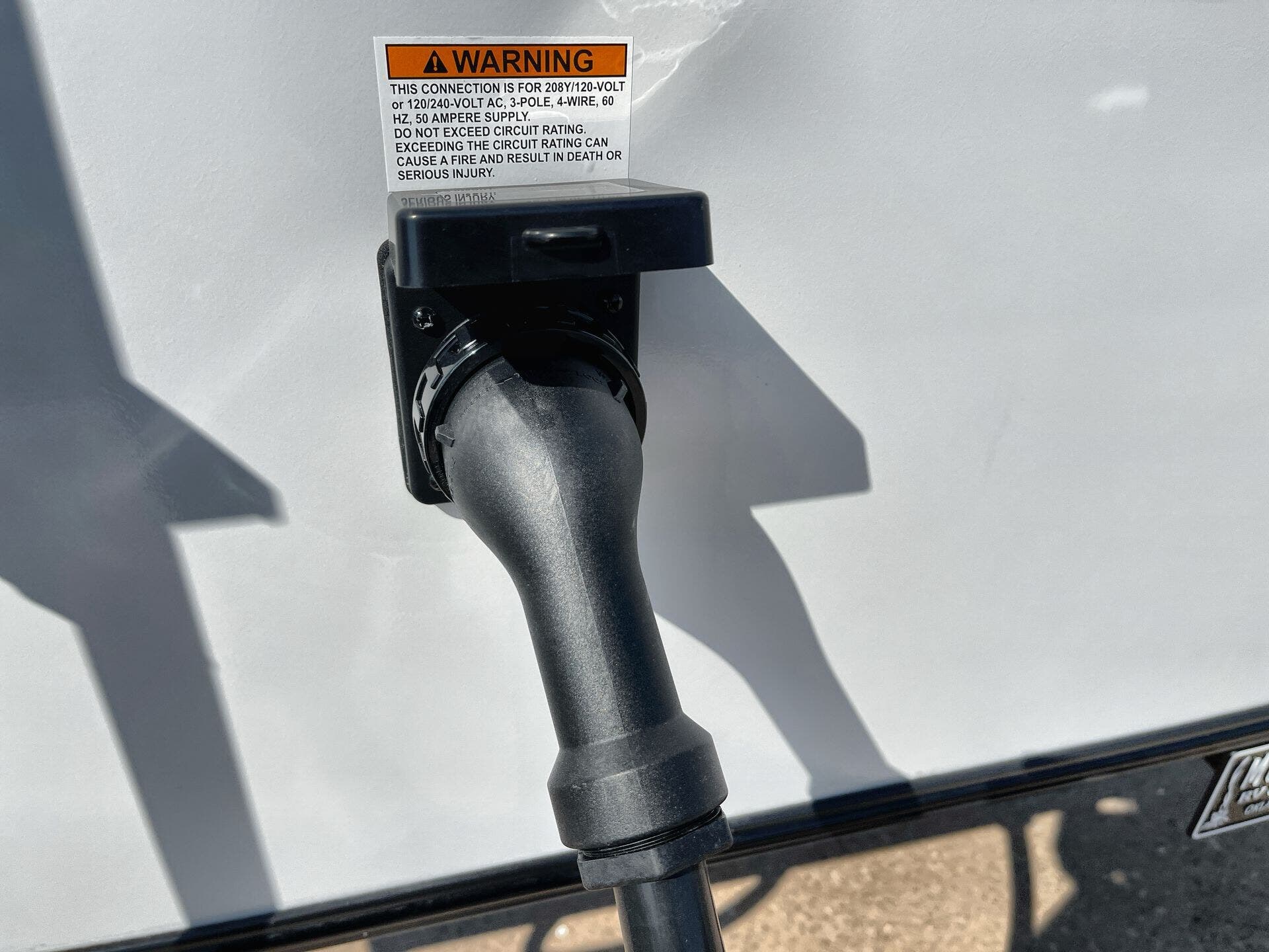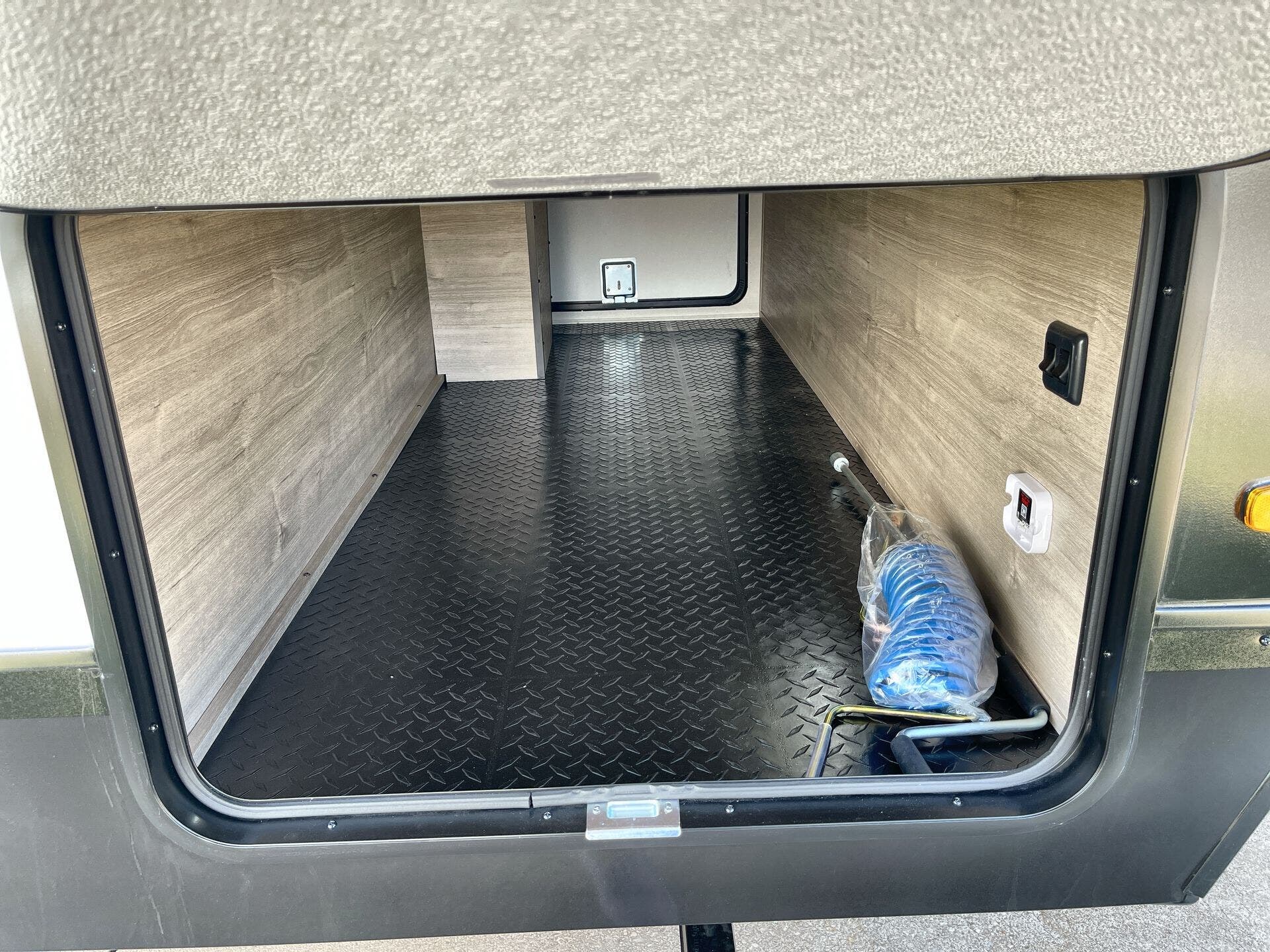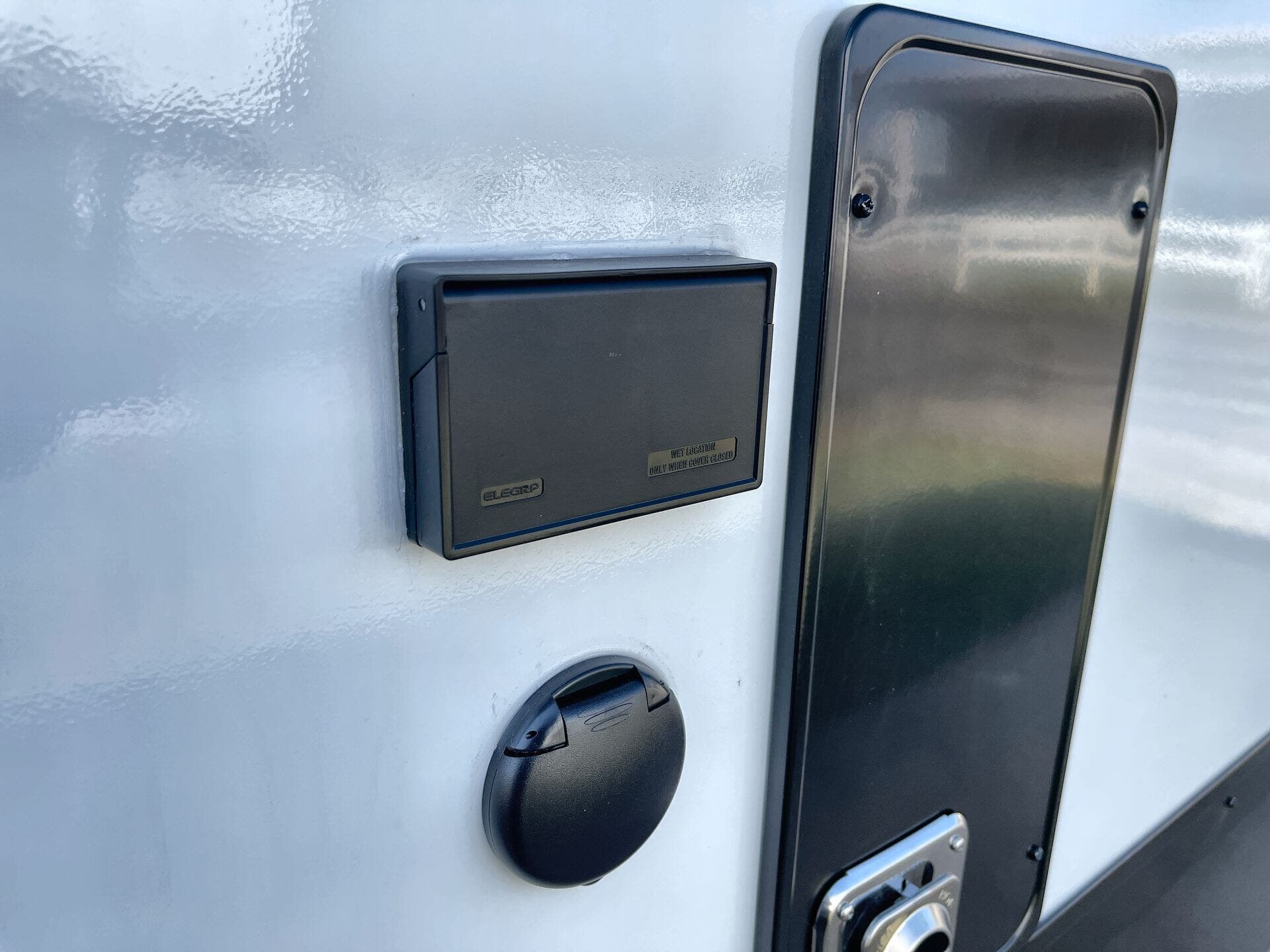 - Exterior Features: Power awning, Pass-thru storage, Detachable power cord, Spare tire kit, Roof vents, Screen door