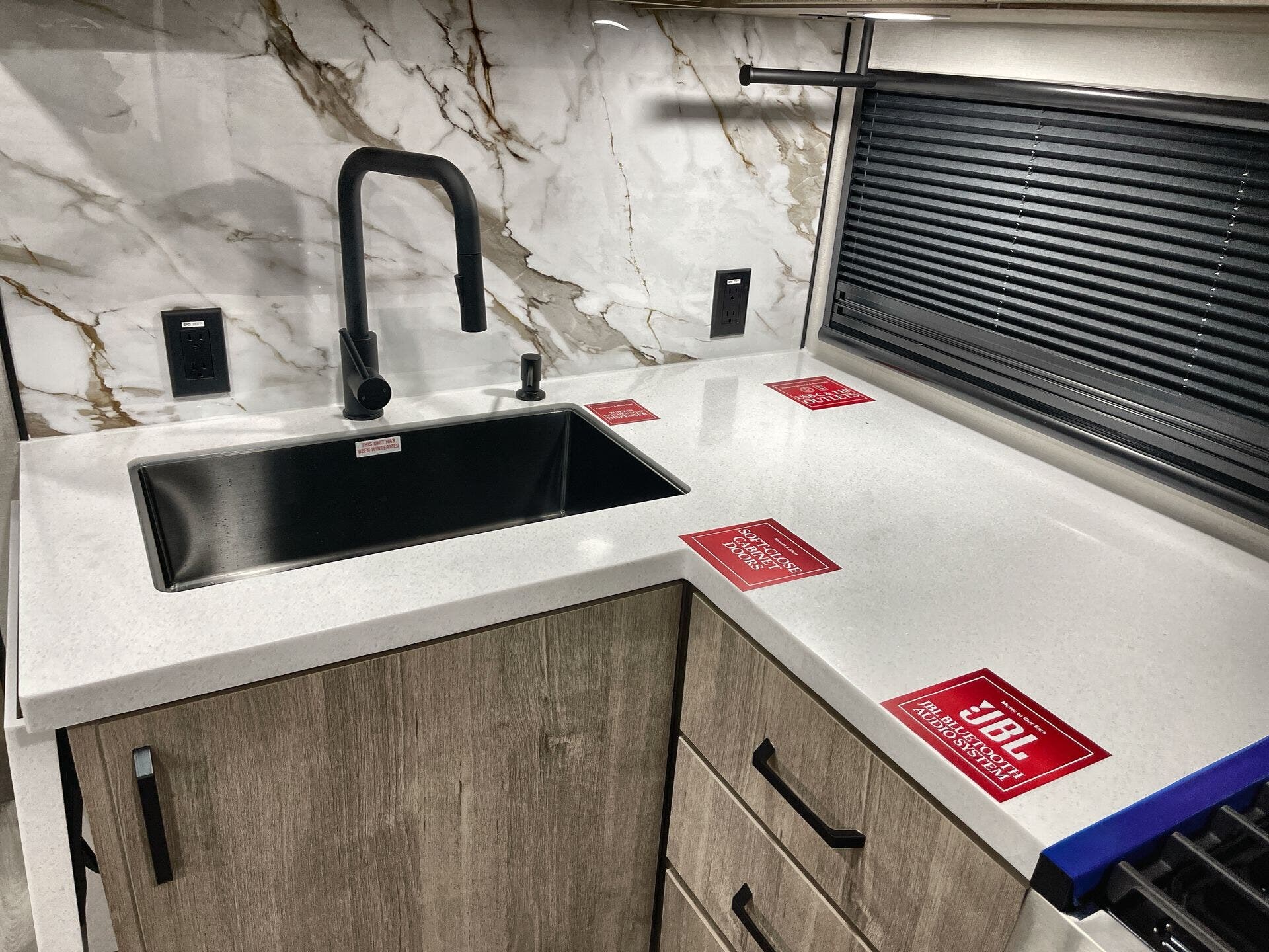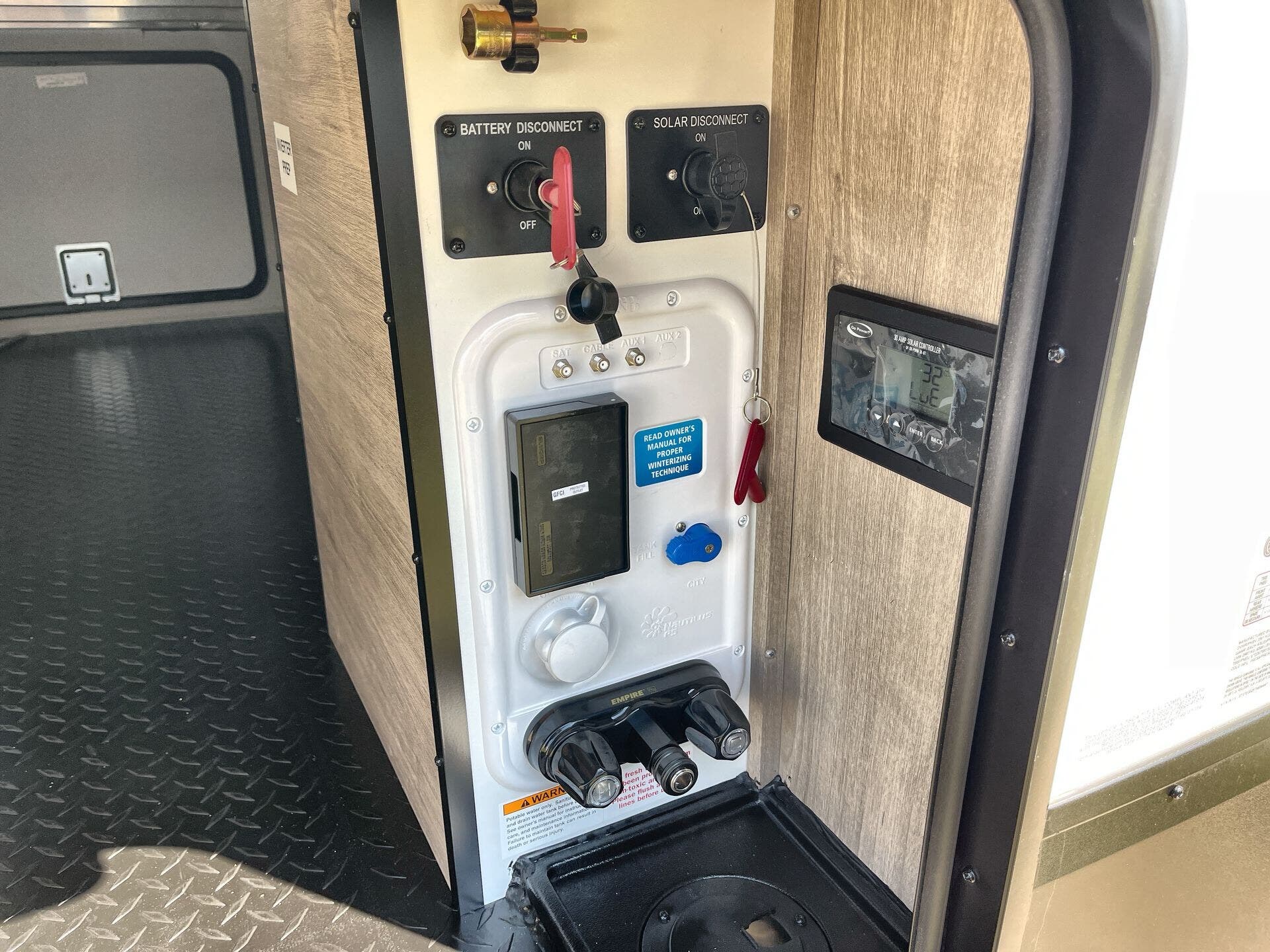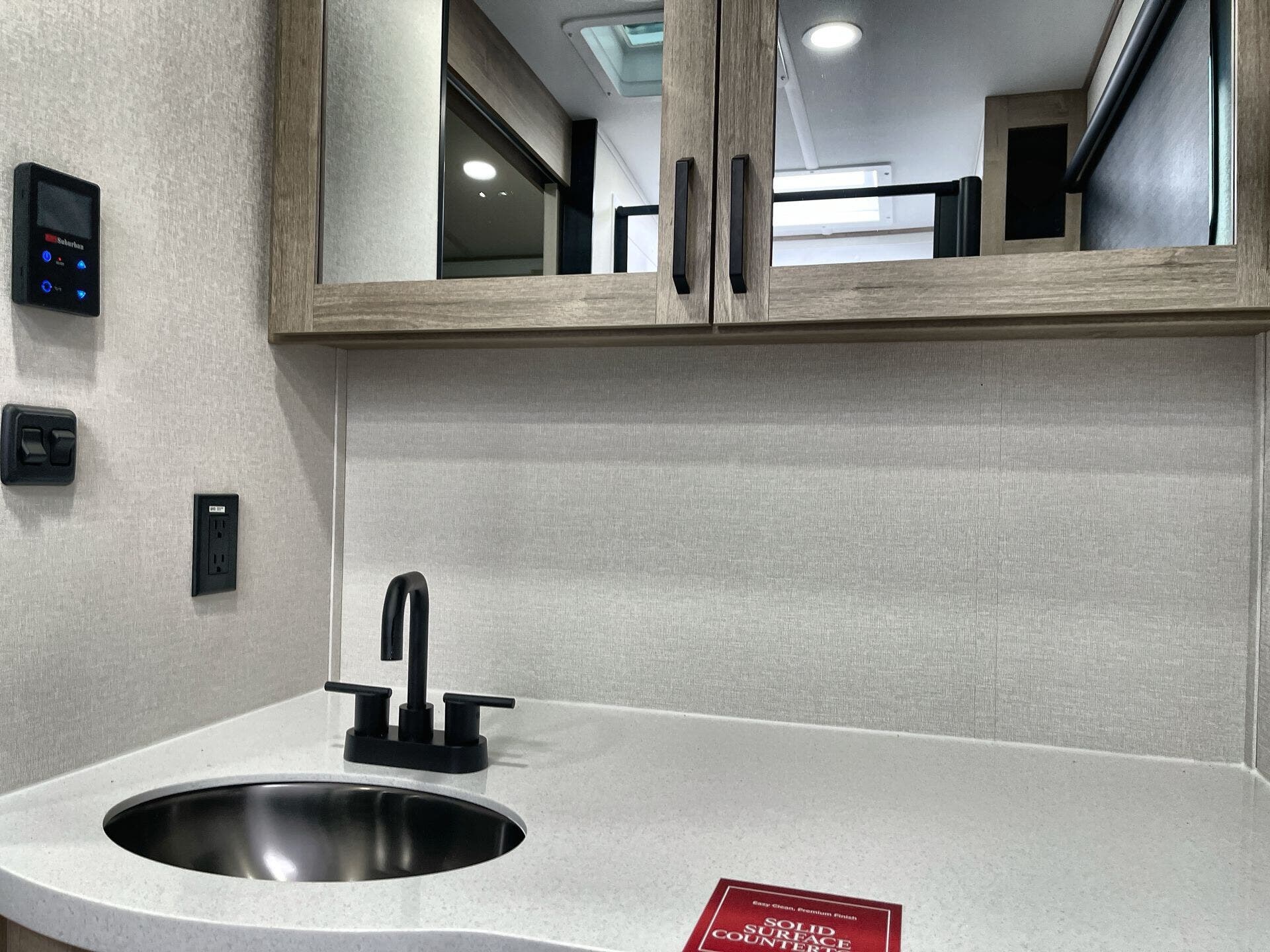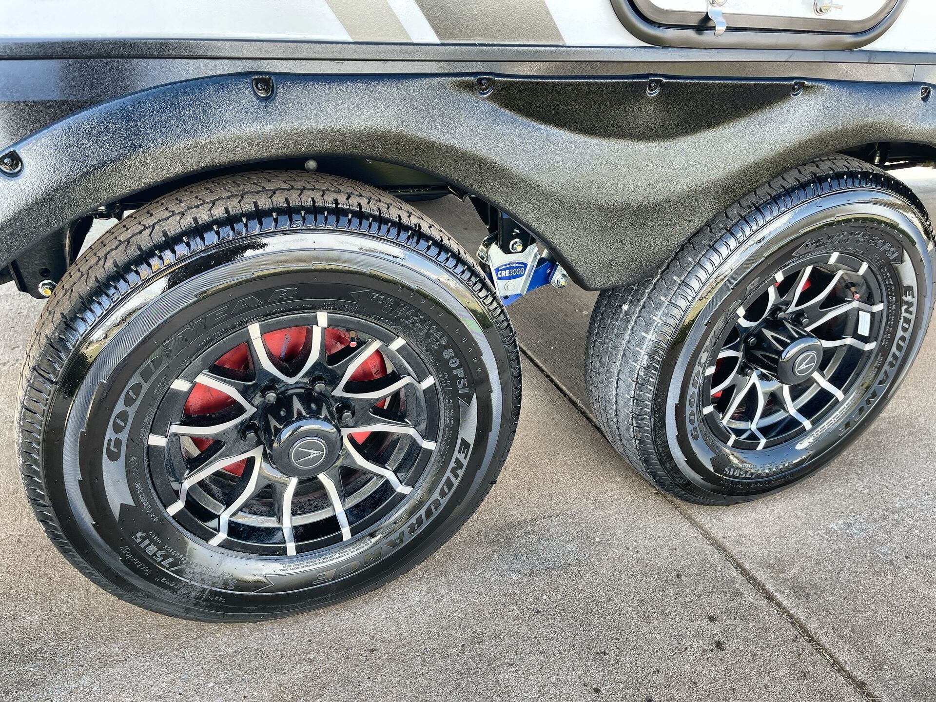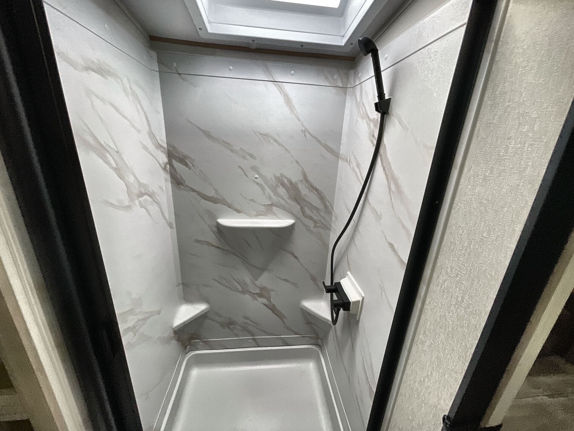 - Exterior Features: Power awning, Pass-thru storage, Detachable power cord, Spare tire kit, Roof vents, Screen door