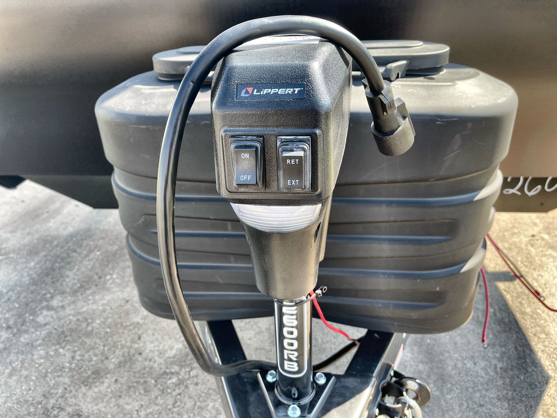 Awning, Detachable Power Cord, Hitch, Leveling Jacks, Pass Thru Storage, Power Awning, Roof Vent, Screen Door, Slideout, Spare Tire Kit -