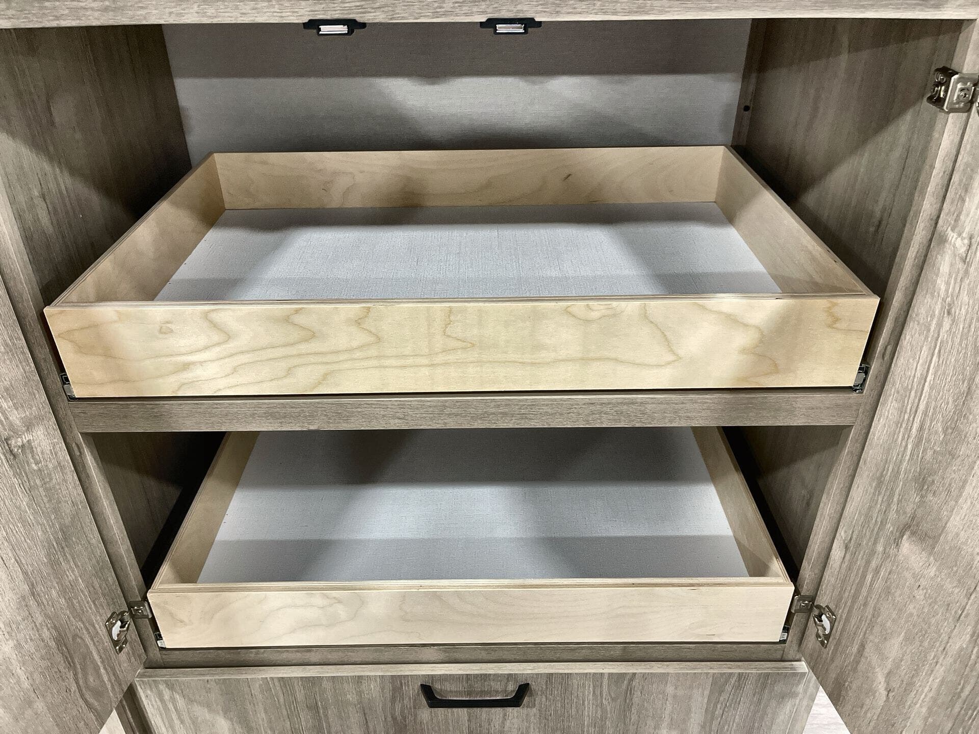 Booth Dinette, Dinette Bed, Hat Rack, Kitchen Sink, Medicine Cabinet, Non-Smoking Unit, Overhead Cabinetry, Pet Friendly, Queen Bed, Roof Vents, Shower, Theater Seating, Toilet, U-Shaped Dinette, Wardrobe(s)