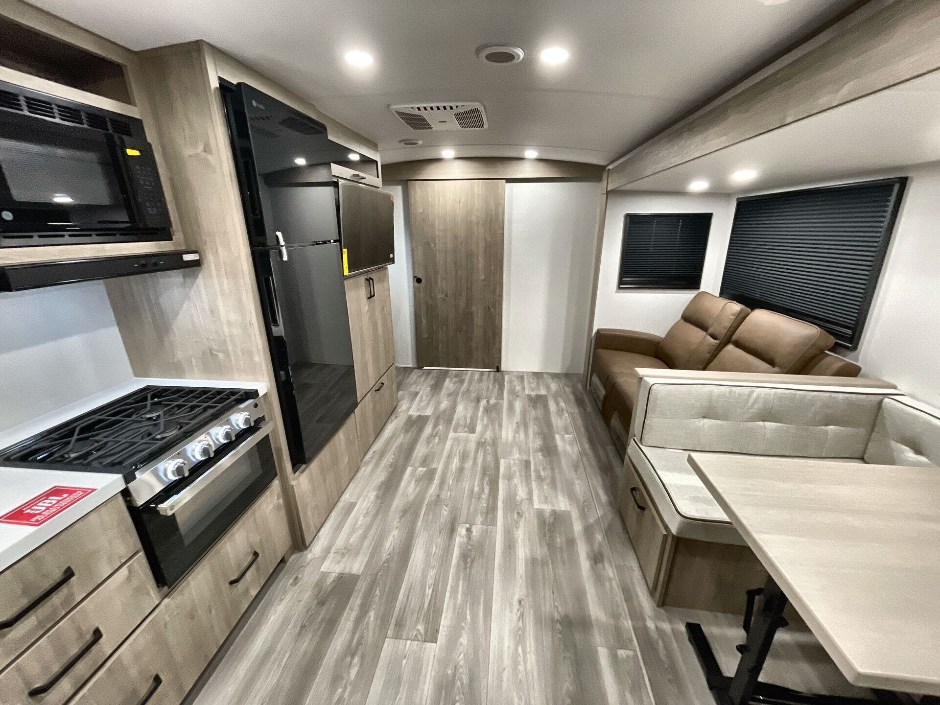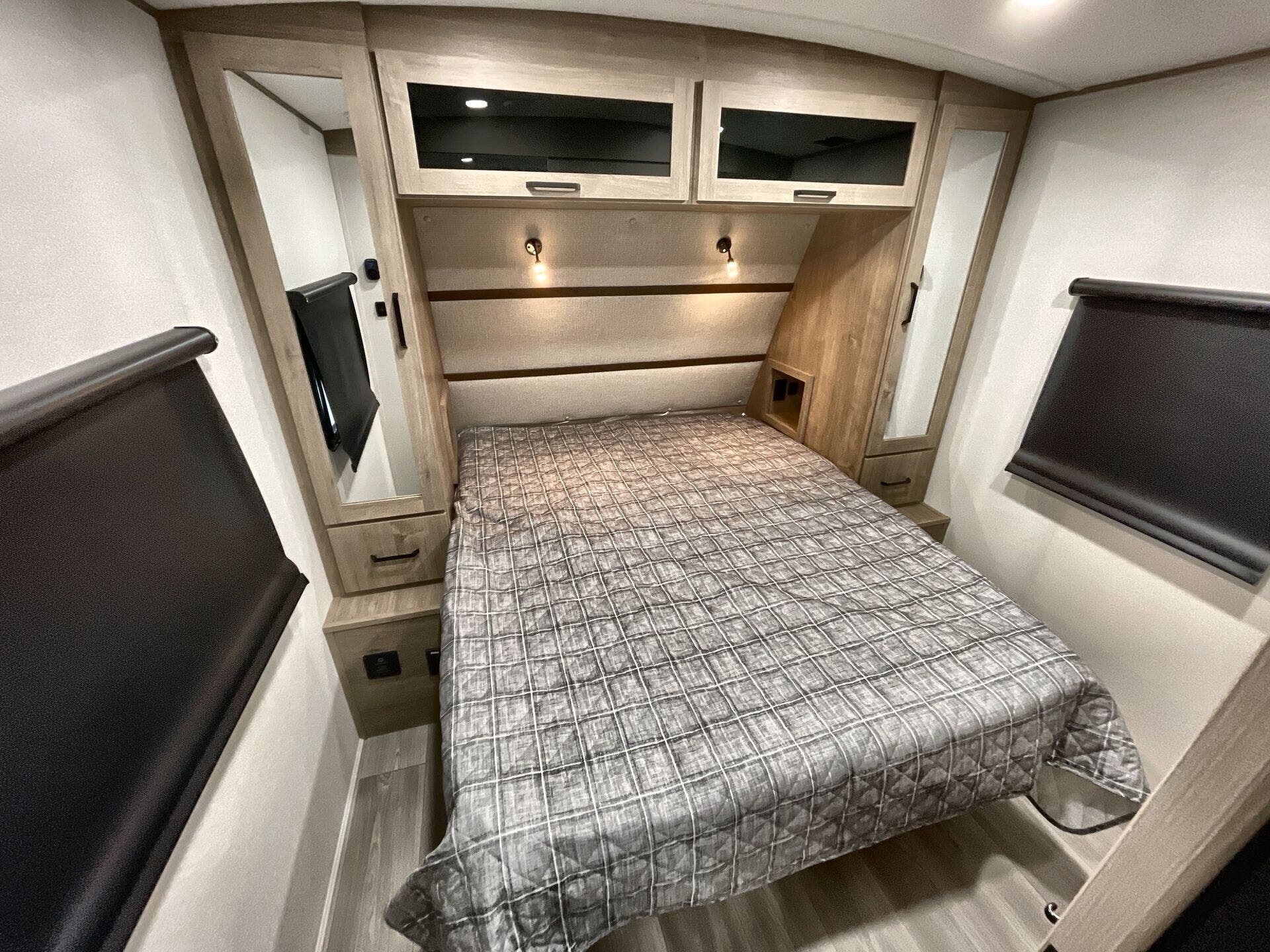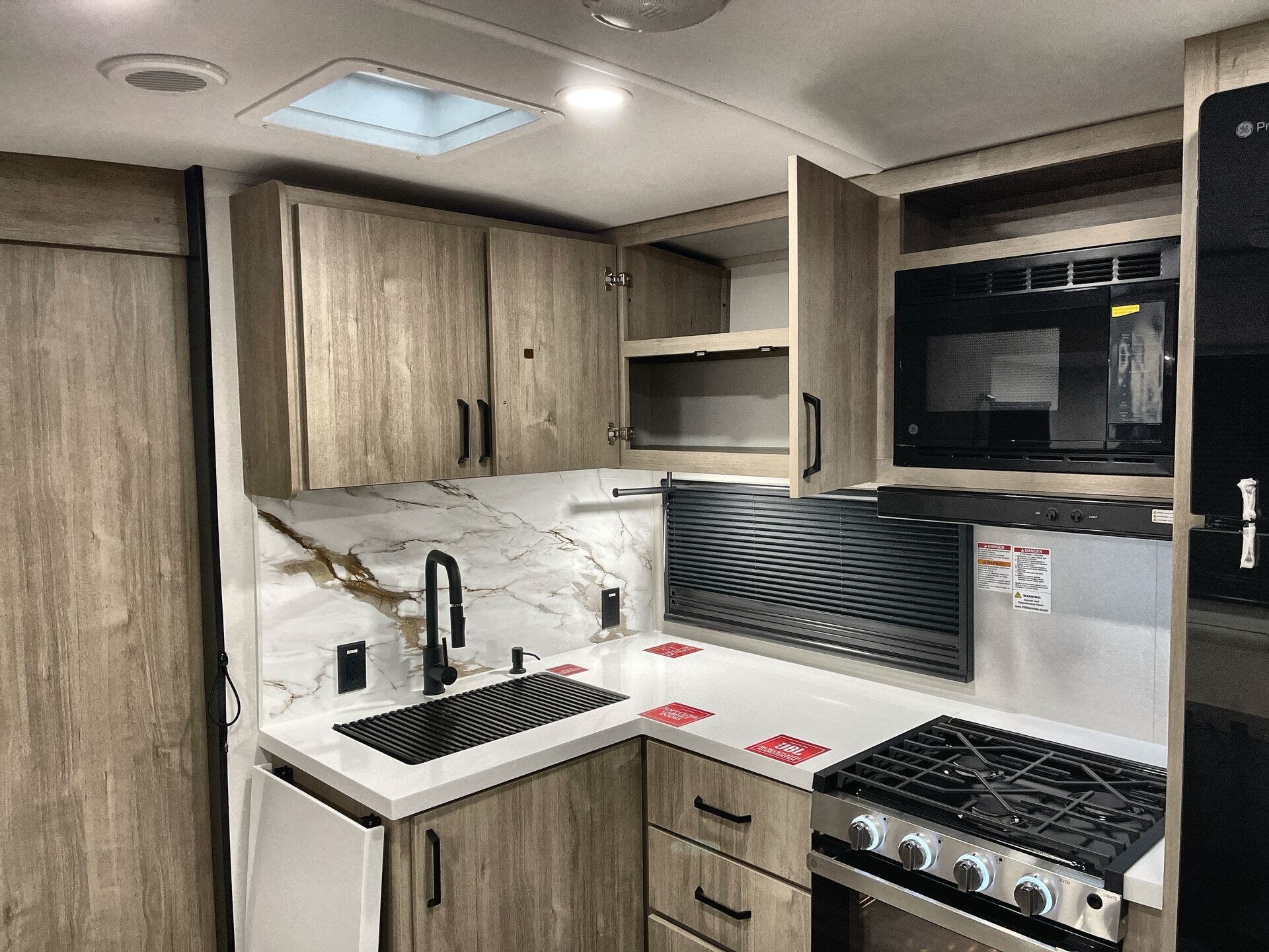 Inside, the Imagine 2600RB accommodates up to six travelers, making it ideal for family adventures or group excursions. The front bedroom offers a comfortable Queen bed with ample storage for clothes and personal items, creating a private retreat after a day of exploring. The well-equipped kitchen includes a microwave, oven, refrigerator, and a reliable water heater, empowering you to cook, bake, and serve meals with ease. A dedicated living area features a TV, bright LED lighting, and a skylight that brightens the space, while the durable furnishings and thoughtful cabinetry provide everyday practicality and longevity for years of recreation.