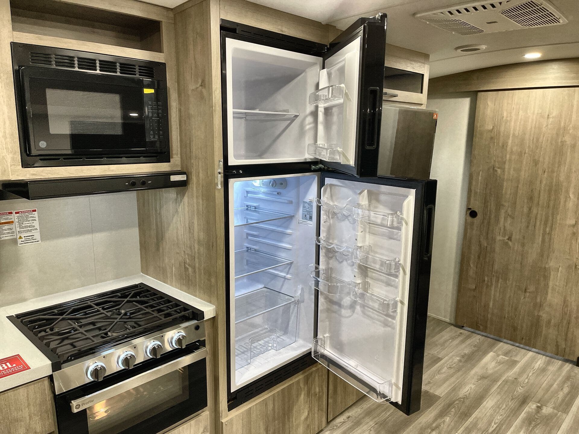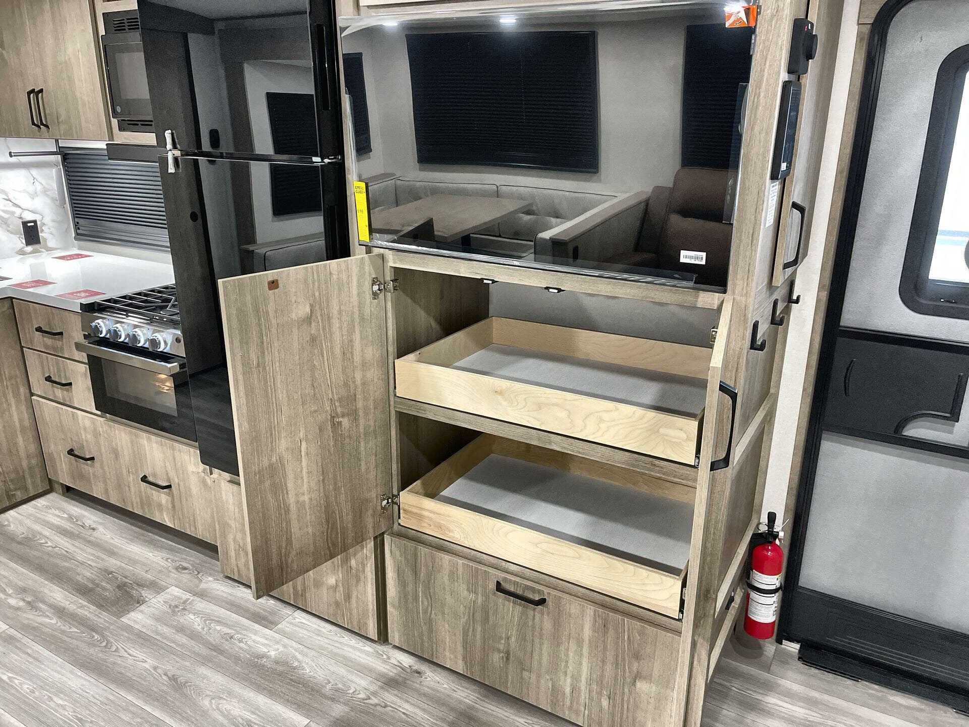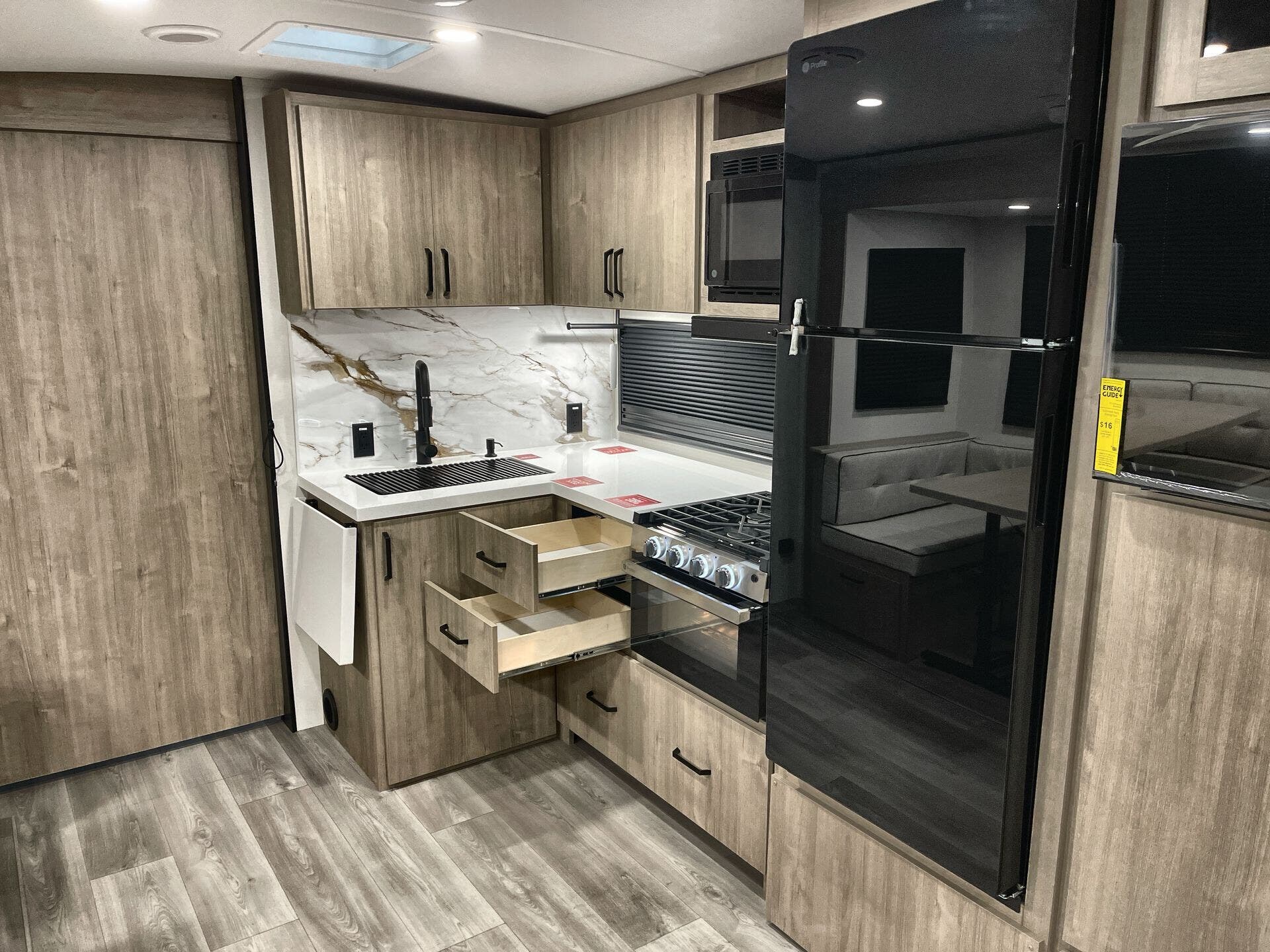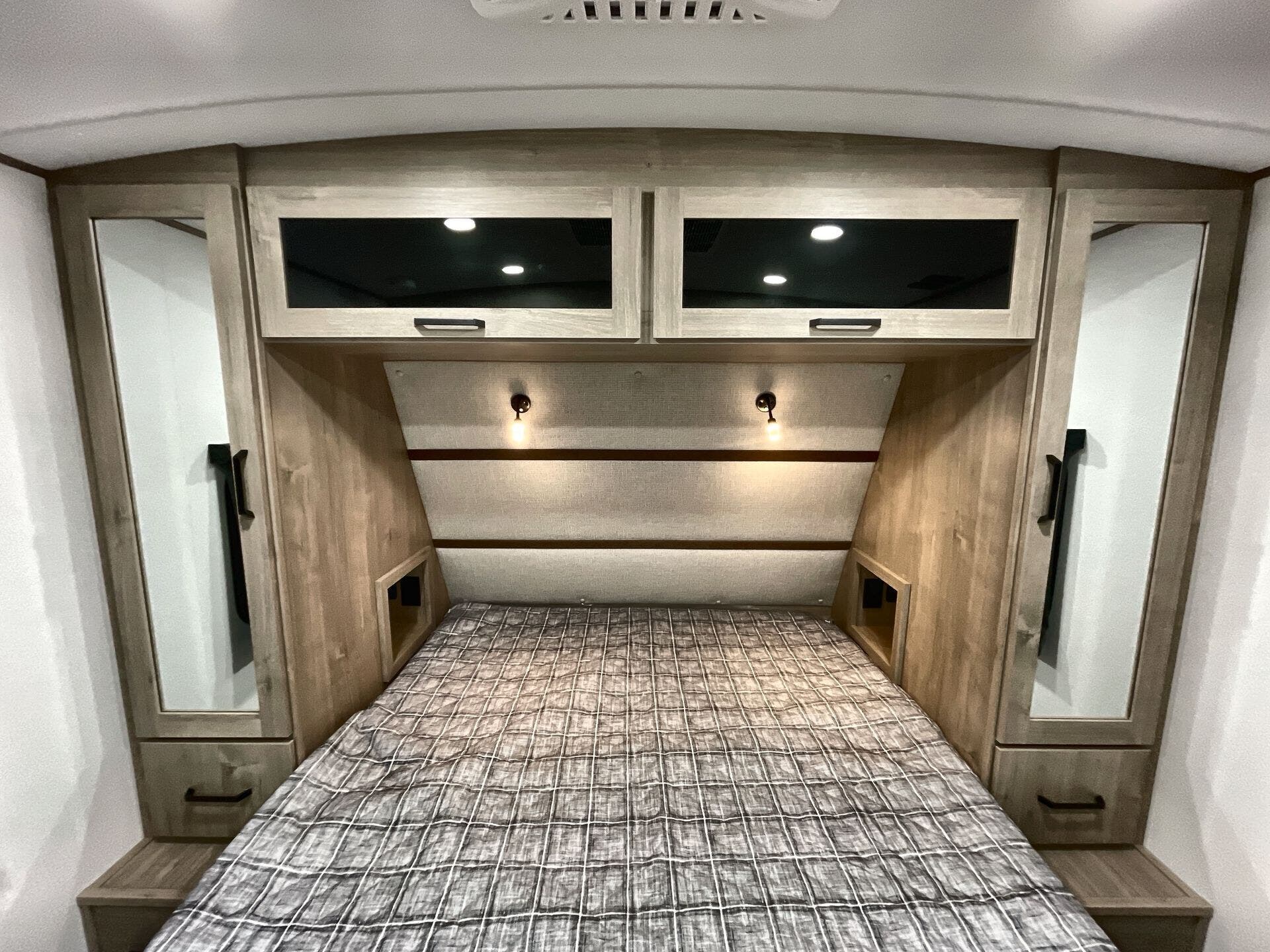 Inside, the Imagine 2600RB accommodates up to six travelers, making it ideal for family adventures or group excursions. The front bedroom offers a comfortable Queen bed with ample storage for clothes and personal items, creating a private retreat after a day of exploring. The well-equipped kitchen includes a microwave, oven, refrigerator, and a reliable water heater, empowering you to cook, bake, and serve meals with ease. A dedicated living area features a TV, bright LED lighting, and a skylight that brightens the space, while the durable furnishings and thoughtful cabinetry provide everyday practicality and longevity for years of recreation.