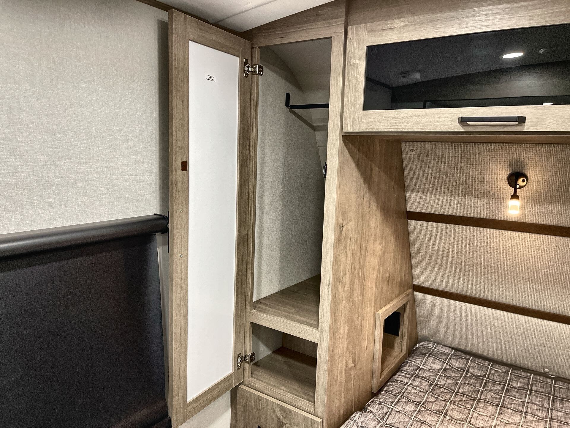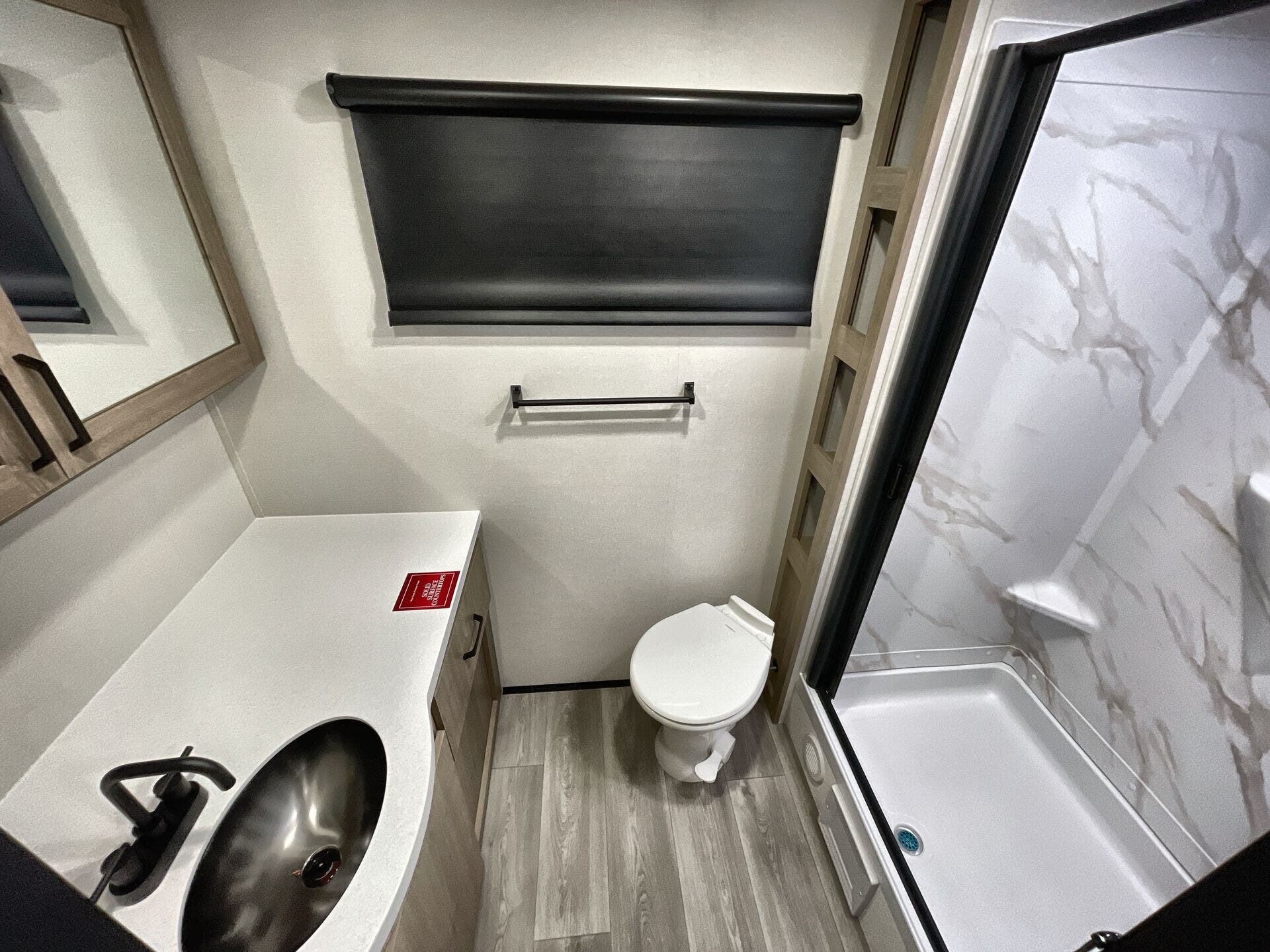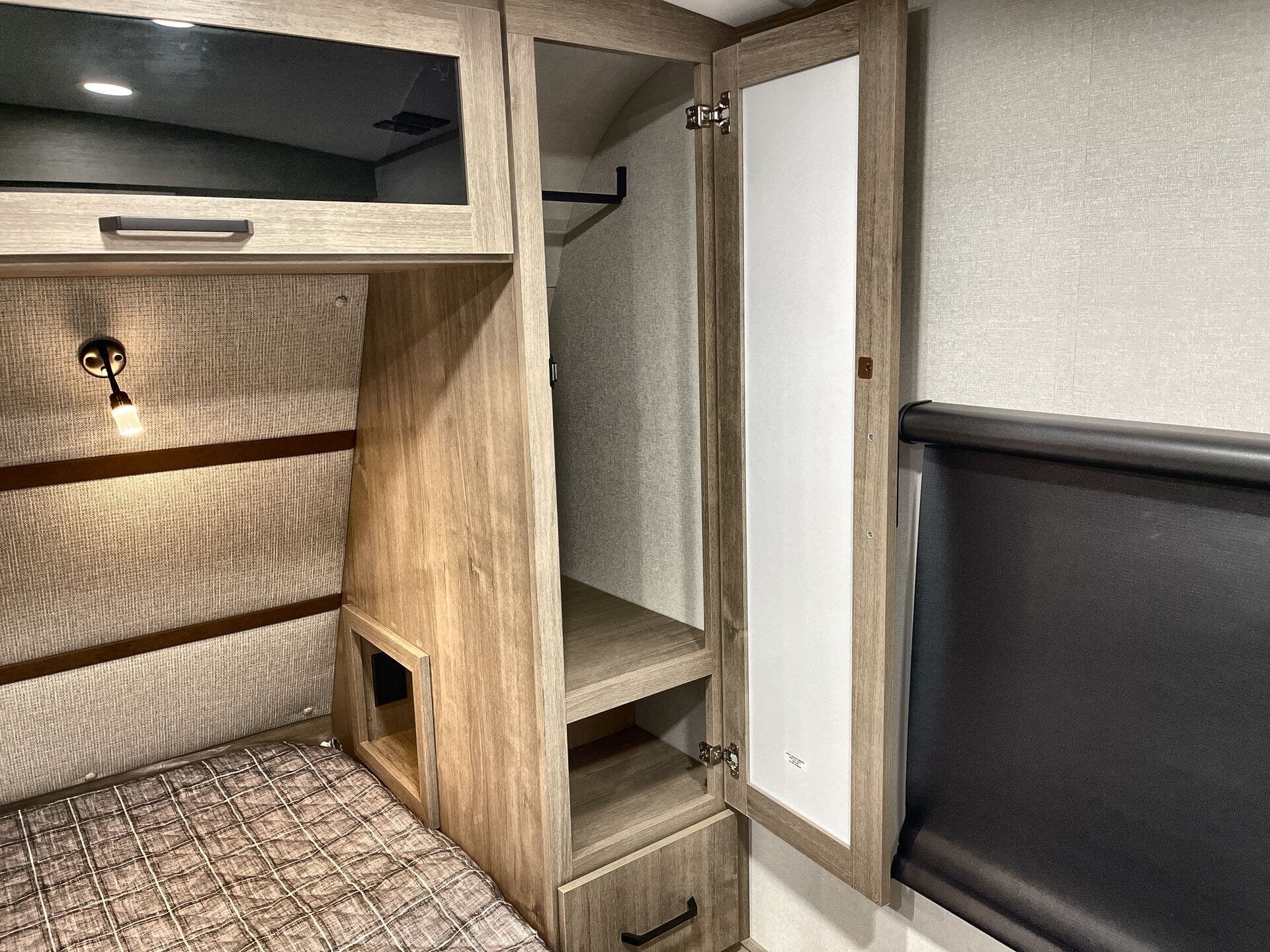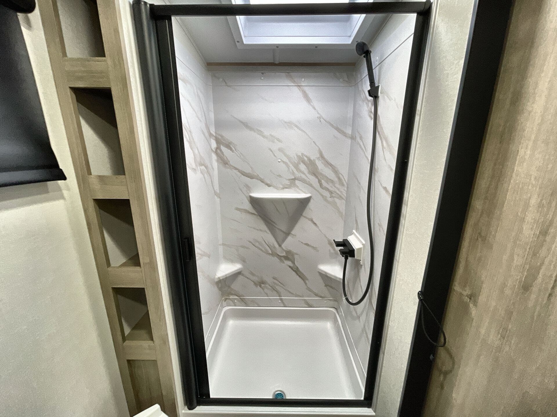 - Interior features: Queen bed, shower, medicine cabinet, skylight, TV