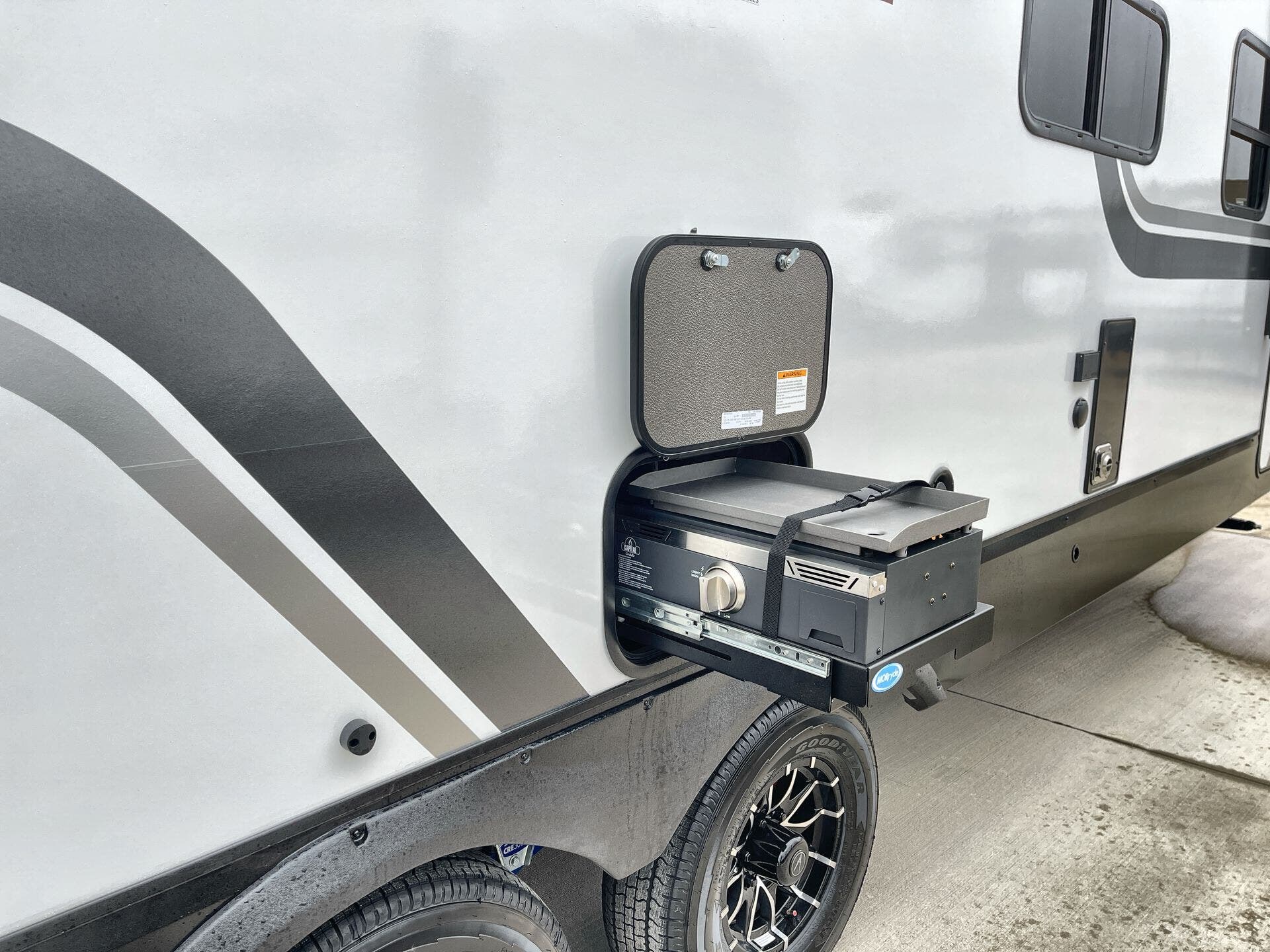 - Exterior features: Power awning, LED lights, slam latch baggage doors