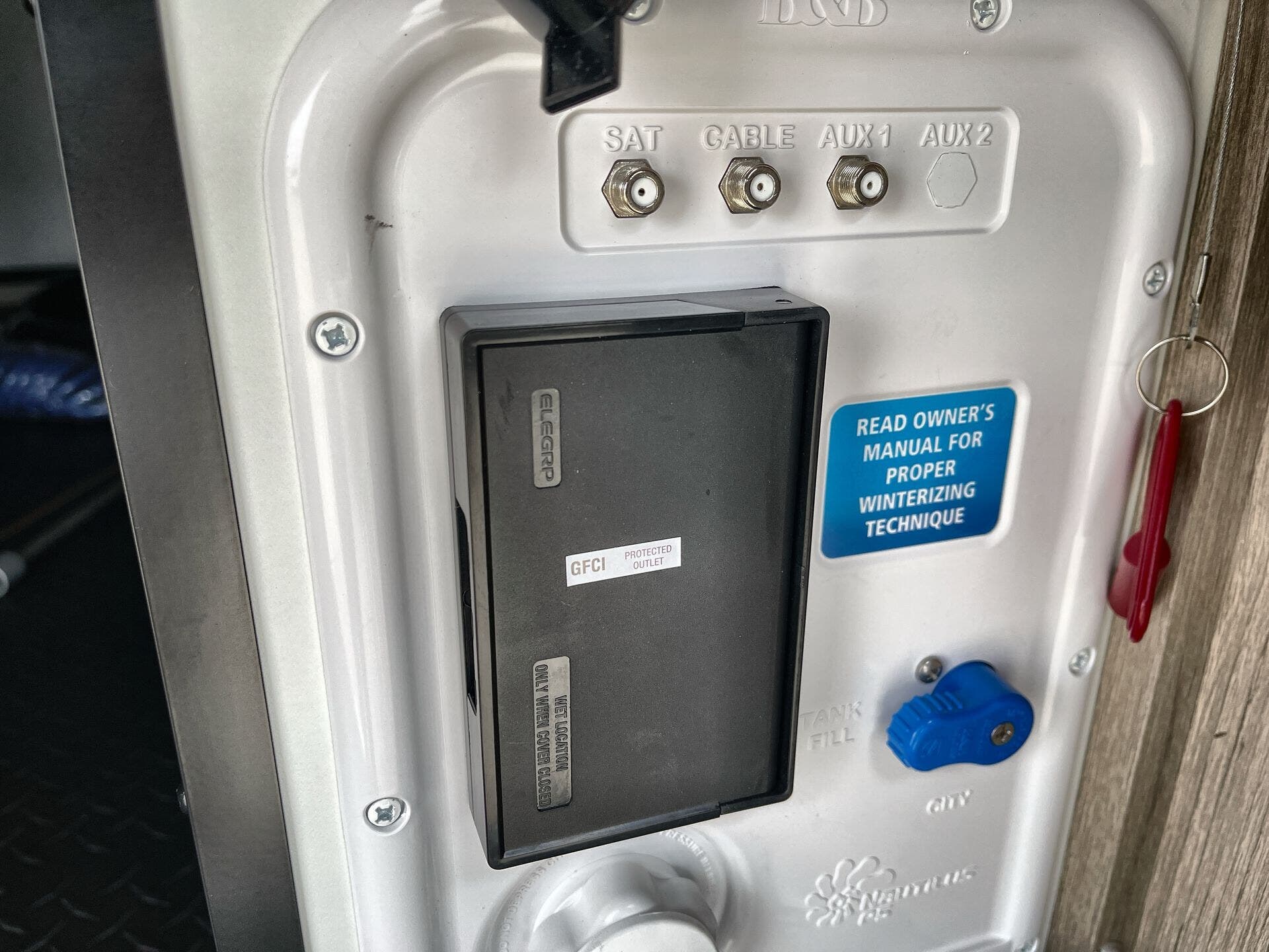 Awning, Black Tank Flush, Detachable, Detachable Power Cord, Enclosed Underbelly, Hitch, Ladder, Power Awning, Skylight, Slam Latch Baggage Doors -