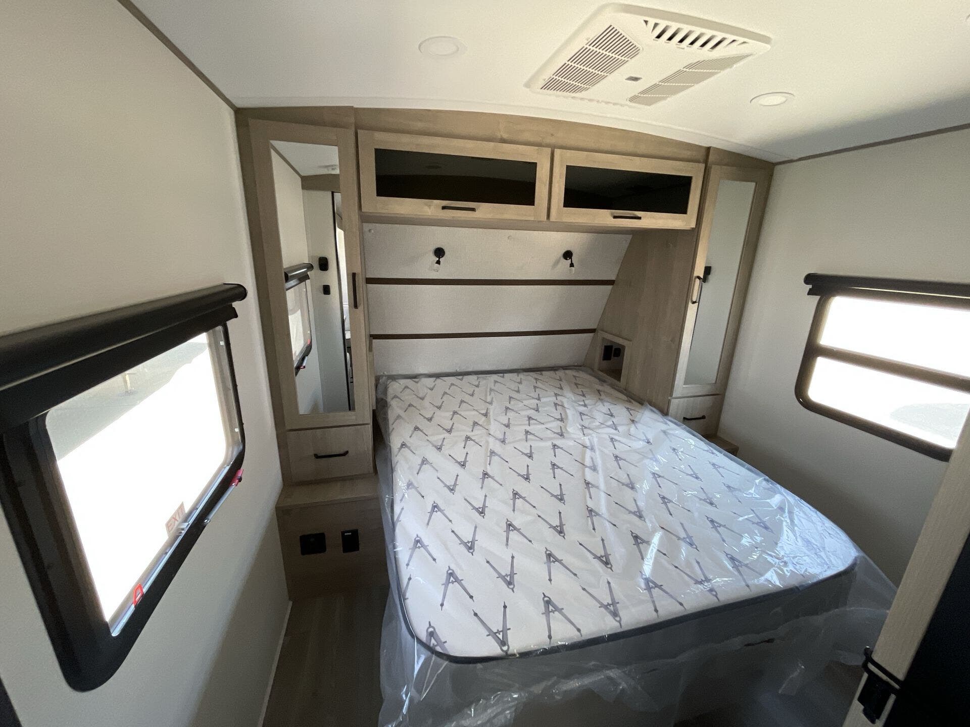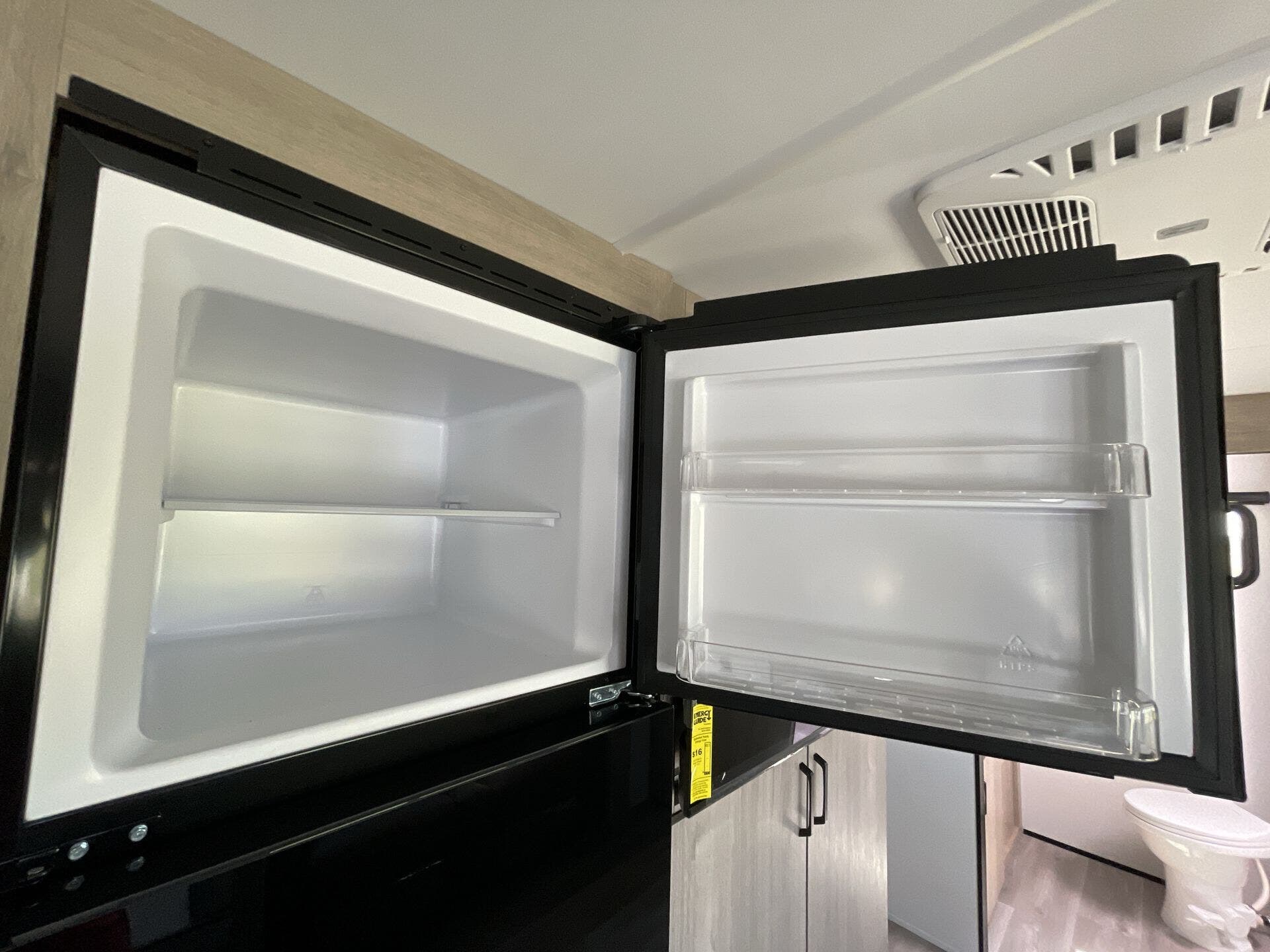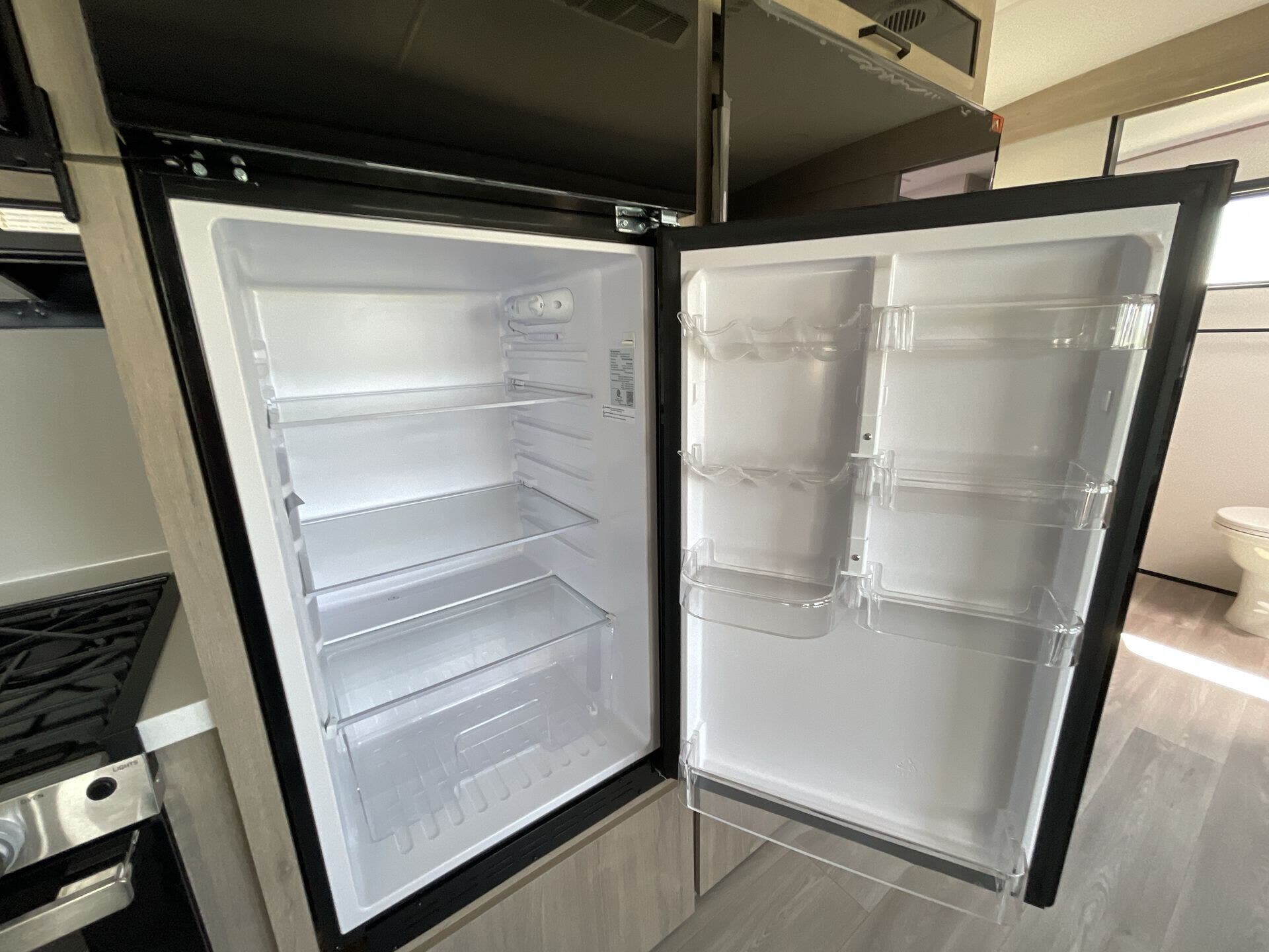 The 2600RB showcases a thoughtfully organized layout: Front Bedroom, Mid Kitchen, Mid Living Area, and Rear Bath. The U-shaped dinette not only provides a welcoming dining area but also converts into additional sleeping space, complementing the sofa bed for overnight guests. Theater seating and a convenient living area create a comfortable hub for relaxation and entertainment after a day on the road.