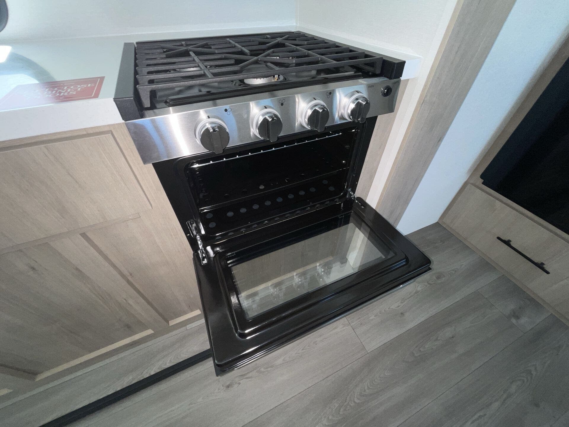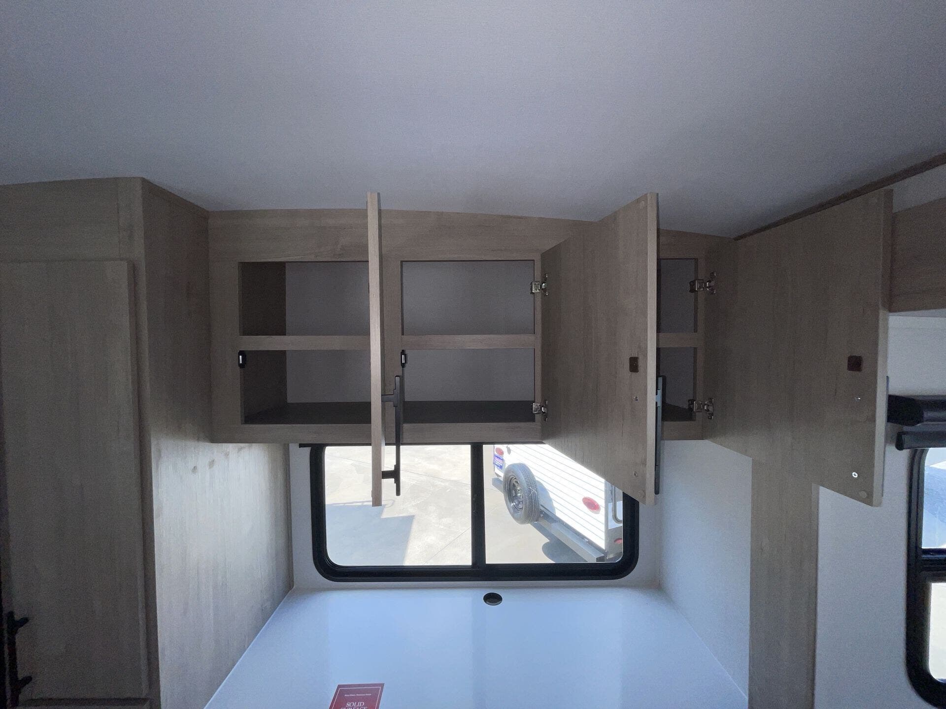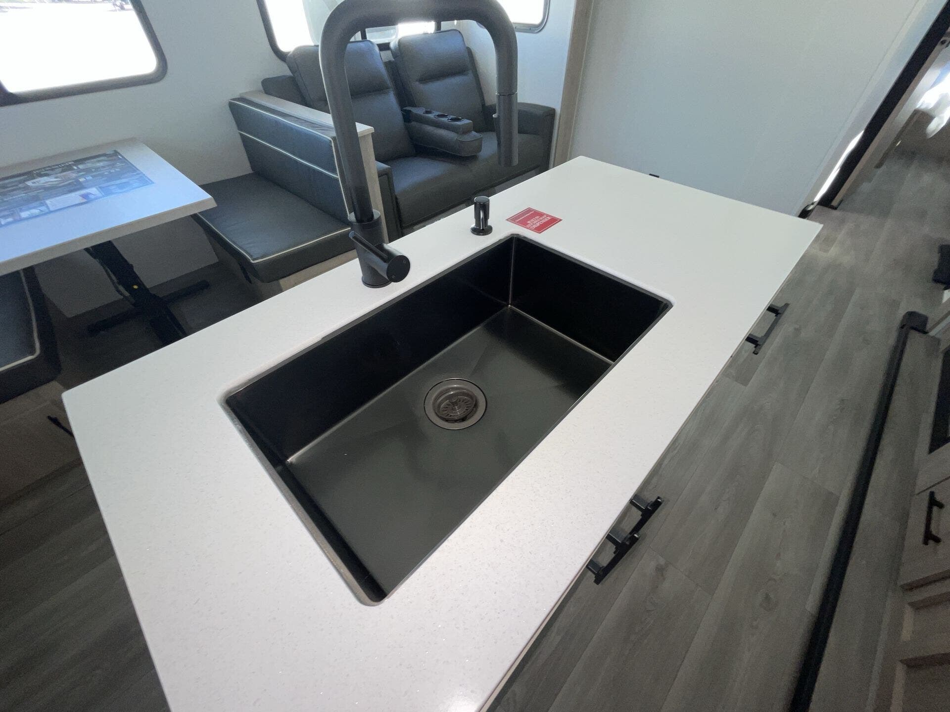 Inside, the rear kitchen layout provides an abundance of counter space, solid-surface countertops, stainless steel appliances, and a deep farmhouse sink—perfect for cooking meals on the road. The large slide-out opens the living area, where you’ll find theater seating or a tri-fold sofa, a booth dinette, and a full entertainment center with a fireplace, making it a cozy retreat after a day outdoors. A dedicated desk workspace adds even more flexibility, making the 2670MK especially appealing for remote workers or those who want a spot to stay organized while traveling.
