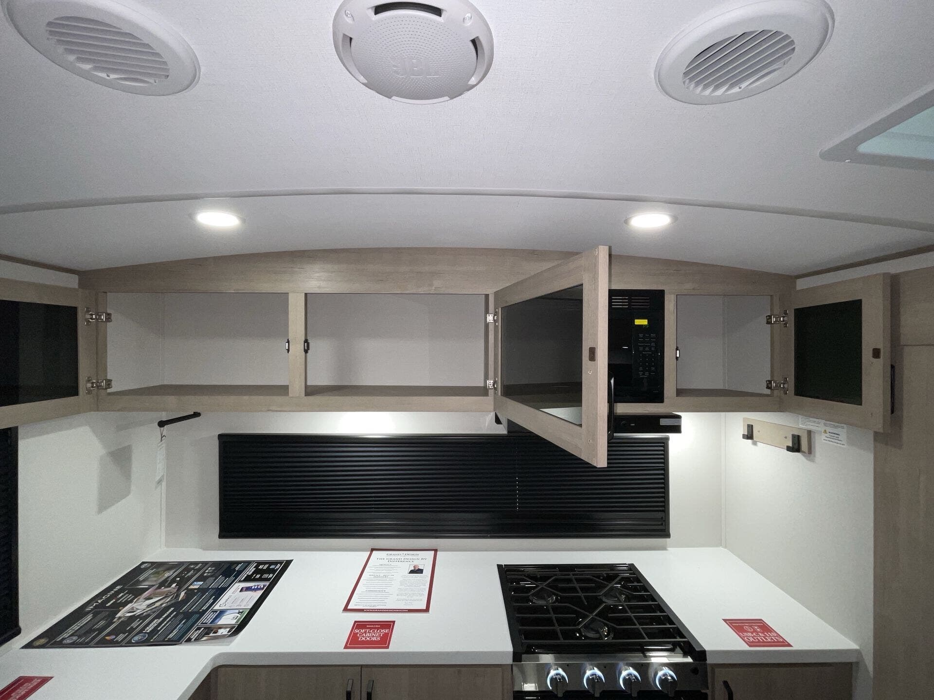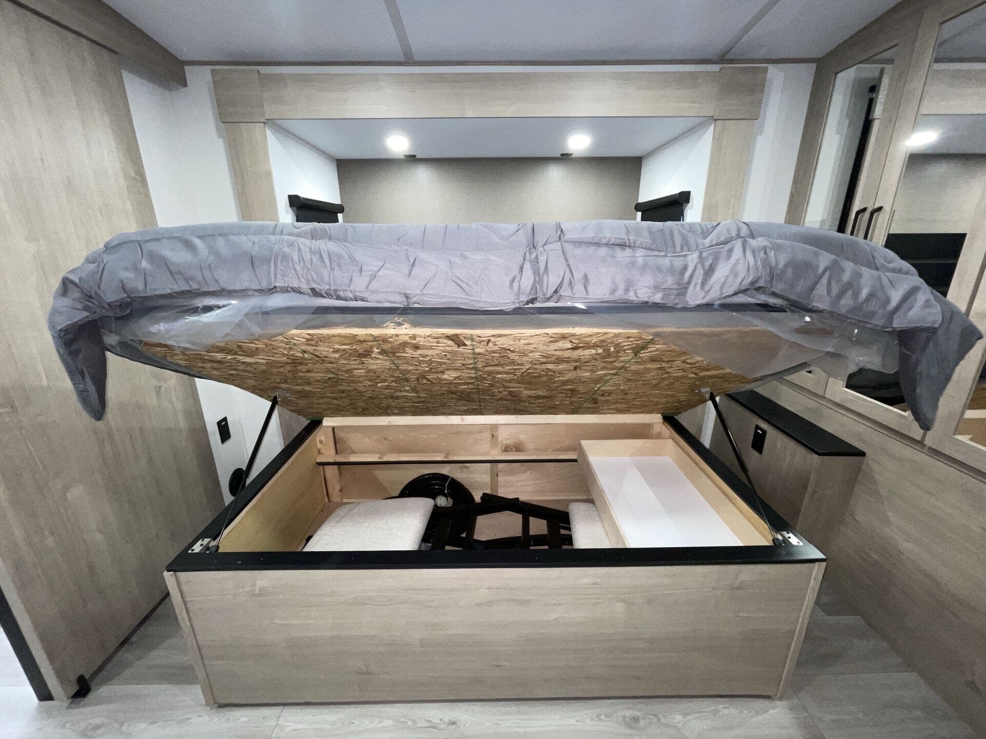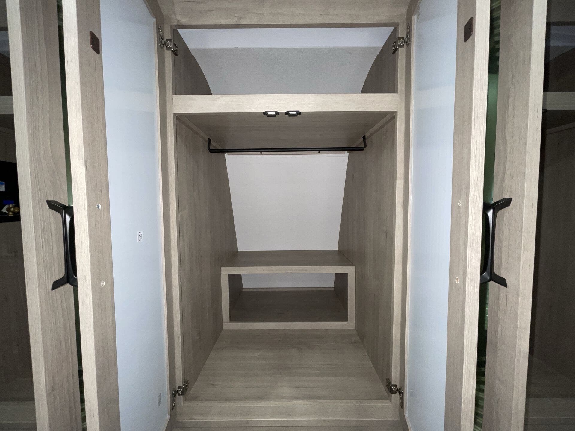 King Size Bed, Kitchen Sink, Medicine Cabinet, Overhead Cabinetry, Pantry, Roof Vents, Shower, Solid Surface Countertops, Theater Seating, Toilet, Wardrobe(s), Washer/Dryer Prep