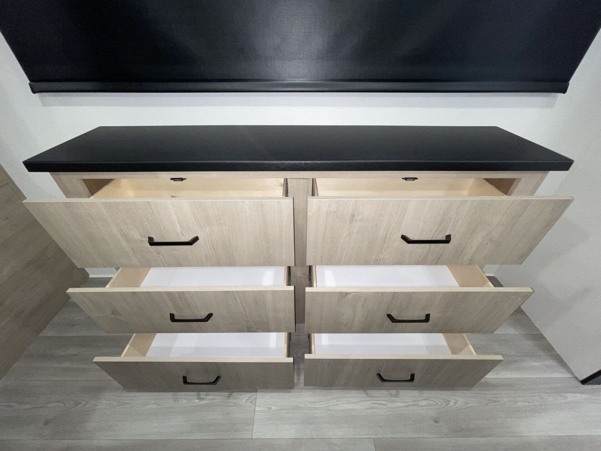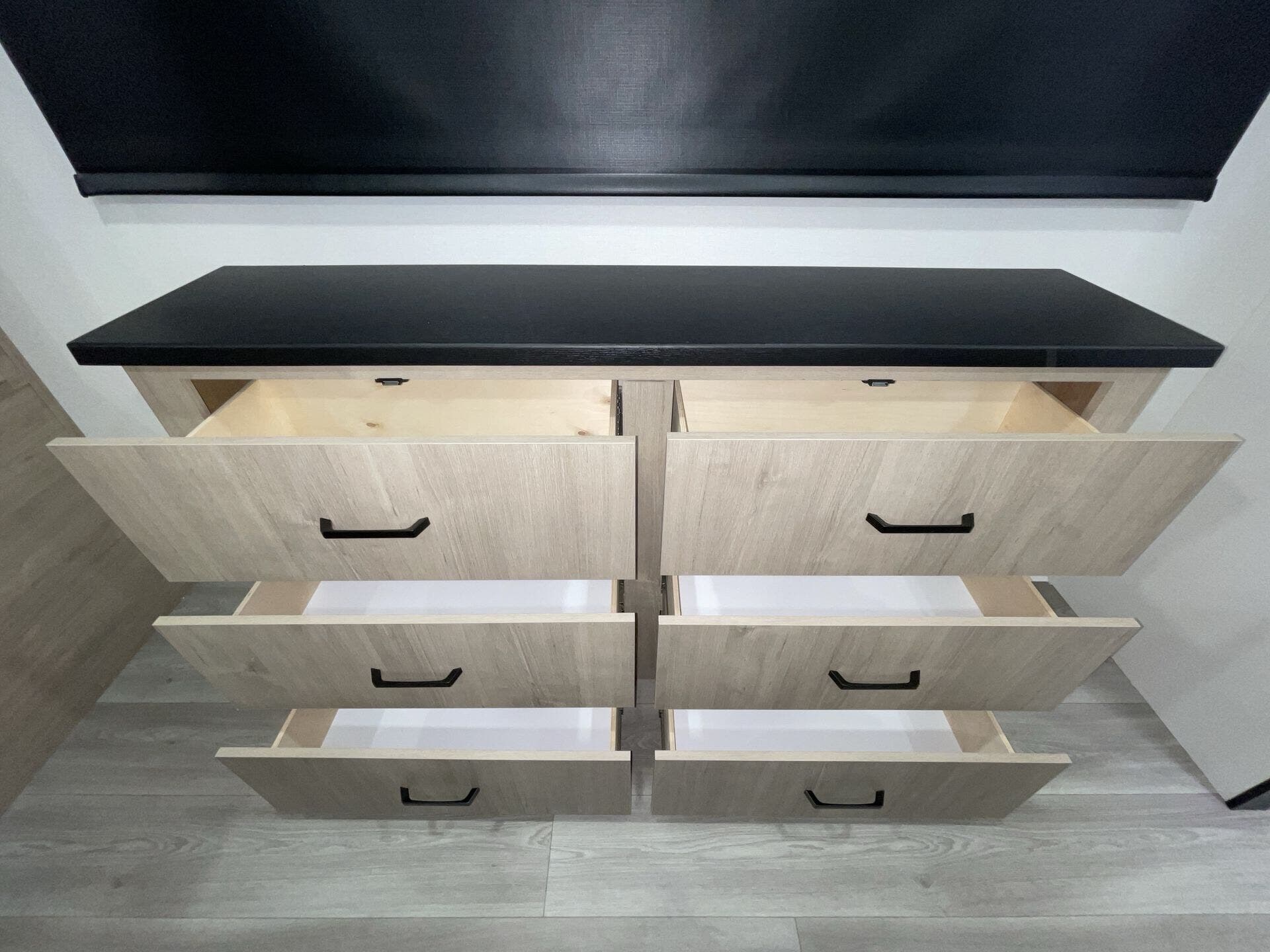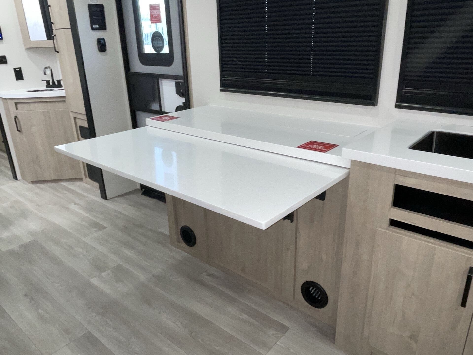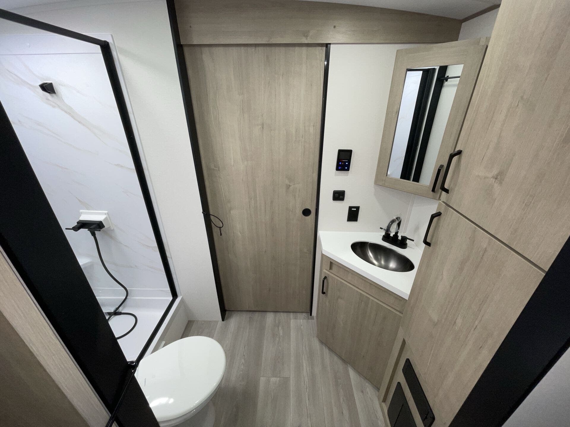 King Size Bed, Kitchen Sink, Medicine Cabinet, Overhead Cabinetry, Pantry, Roof Vents, Shower, Solid Surface Countertops, Theater Seating, Toilet, Wardrobe(s), Washer/Dryer Prep