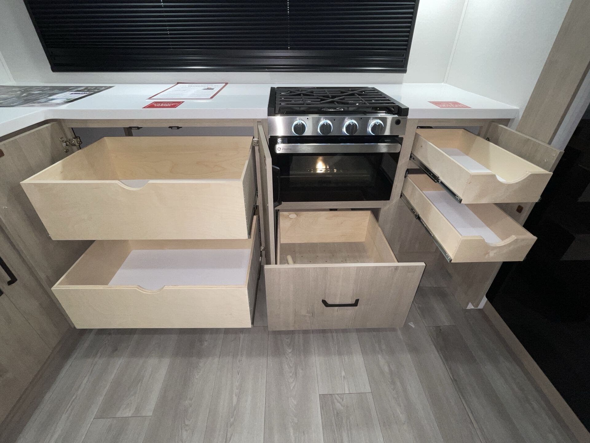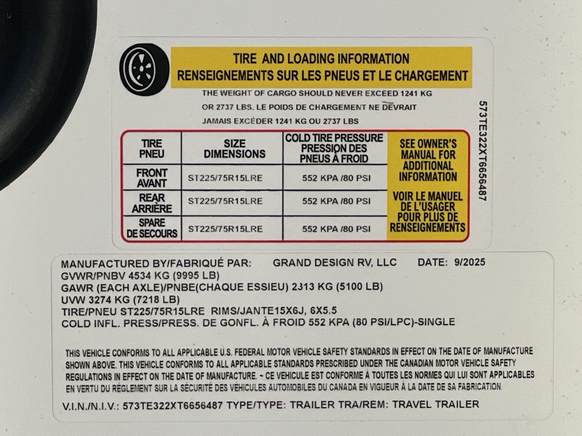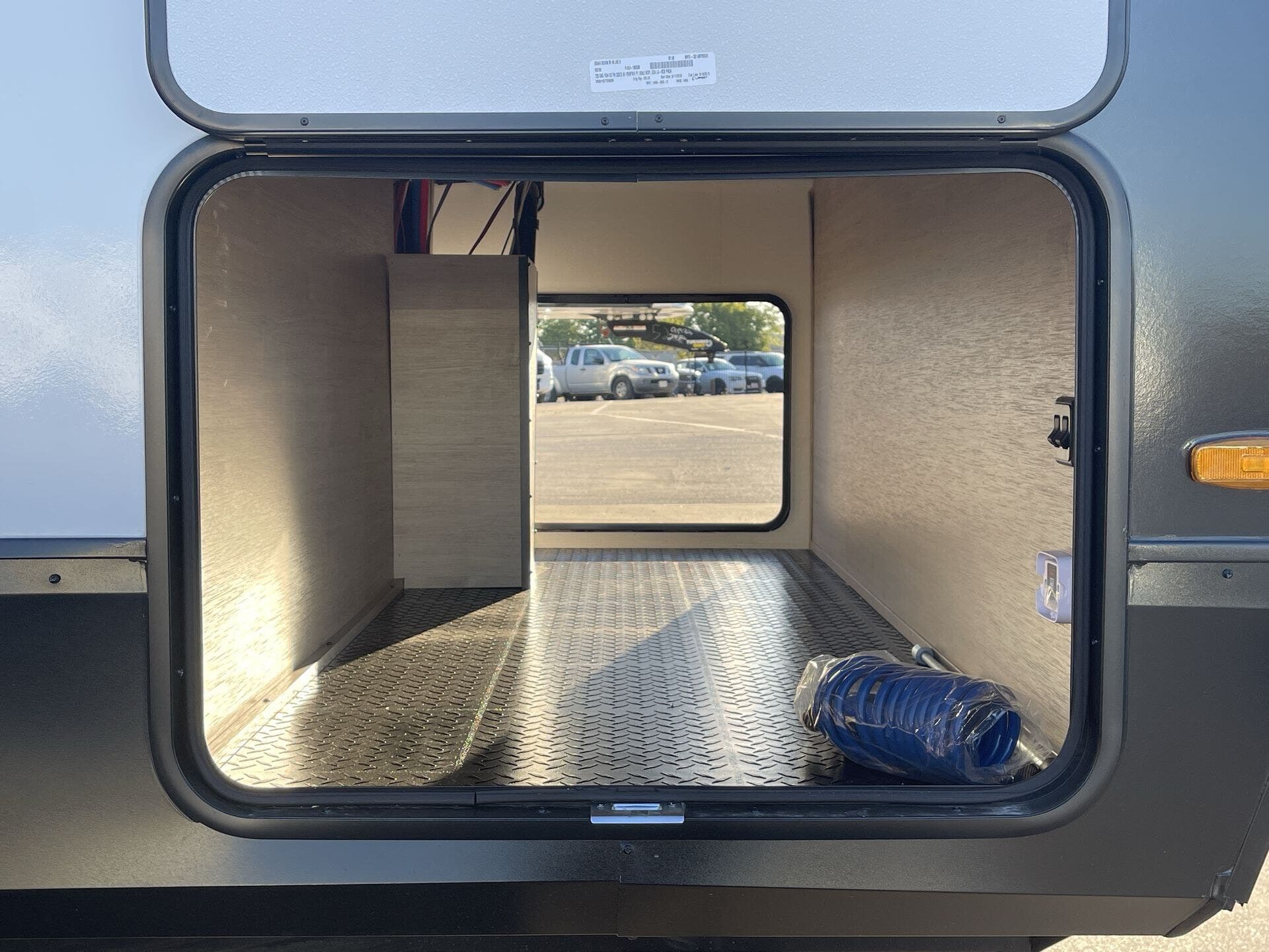 Awning, Black Tank Flush, Detachable Power Cord, Enclosed Underbelly, Heated Underbelly, Hitch, Leveling Jacks, Pass Thru Storage, Power Roof Vent, Roof Vent, Screen Door, Slideout, Spare Tire Kit -