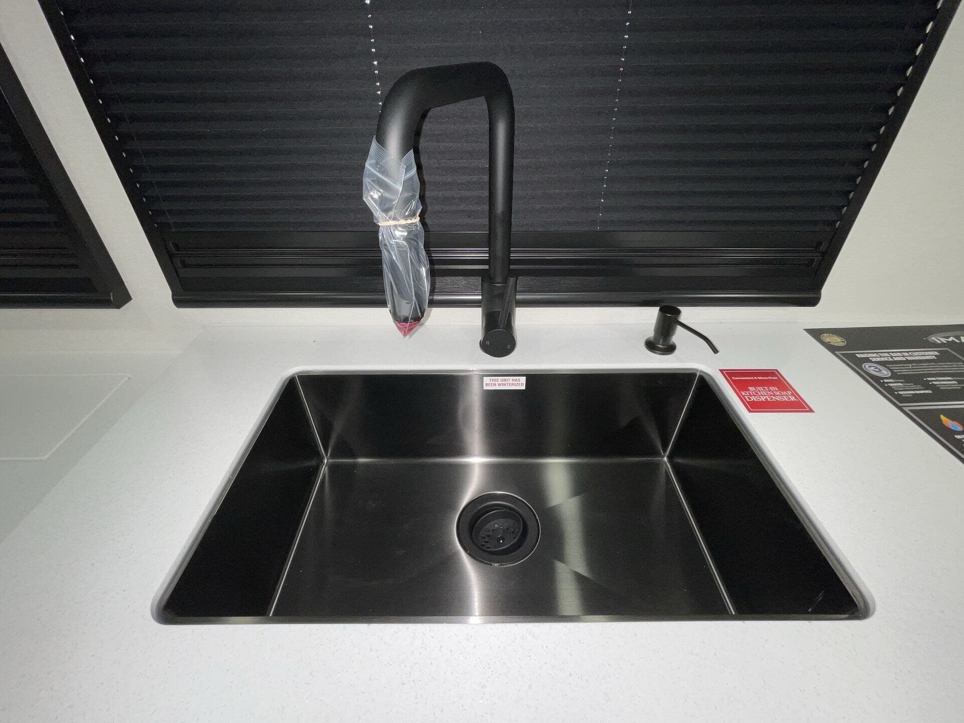 - Rear kitchen layout designed for efficient cooking and cleanup