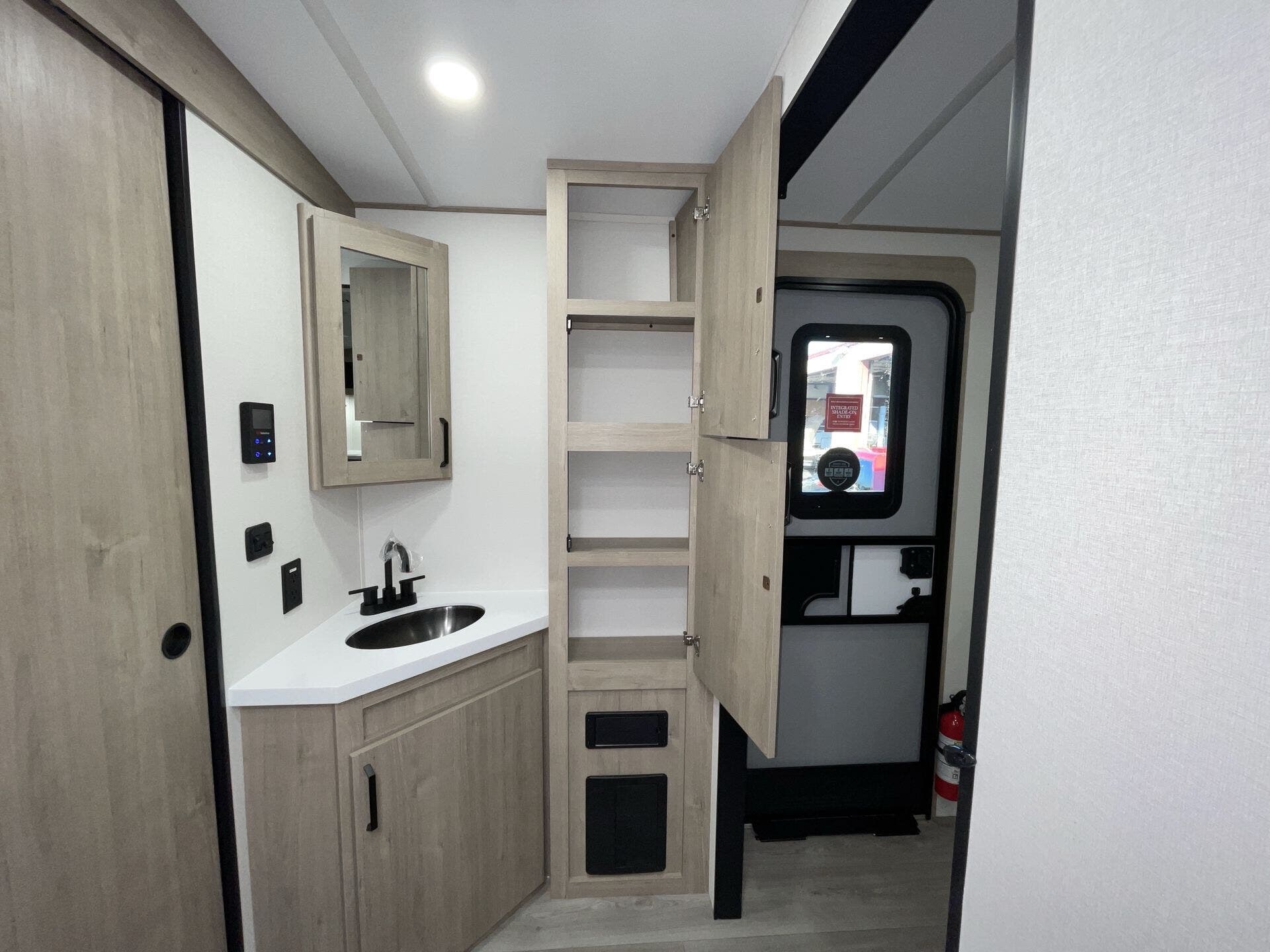The Imagine 2700BS features a versatile layout that blends a front bedroom, mid bath, and rear kitchen to maximize living space and accessibility. With two slideouts, interior square footage expands to create a bright, airy feel—perfect for extended trips or weekend escapes. Inside, guests will find a king-size bed in the sleeping area, ample wardrobe storage, and a shower designed for everyday use. The living area showcases theater seating for two, solid surface countertops, and generous overhead cabinetry that keeps essentials close at hand. Washer/dryer prep adds long-term flexibility for longer travels, while a spacious pantry and kitchen sink area simplify meal prep on the go.