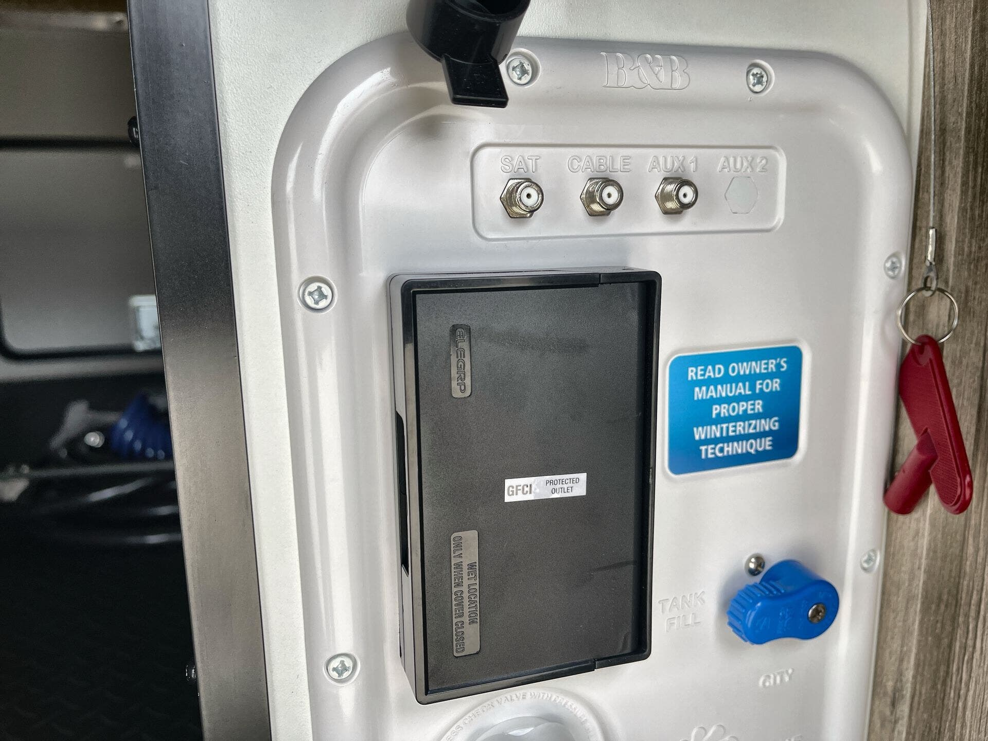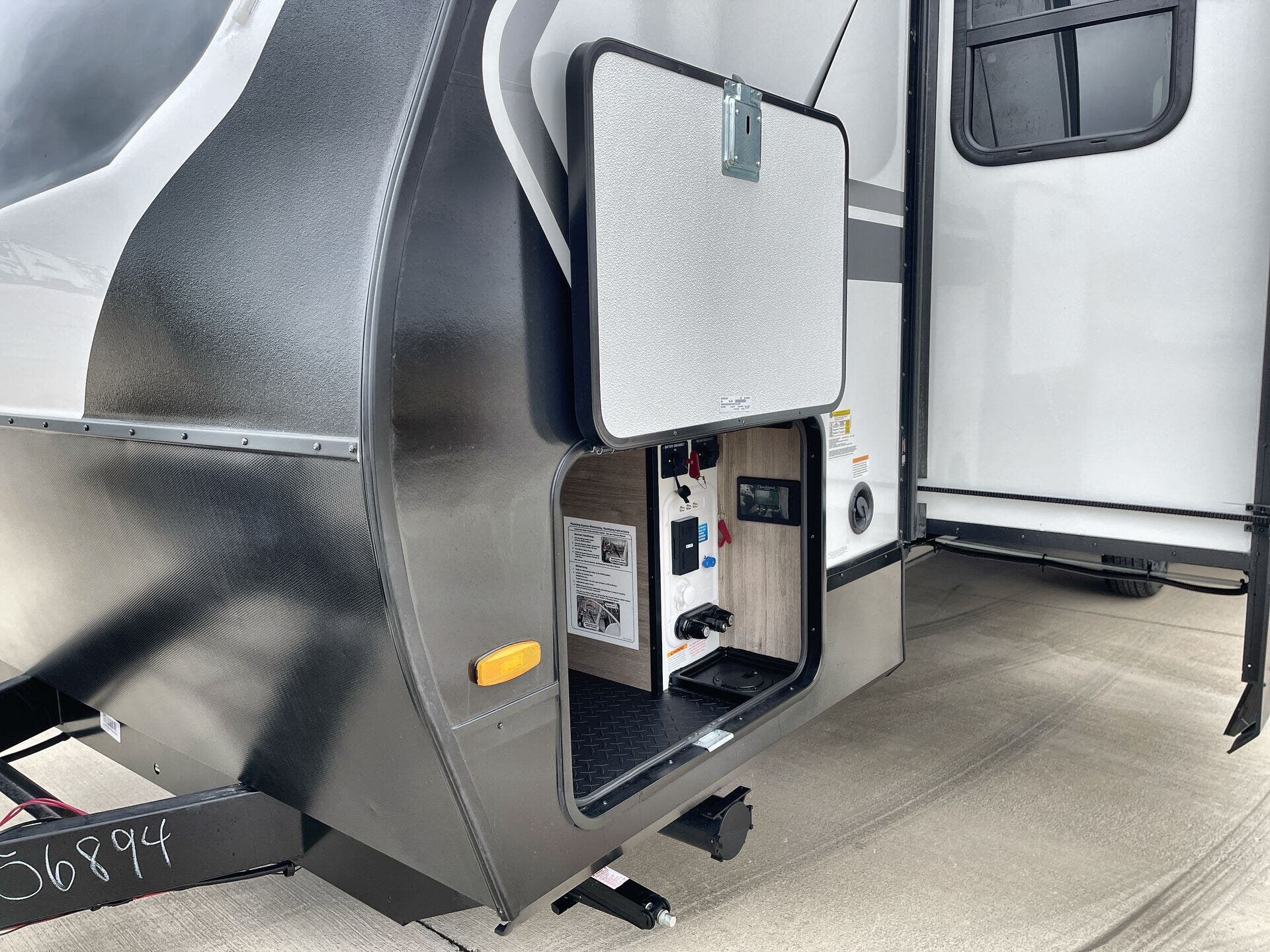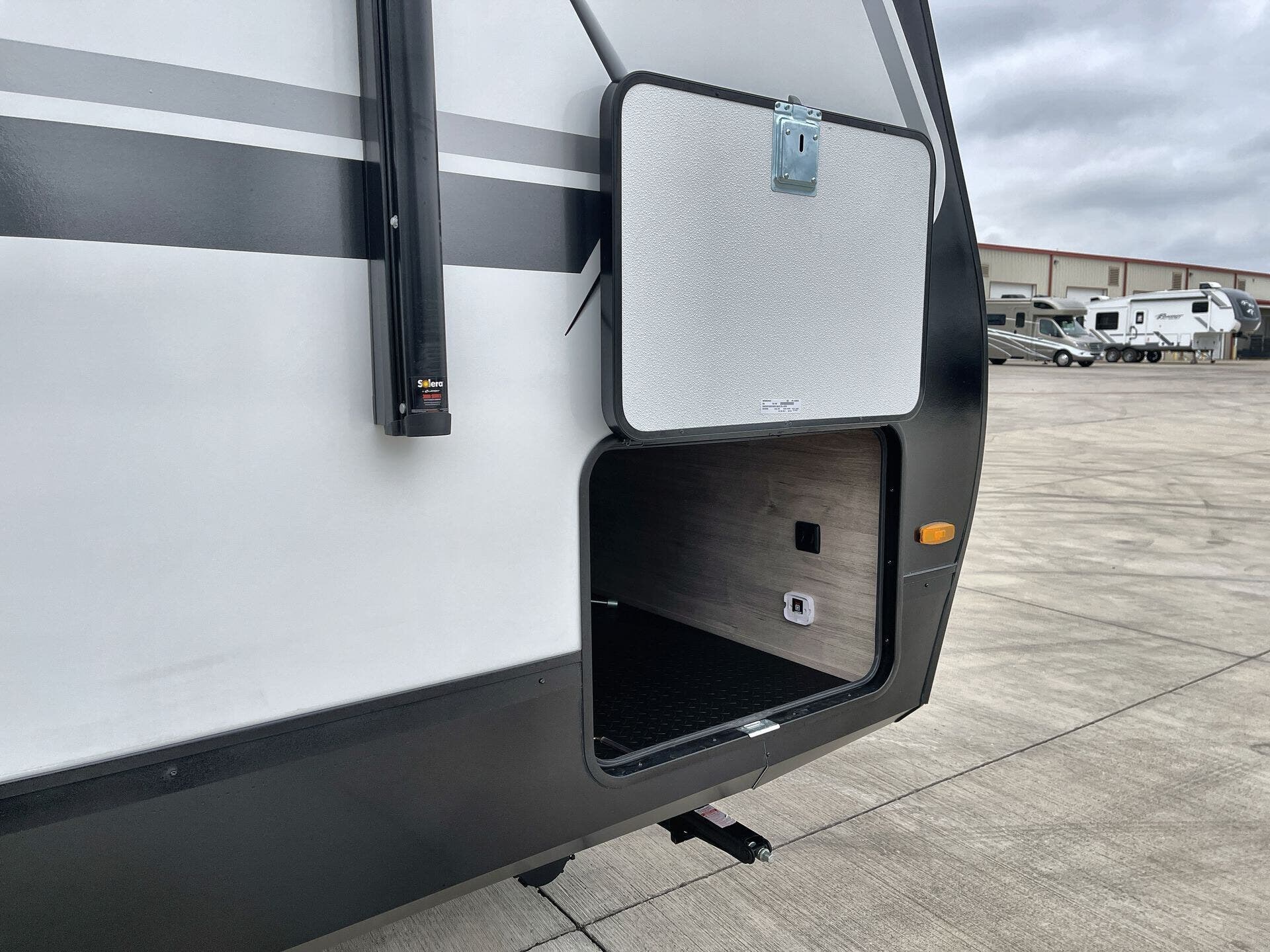 Awning, Black Tank Flush, Detachable, Detachable Power Cord, Enclosed Underbelly, Hitch, Ladder, Power Awning, Skylight, Slam Latch Baggage Doors -