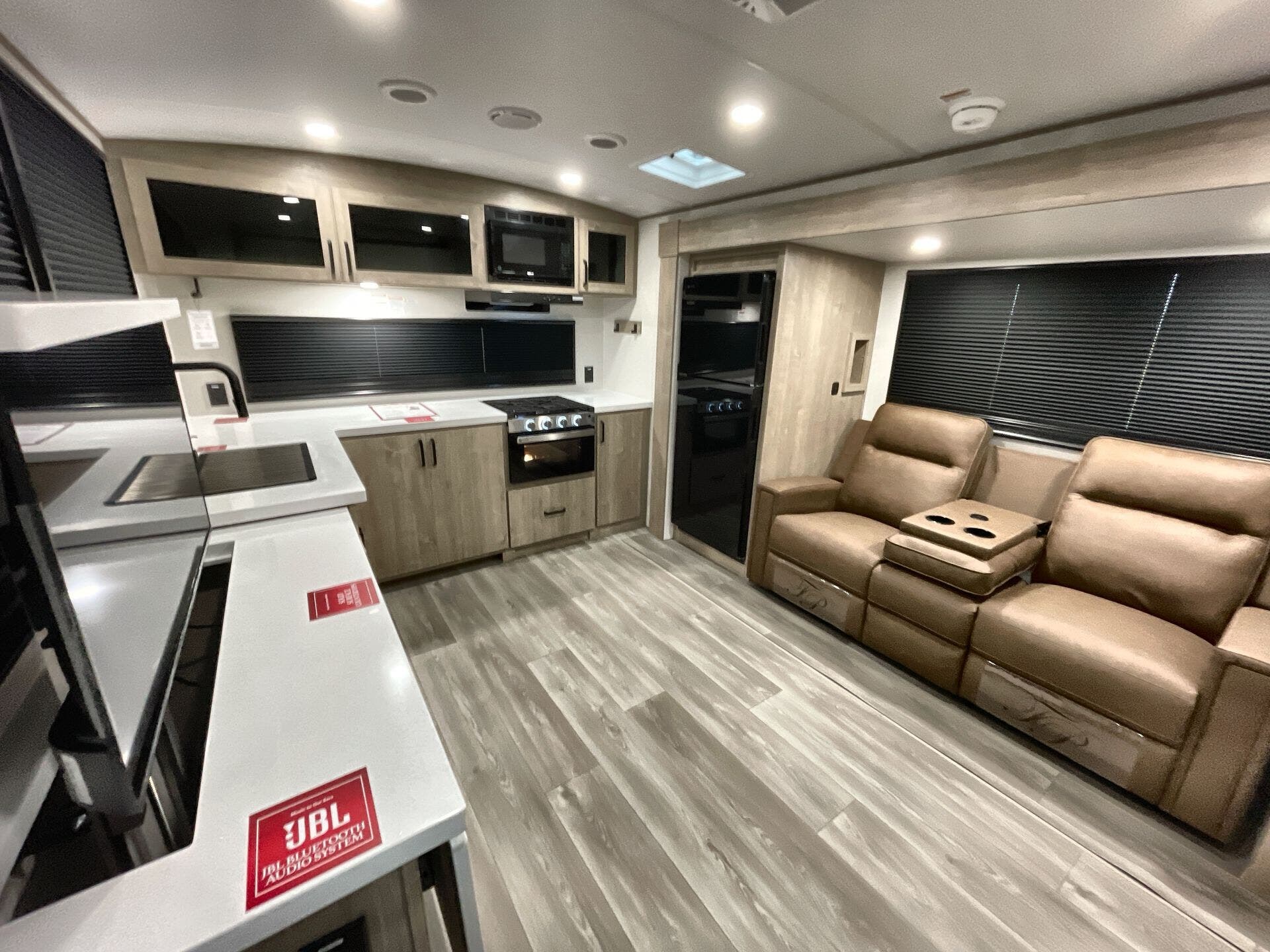 The Imagine 2700BS is crafted for comfort with a Queen bed, a full shower, and a well-appointed bath area. A skylight brightens the living space, while a medicine cabinet adds convenient storage. The kitchen includes a microwave, oven, and refrigerator for flexible meal prep on the go, and a dedicated entertainment setup with a TV and LED lighting creates a welcoming atmosphere after a day of exploration. With two sizable slideouts, the interior feels more open, making it easy to dine, relax, or prepare a meal without feeling cramped.