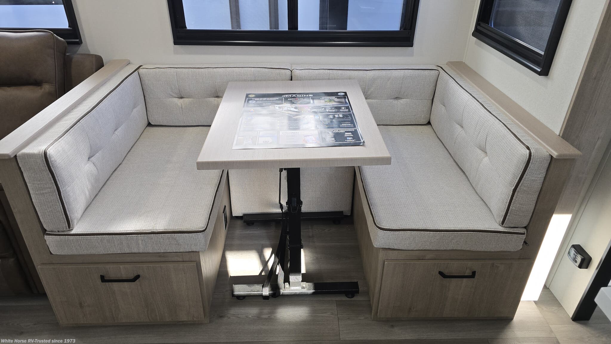 • Large U-shaped dinette (or optional theater seating layout) for family meals, game nights, or extra sleeping space