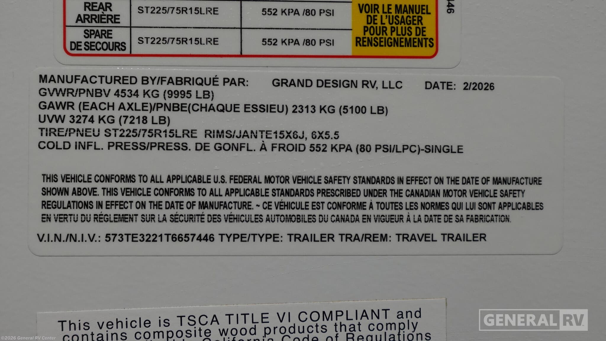 - VIN573TE3221T6657446