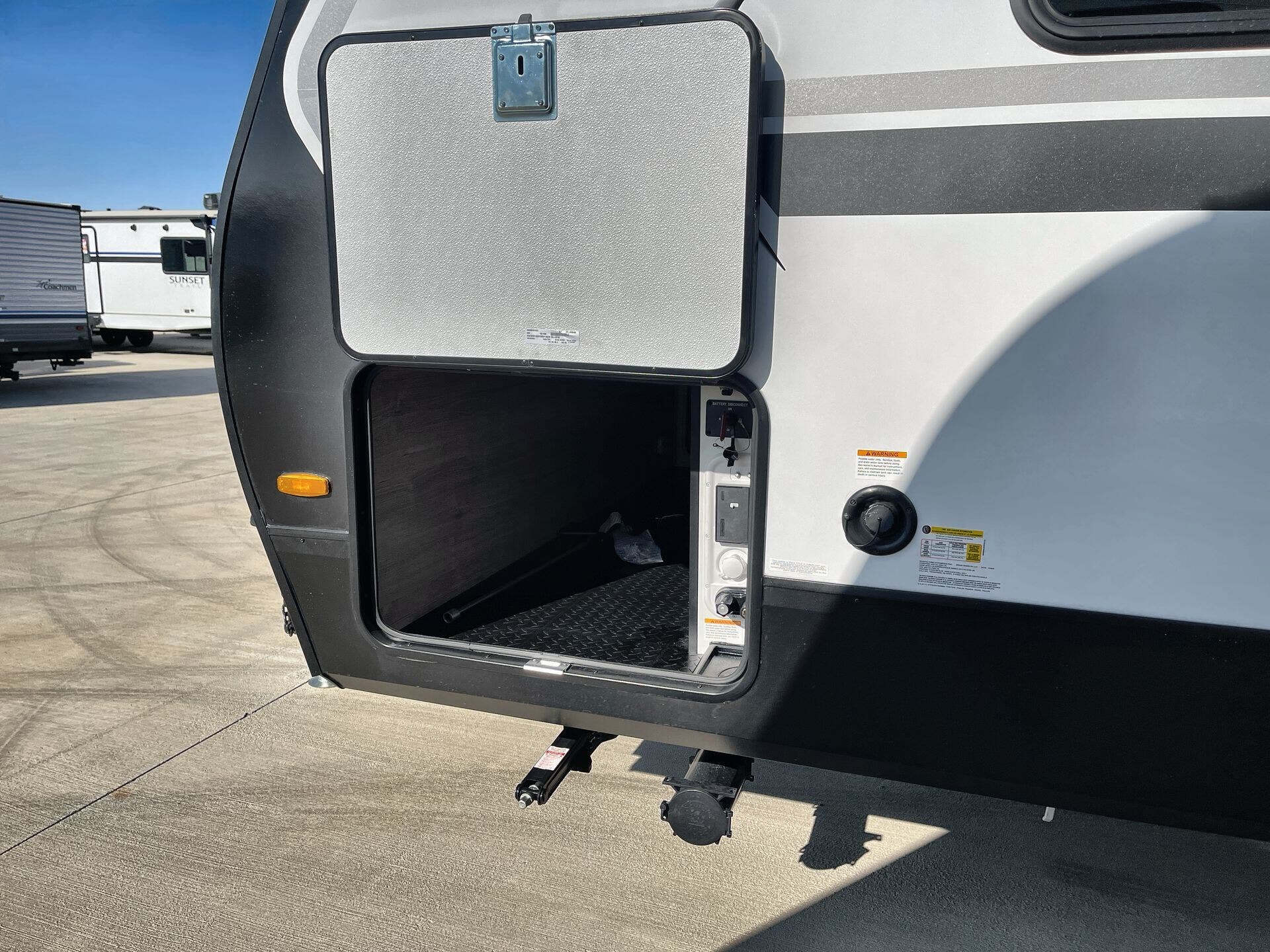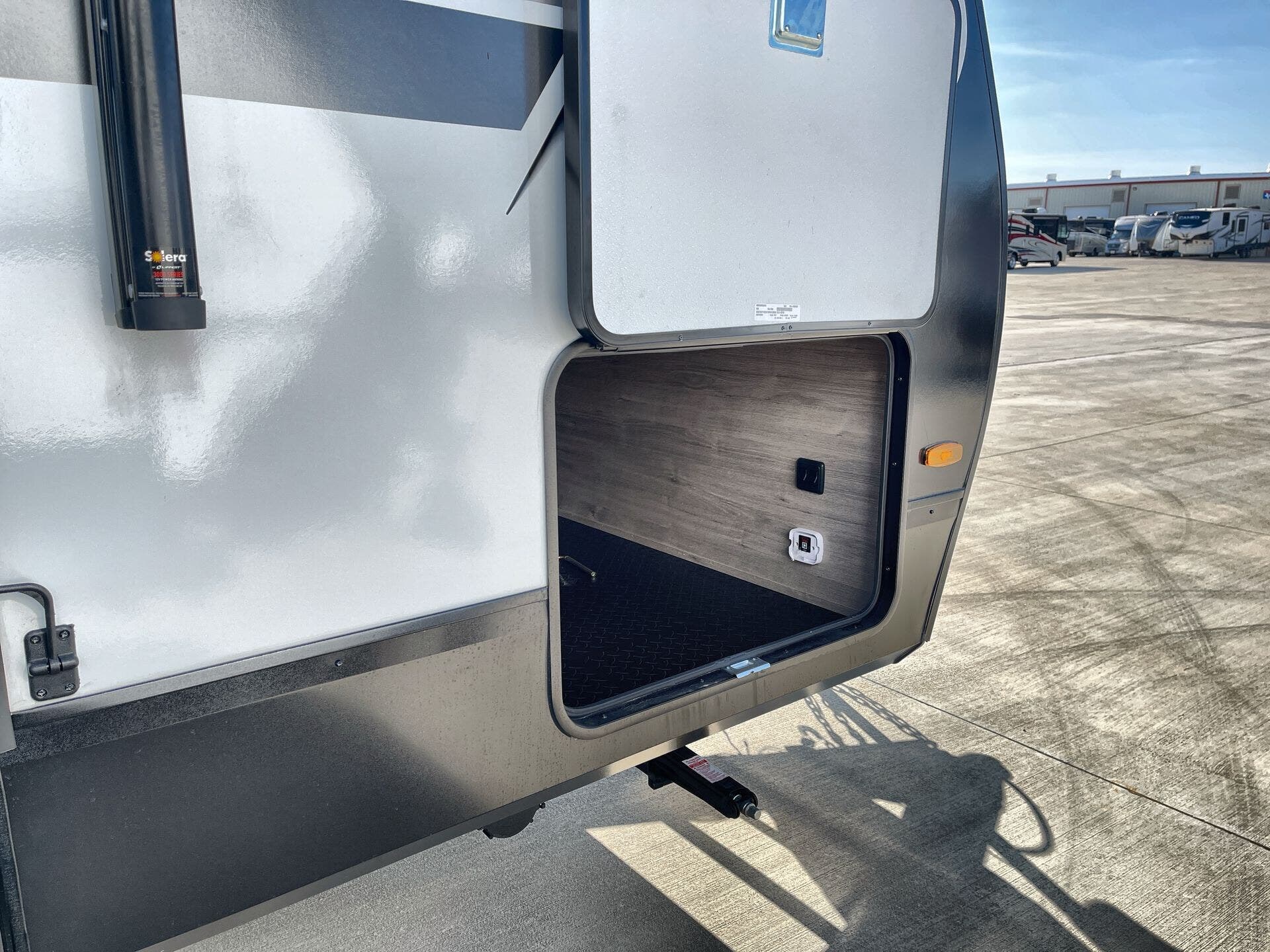Awning, Black Tank Flush, Detachable, Detachable Power Cord, Enclosed Underbelly, Hitch, Ladder, Power Awning, Skylight, Slam Latch Baggage Doors -