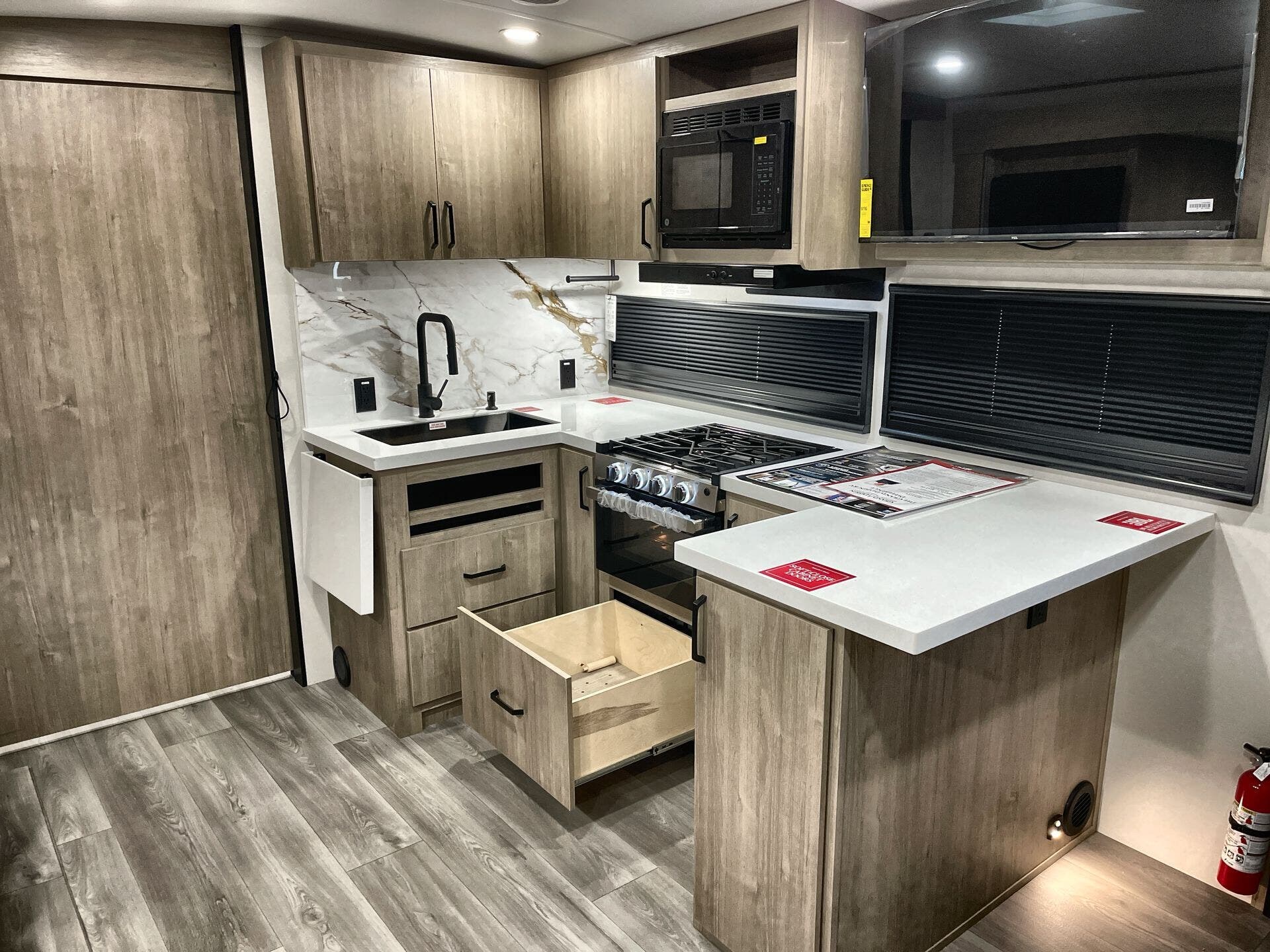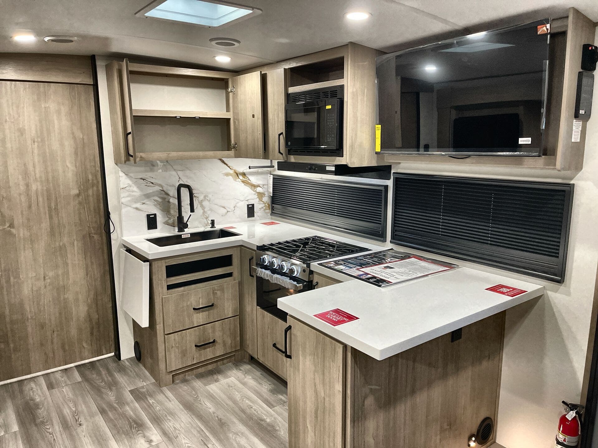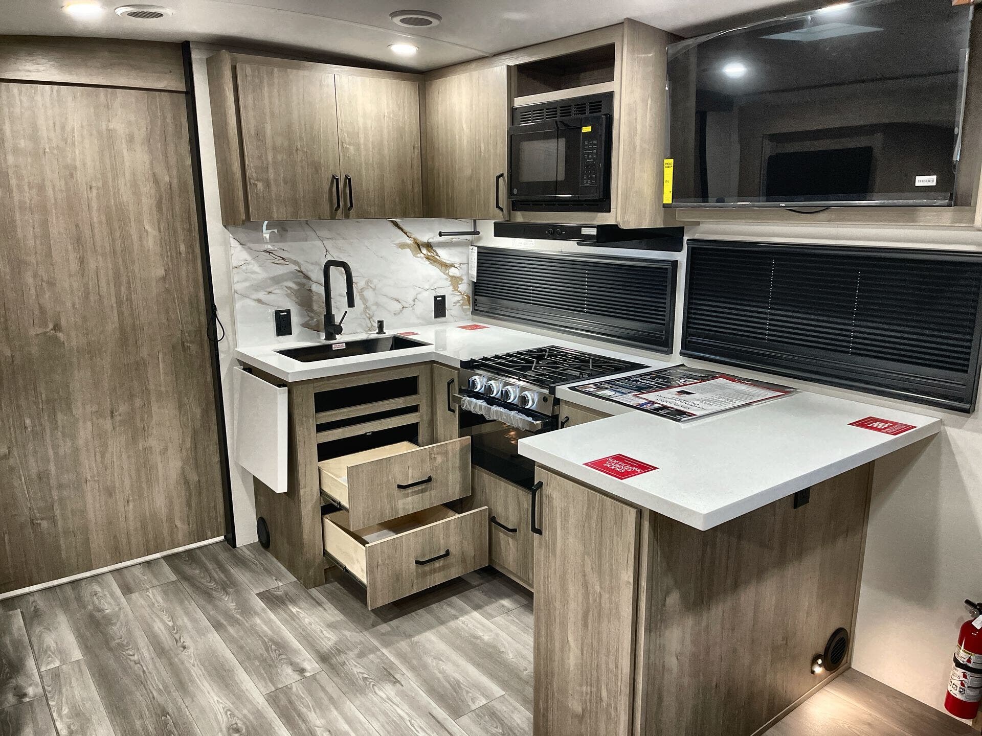 - Water heater for quick showers and convenient boondocking