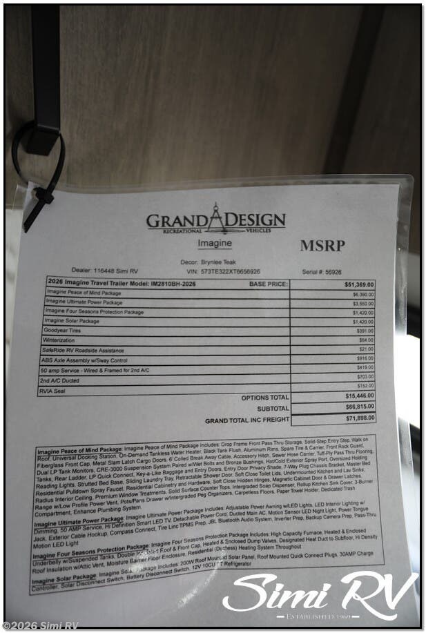 Request More Info on this 2026 Grand Design Imagine 2810BH Offered for sale by Simi RV