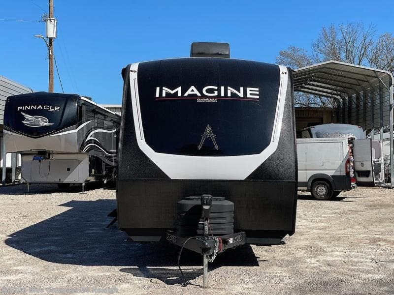 Just imagine leaving the world behind and secluding yourself away with your favorite people in your Grand Design Imagine travel trailer! The Imagine has been designed to enjoy extended season camping and includes a high-capacity furnace, a heated and enclosed underbelly with suspended tanks, a designated heat duct to the subfloor, and a high-density roof insulation with attic vent. You'll have maximum head room on the interior with 81" radius ceilings, and large panoramic windows to let in natural lighting. The exclusive drop-frame pass-through storage compartment is going to allow you to bring along lots of equipment, and the universal docking station is an all-in-one location for utilities and hook-ups. You'll also have oversized tank capacities so that you can fill and empty your tanks less often.