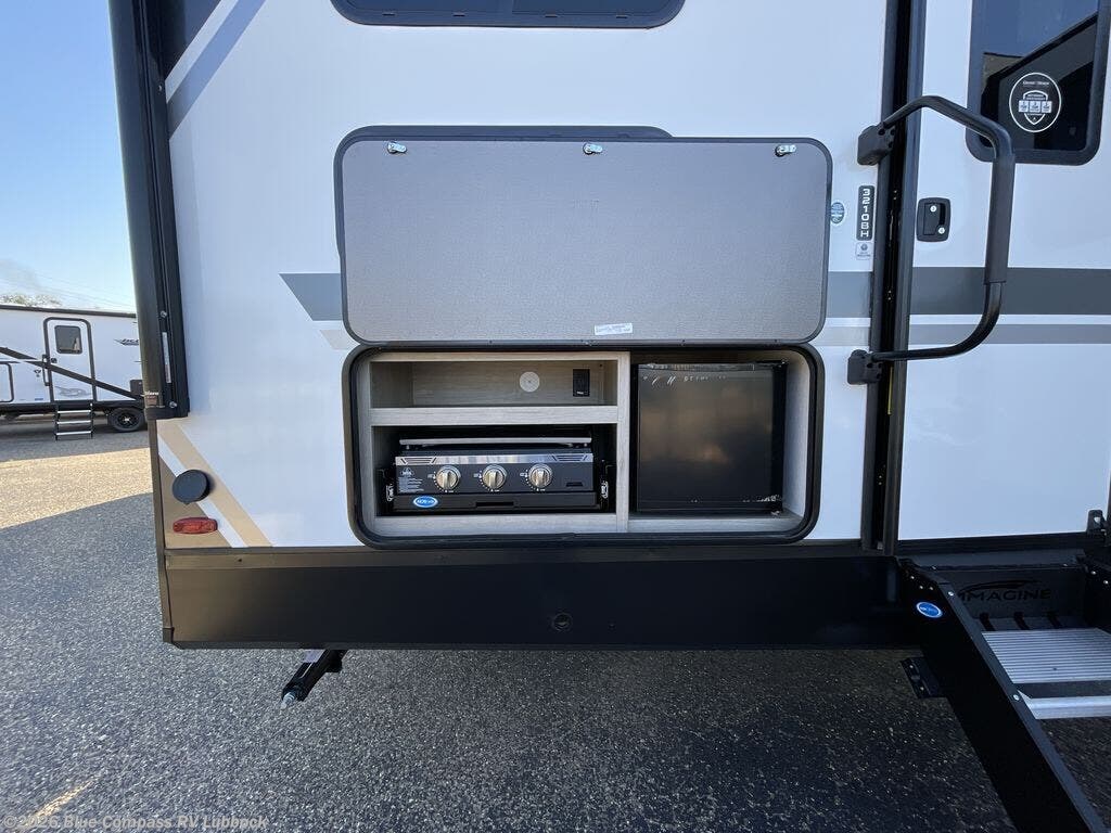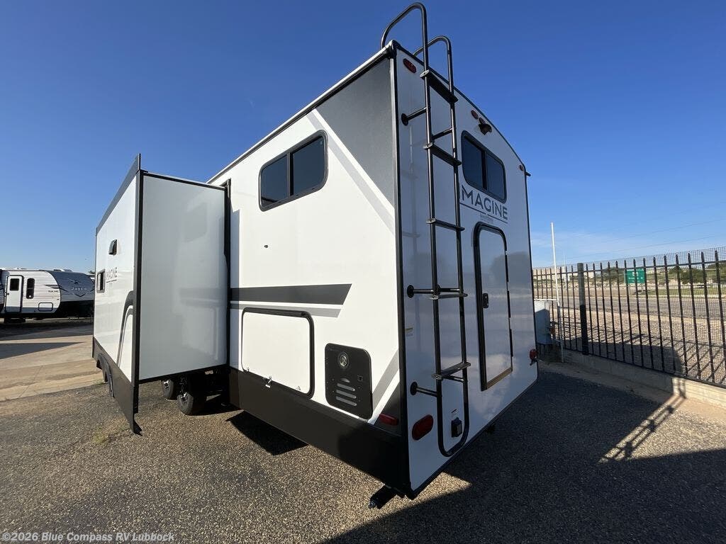 A great travel trailer for larger families or those that enjoy traveling with a few friends! This Imagine quad bunk model features two private bedrooms, with the master up front including a private entry/exit door just beyond a spacious walk-through bathroom that features a 30" x 36" shower with skylight to bring in more natural lighting each day, plus a toilet, sink and linen storage. In the kitchen, a nice island for food prep and cleaning up makes it easy to be part of the conversation in the room while you get meals ready for everyone. Speaking of food prep, how about the outside griddle and 1.6 cu. ft. refrigerator which is perfect for cooking outside, or for making late night snacks when all are enjoying the evening under the stars or in lawn chairs under one of two 9' 6" awnings with LED lighting. Your kids can bring along extra guests with the added sleeping that a quad bunk model provides!