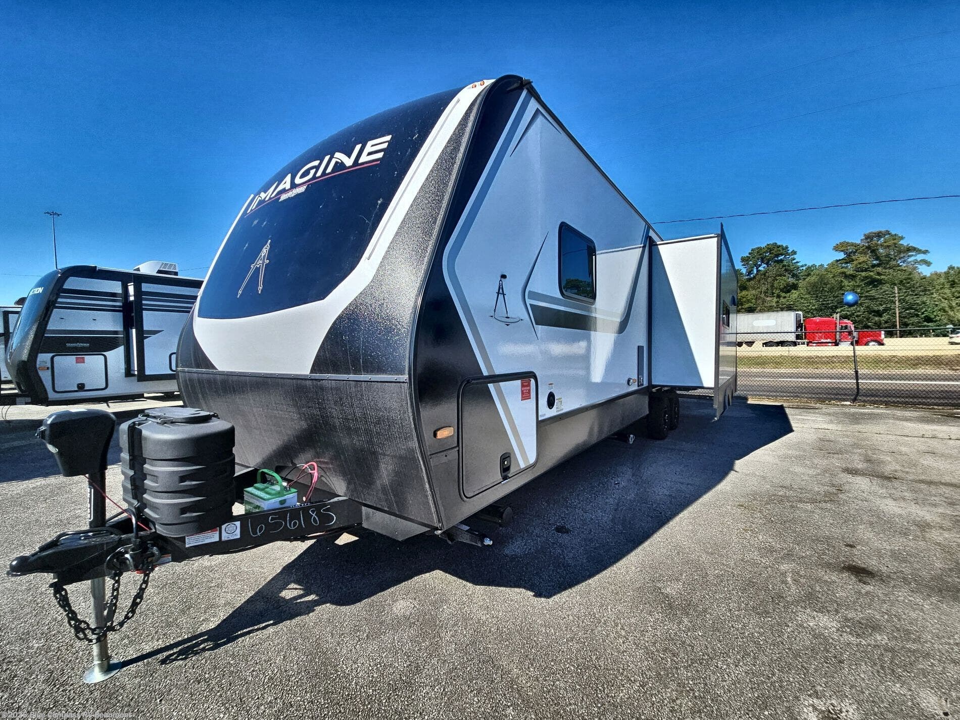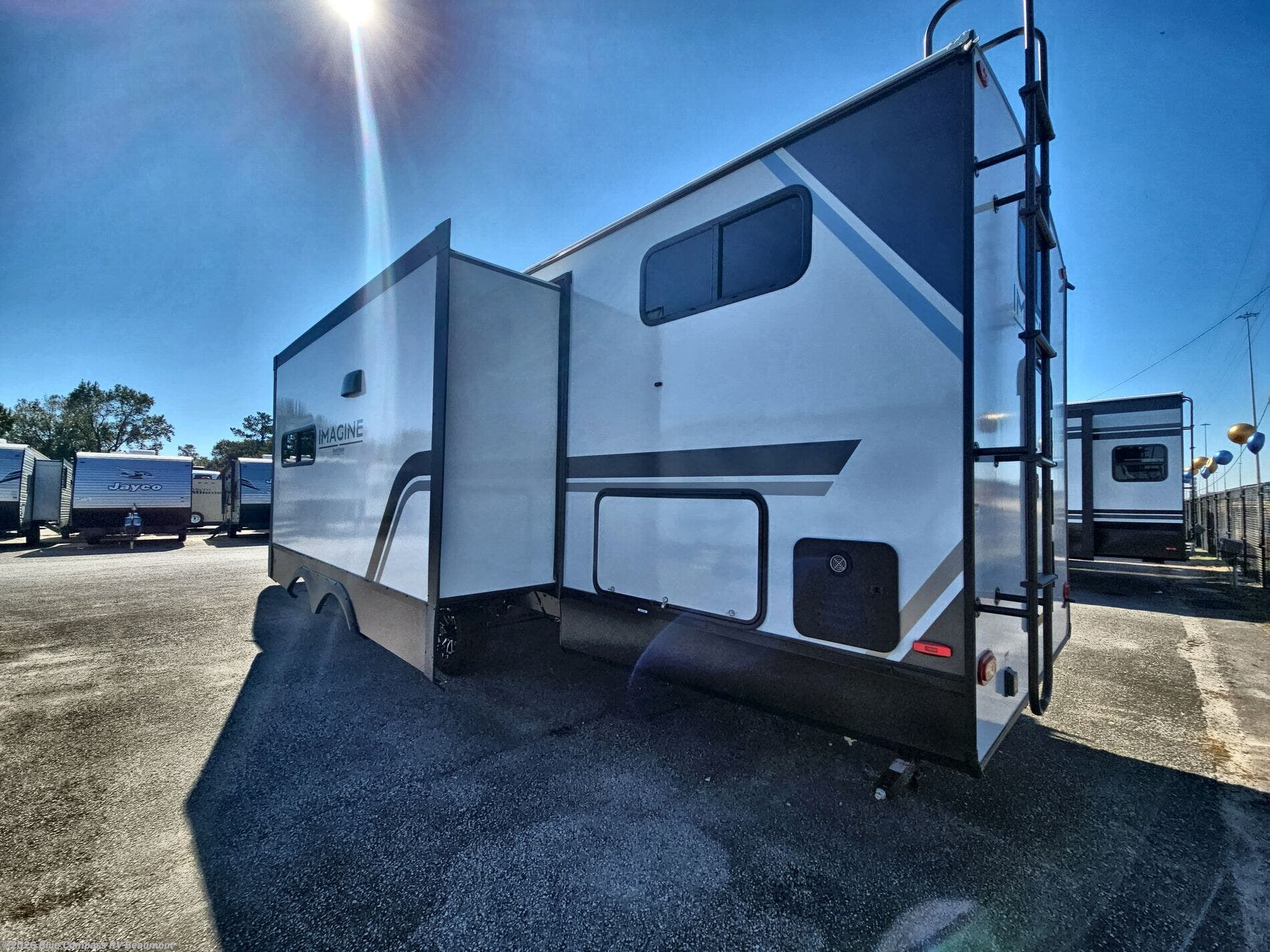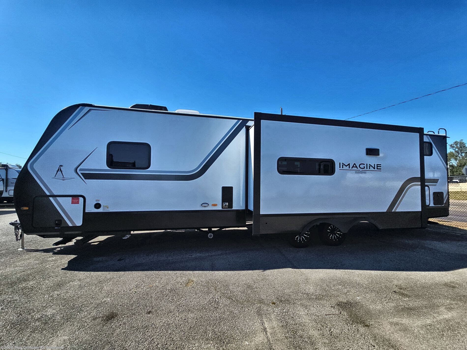 A great travel trailer for larger families or those that enjoy traveling with a few friends! This Imagine quad bunk model features two private bedrooms, with the master up front including a private entry/exit door just beyond a spacious walk-through bathroom that features a 30" x 36" shower with skylight to bring in more natural lighting each day, plus a toilet, sink and linen storage. In the kitchen, a nice island for food prep and cleaning up makes it easy to be part of the conversation in the room while you get meals ready for everyone. Speaking of food prep, how about the outside griddle and 1.6 cu. ft. refrigerator which is perfect for cooking outside, or for making late night snacks when all are enjoying the evening under the stars or in lawn chairs under one of two 9' 6" awnings with LED lighting. Your kids can bring along extra guests with the added sleeping that a quad bunk model provides!