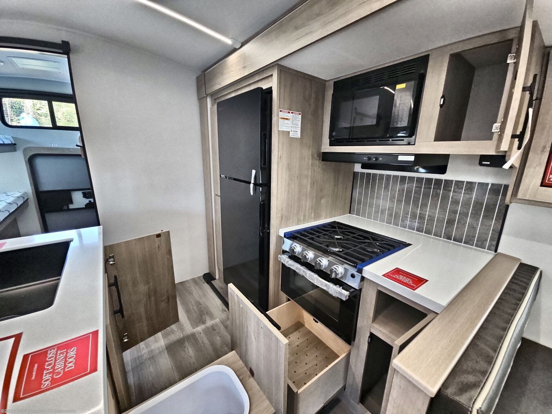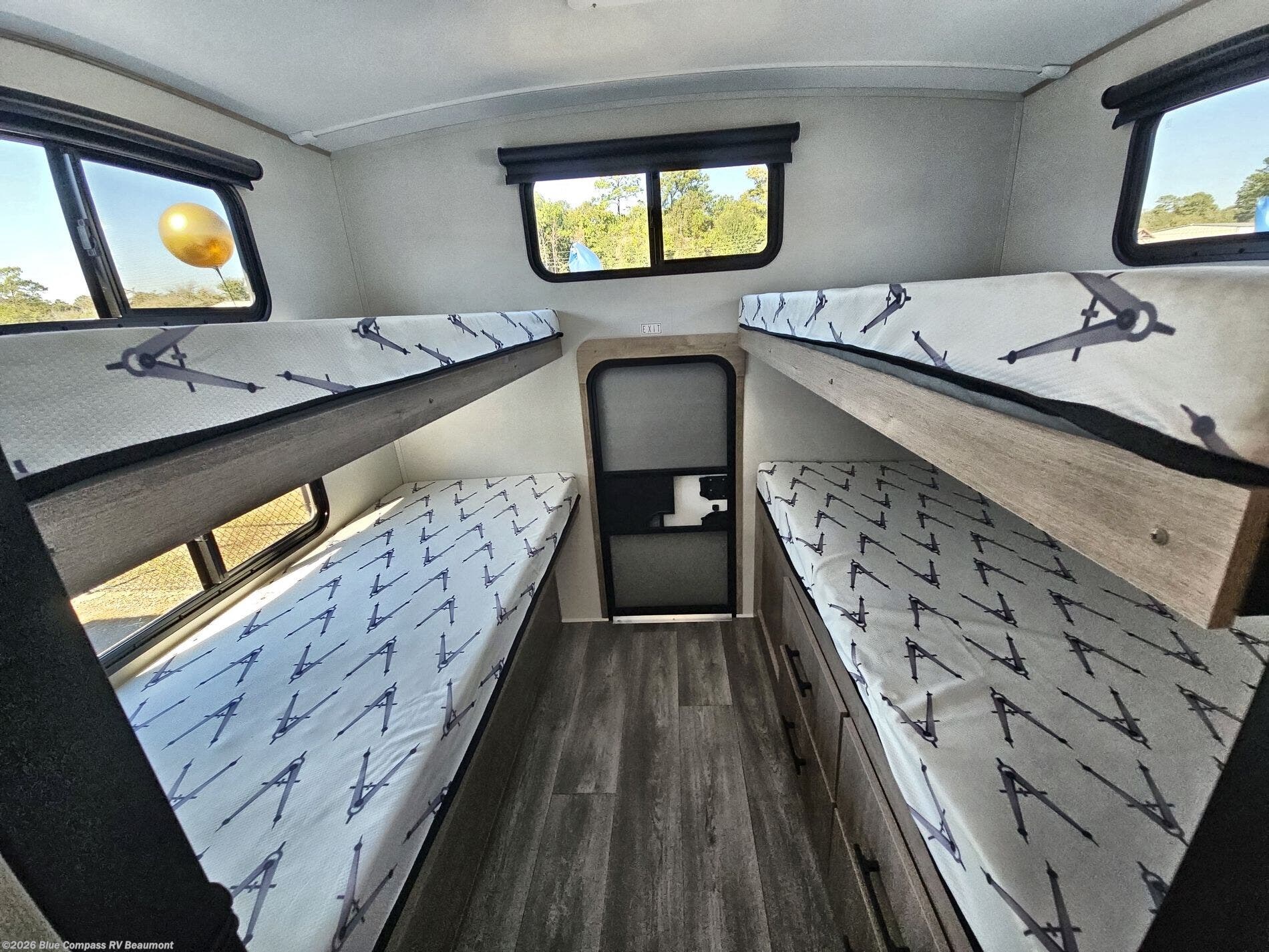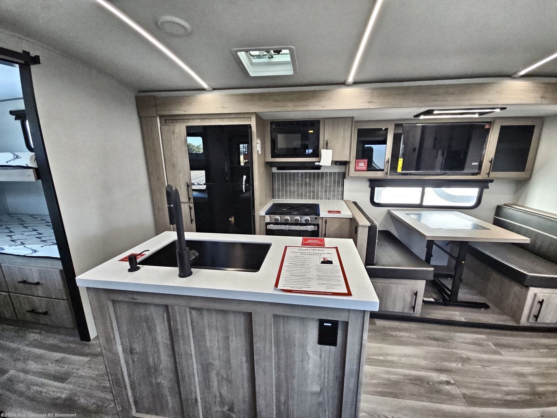 A great travel trailer for larger families or those that enjoy traveling with a few friends! This Imagine quad bunk model features two private bedrooms, with the master up front including a private entry/exit door just beyond a spacious walk-through bathroom that features a 30" x 36" shower with skylight to bring in more natural lighting each day, plus a toilet, sink and linen storage. In the kitchen, a nice island for food prep and cleaning up makes it easy to be part of the conversation in the room while you get meals ready for everyone. Speaking of food prep, how about the outside griddle and 1.6 cu. ft. refrigerator which is perfect for cooking outside, or for making late night snacks when all are enjoying the evening under the stars or in lawn chairs under one of two 9' 6" awnings with LED lighting. Your kids can bring along extra guests with the added sleeping that a quad bunk model provides!