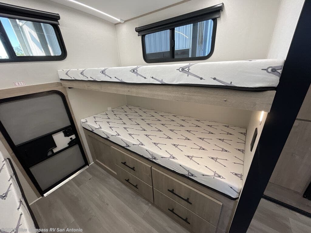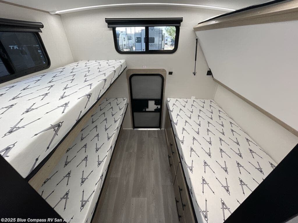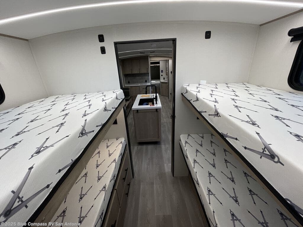 A great travel trailer for larger families or those that enjoy traveling with a few friends! This Imagine quad bunk model features two private bedrooms, with the master up front including a private entry/exit door just beyond a spacious walk-through bathroom that features a 30" x 36" shower with skylight to bring in more natural lighting each day, plus a toilet, sink and linen storage. In the kitchen, a nice island for food prep and cleaning up makes it easy to be part of the conversation in the room while you get meals ready for everyone. Speaking of food prep, how about the outside griddle and 1.6 cu. ft. refrigerator which is perfect for cooking outside, or for making late night snacks when all are enjoying the evening under the stars or in lawn chairs under one of two 9' 6" awnings with LED lighting. Your kids can bring along extra guests with the added sleeping that a quad bunk model provides!
