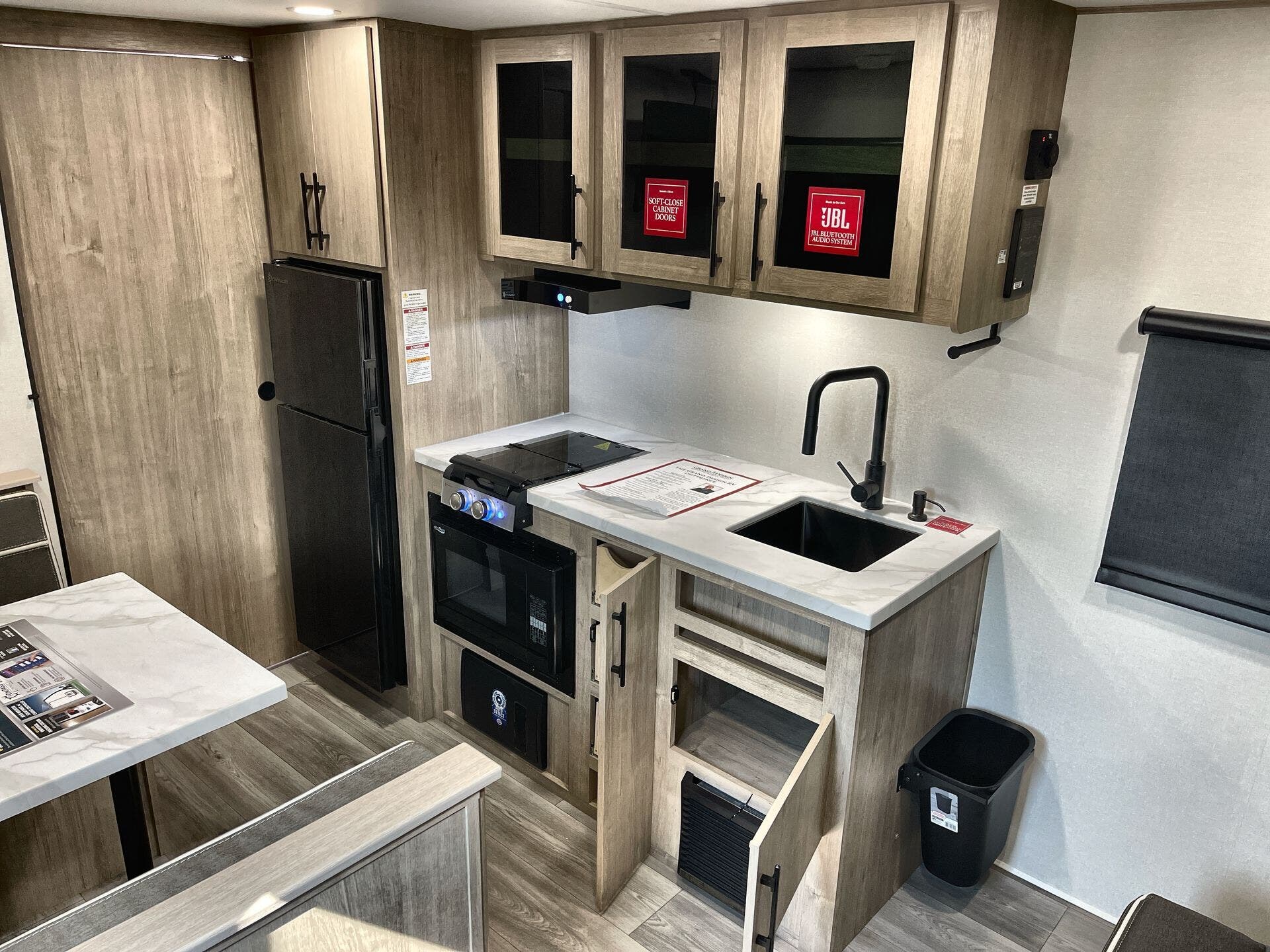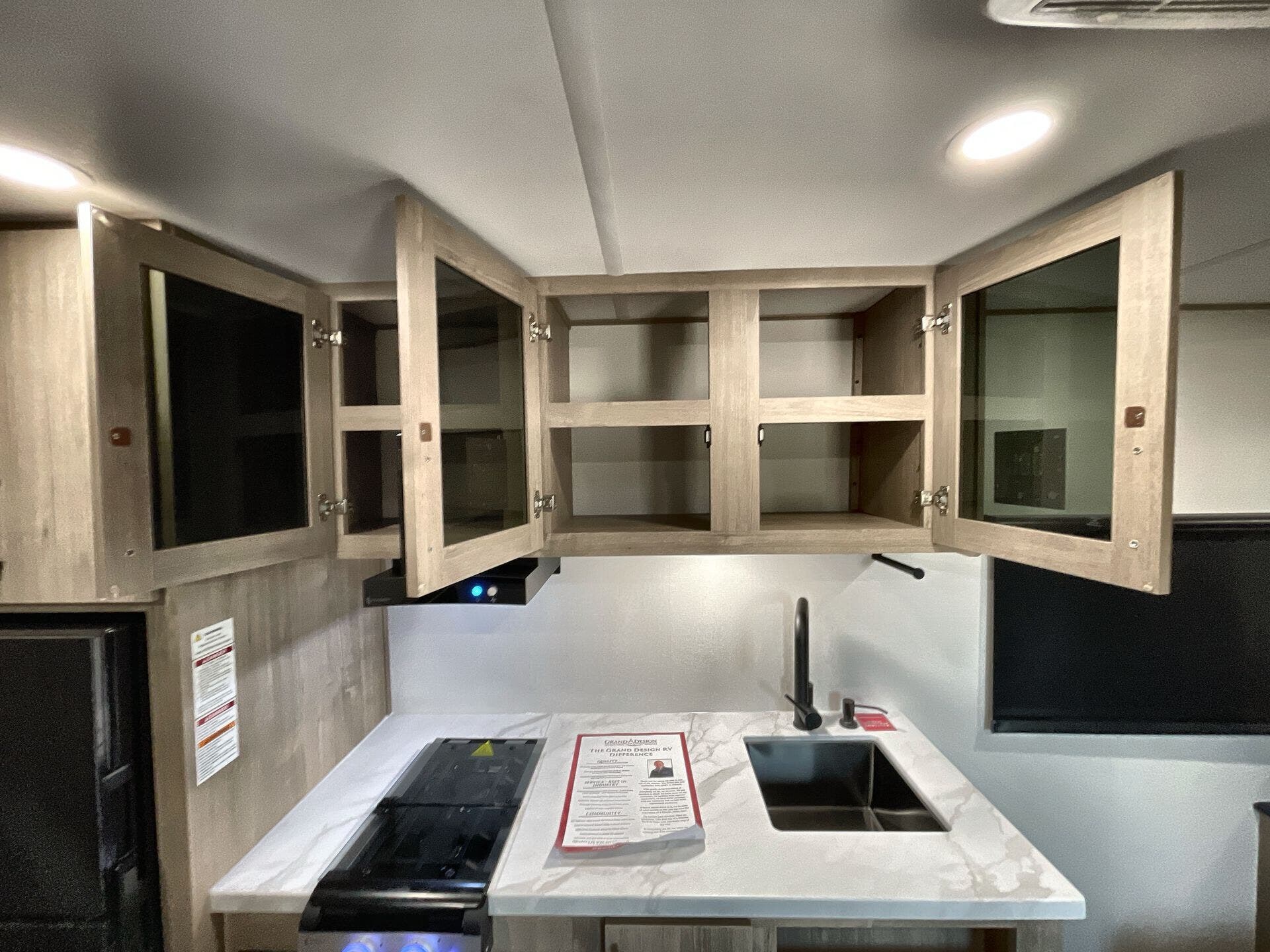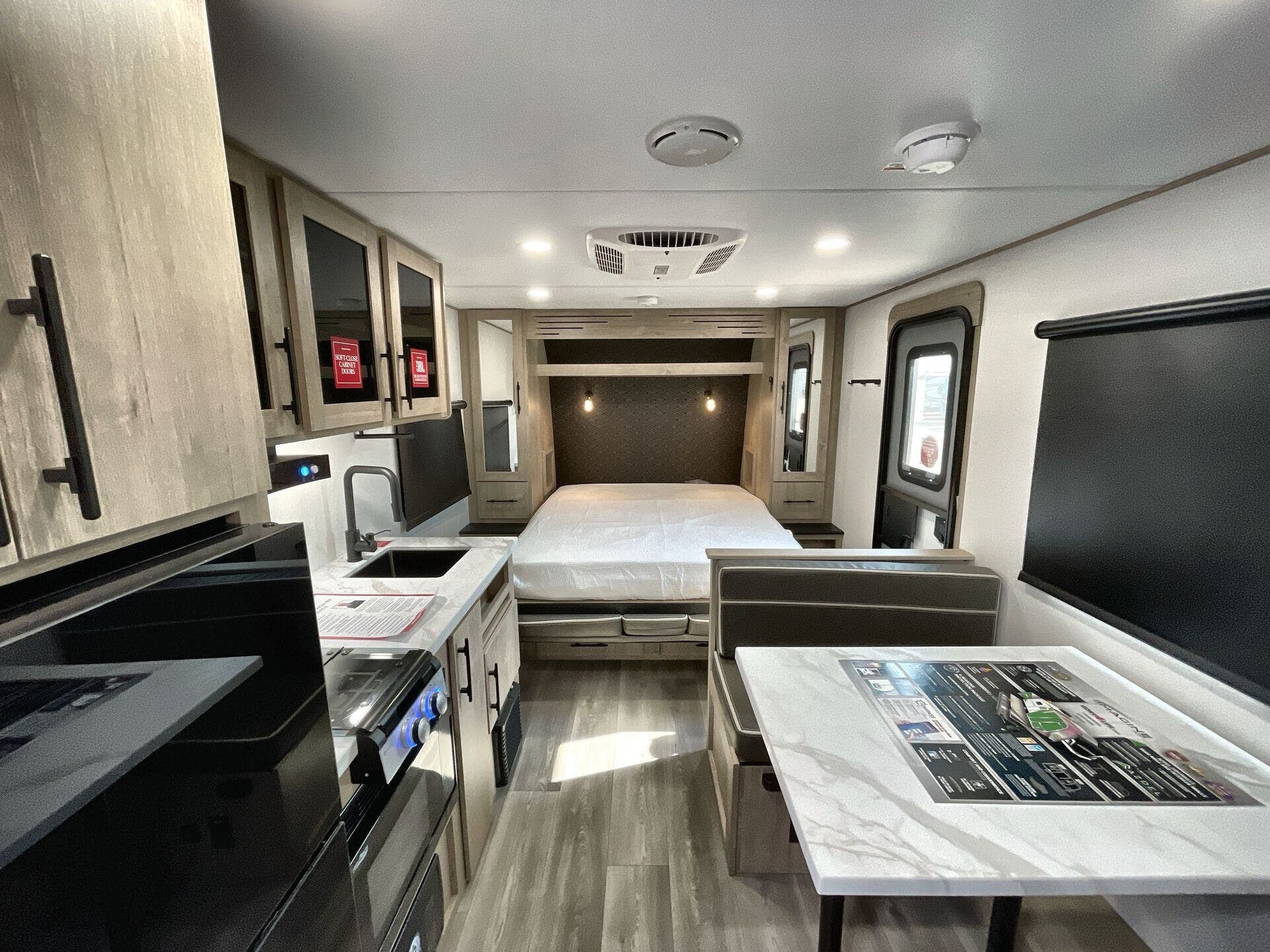 This travel trailer blends a compact size with thoughtful design, delivering a comfortable, home-like experience without the burden of a large footprint. The Murphy bed and booth dinette maximize daytime living space, while the mid-kitchen layout keeps cooking and cleanup within easy reach. With safety features, energy options, and essential appliances, it’s an excellent choice for couples or small families seeking reliability, ease of tow, and versatile RV living in an affordable, new Grand Design lineup.