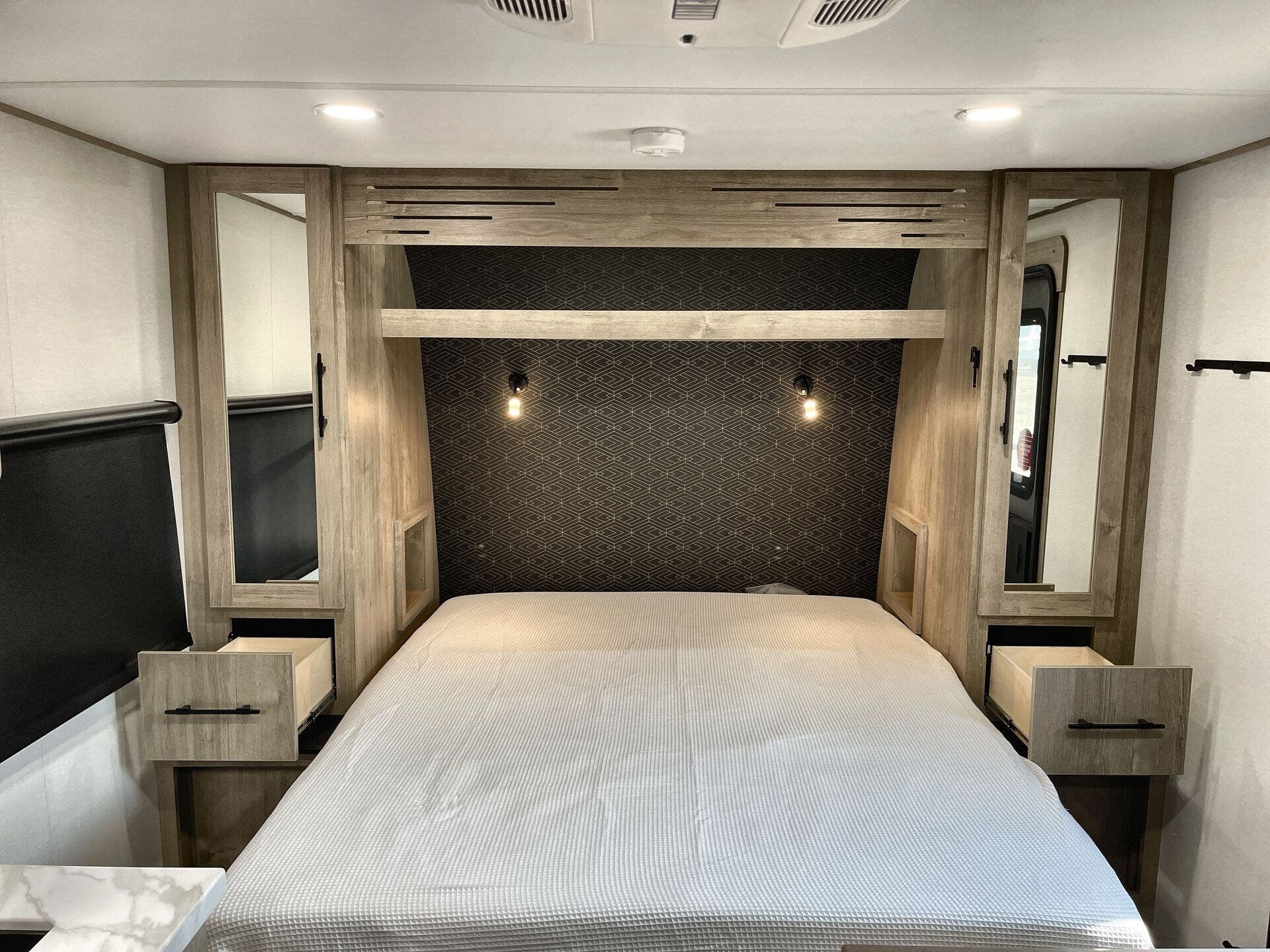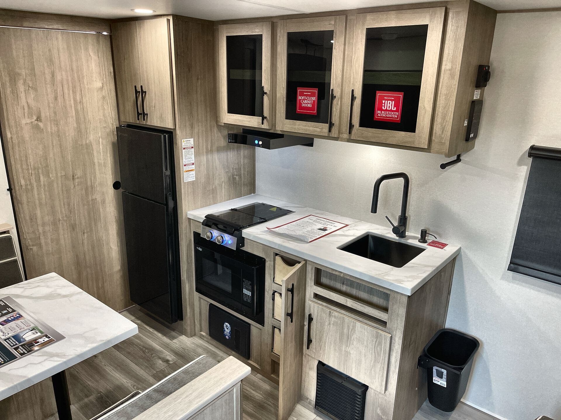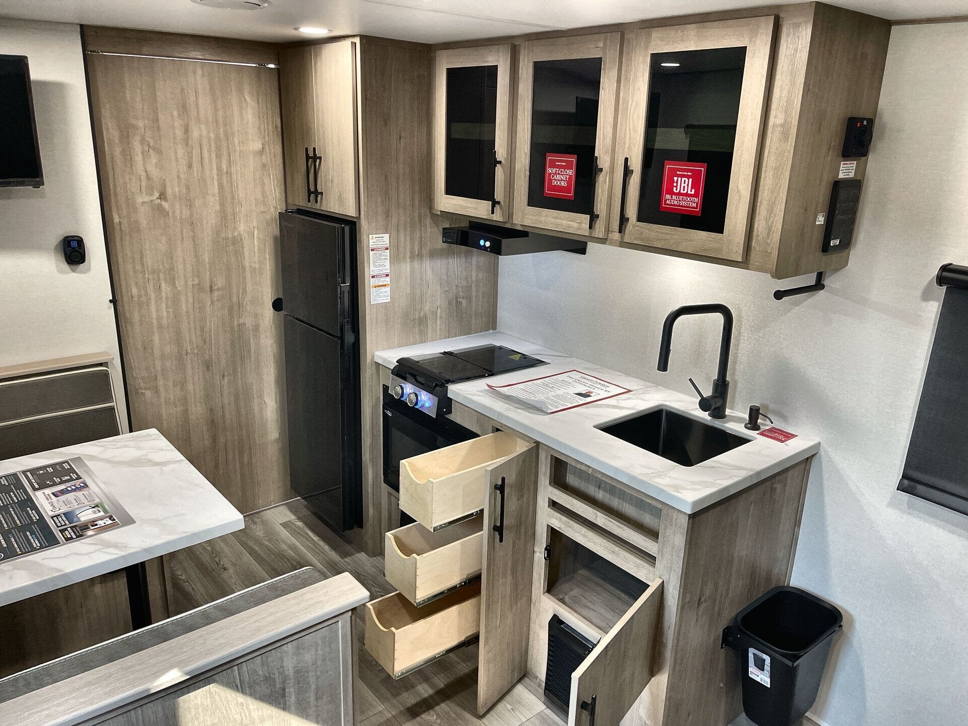 This travel trailer blends a compact size with thoughtful design, delivering a comfortable, home-like experience without the burden of a large footprint. The Murphy bed and booth dinette maximize daytime living space, while the mid-kitchen layout keeps cooking and cleanup within easy reach. With safety features, energy options, and essential appliances, it’s an excellent choice for couples or small families seeking reliability, ease of tow, and versatile RV living in an affordable, new Grand Design lineup.