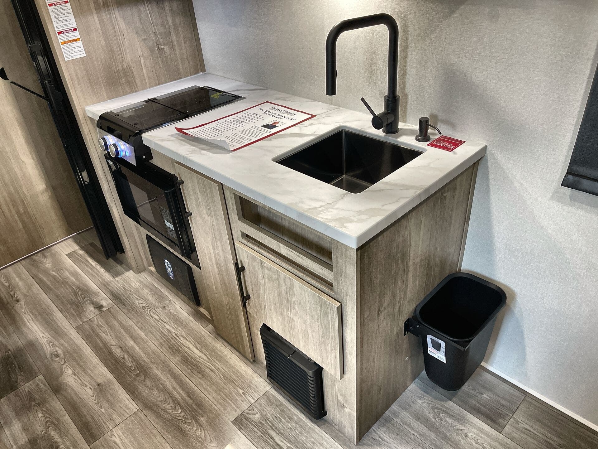 - Booth Dinette and Kitchen Sink for functional daily living spaces