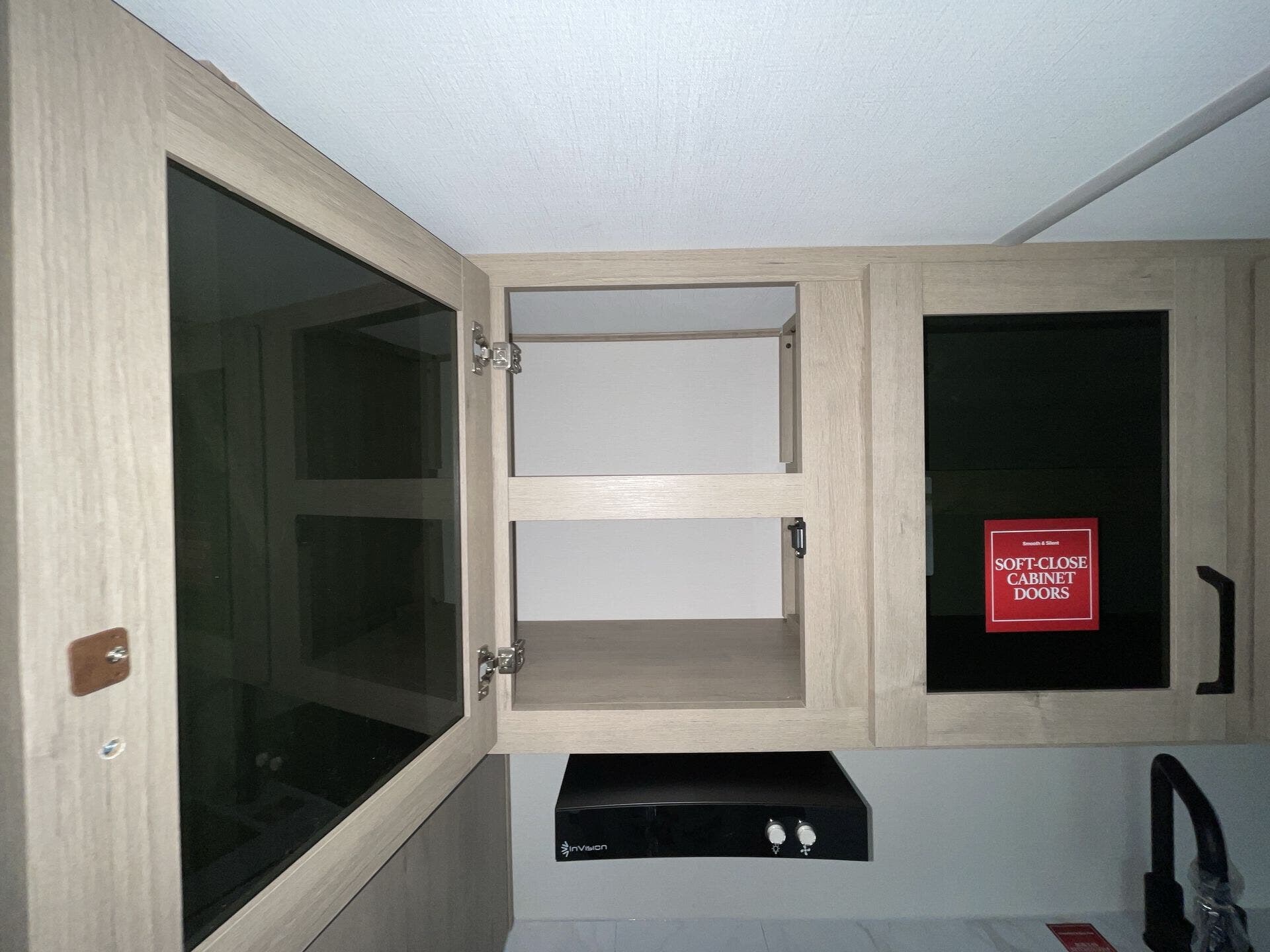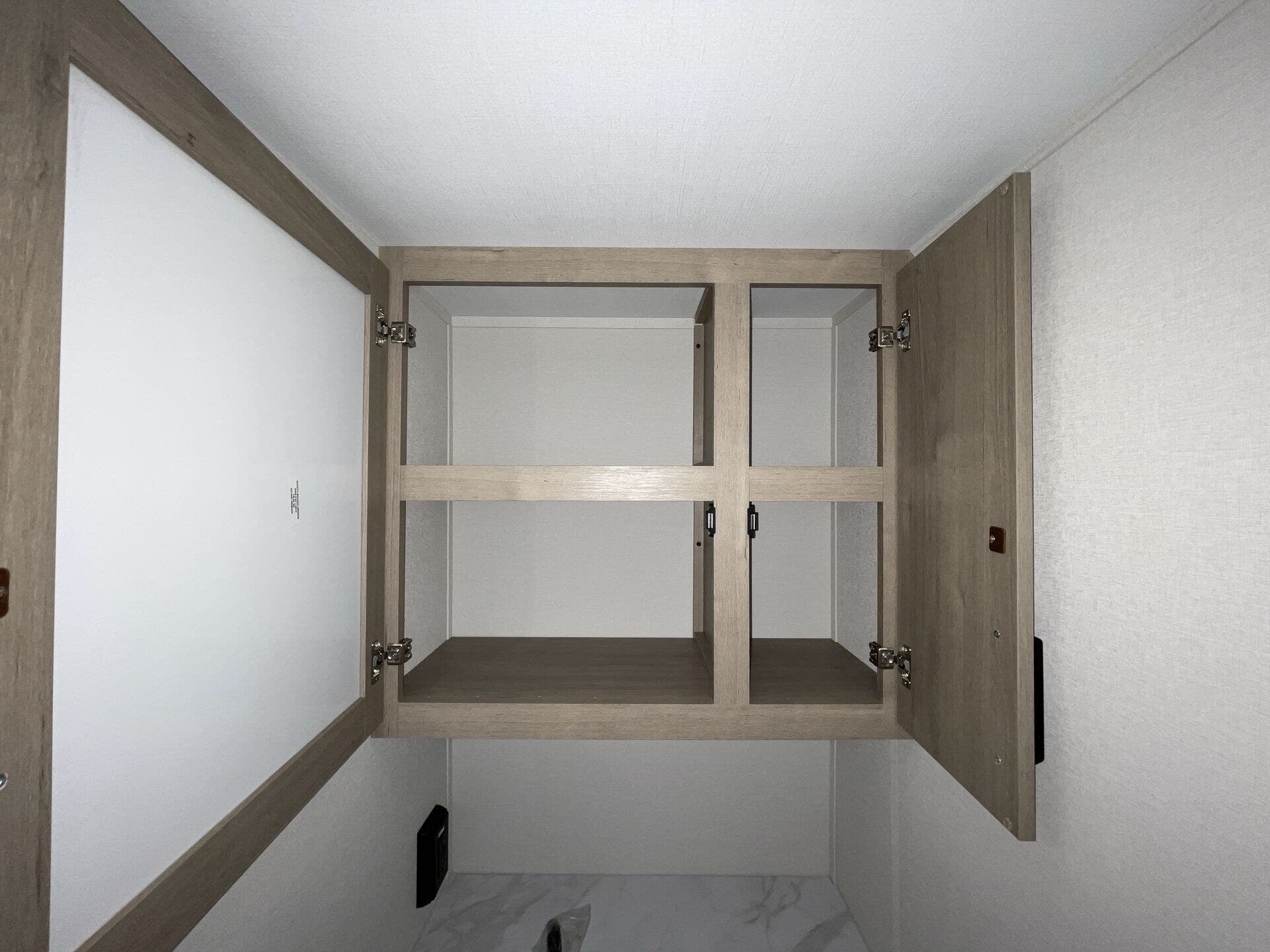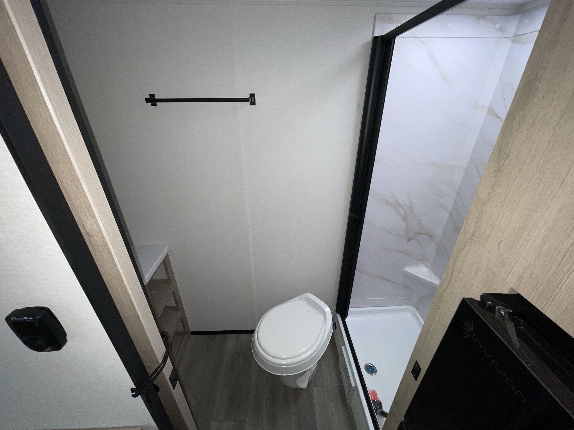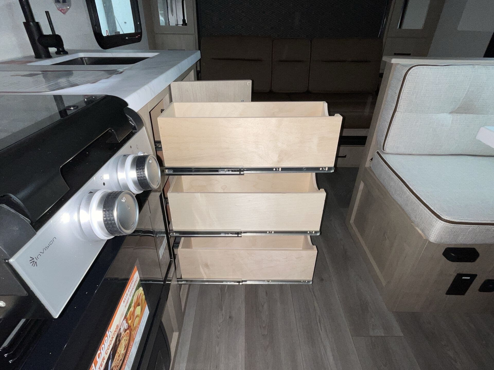 The rear bath setup is way better than having a tiny corner wet bath. It gives you real space to move around, and the front bedroom area feels private and practical. The kitchen handles the basics without feeling awkward — good fridge size, counter space that actually works, and storage that’s more than just a token cabinet.