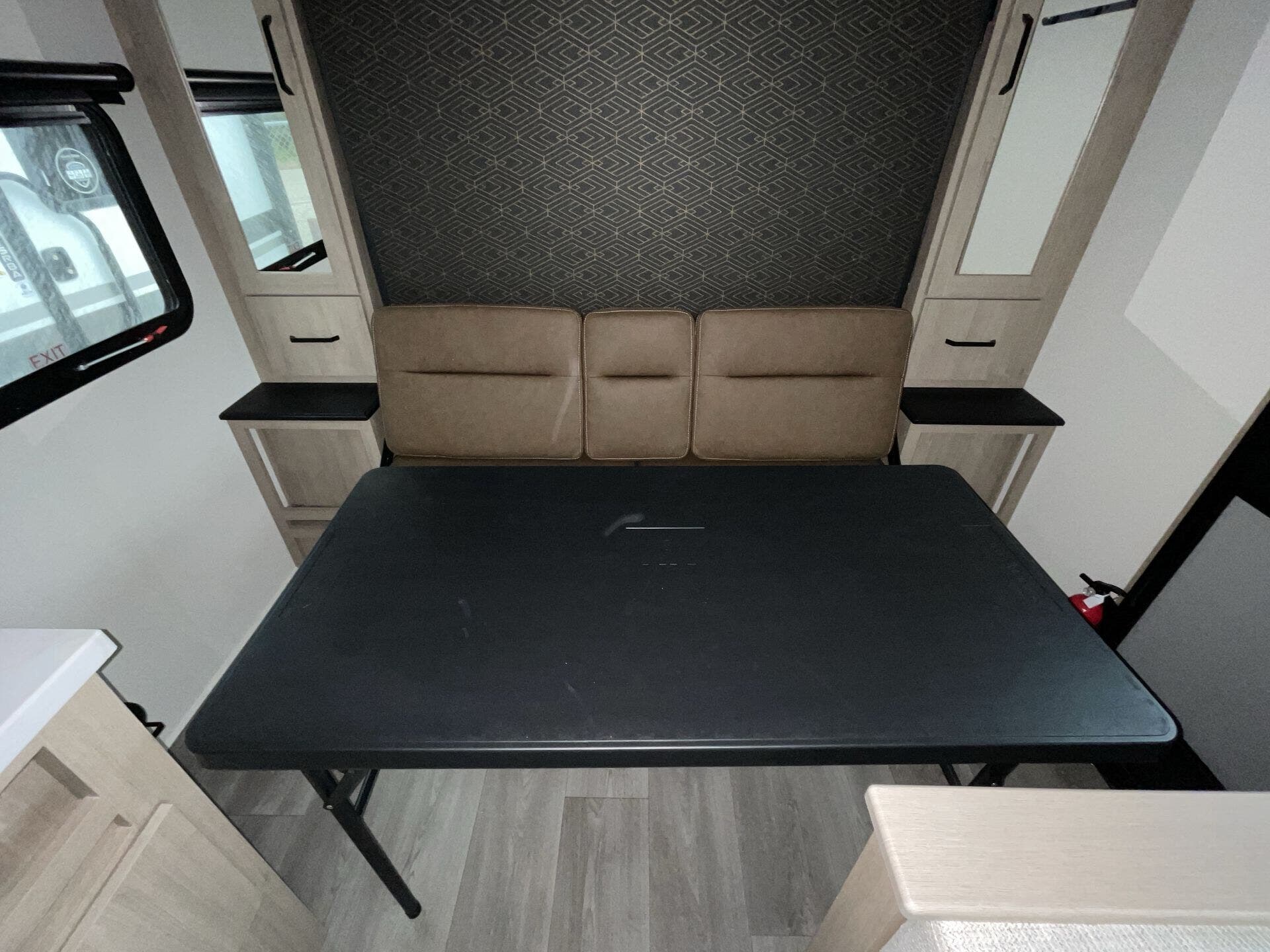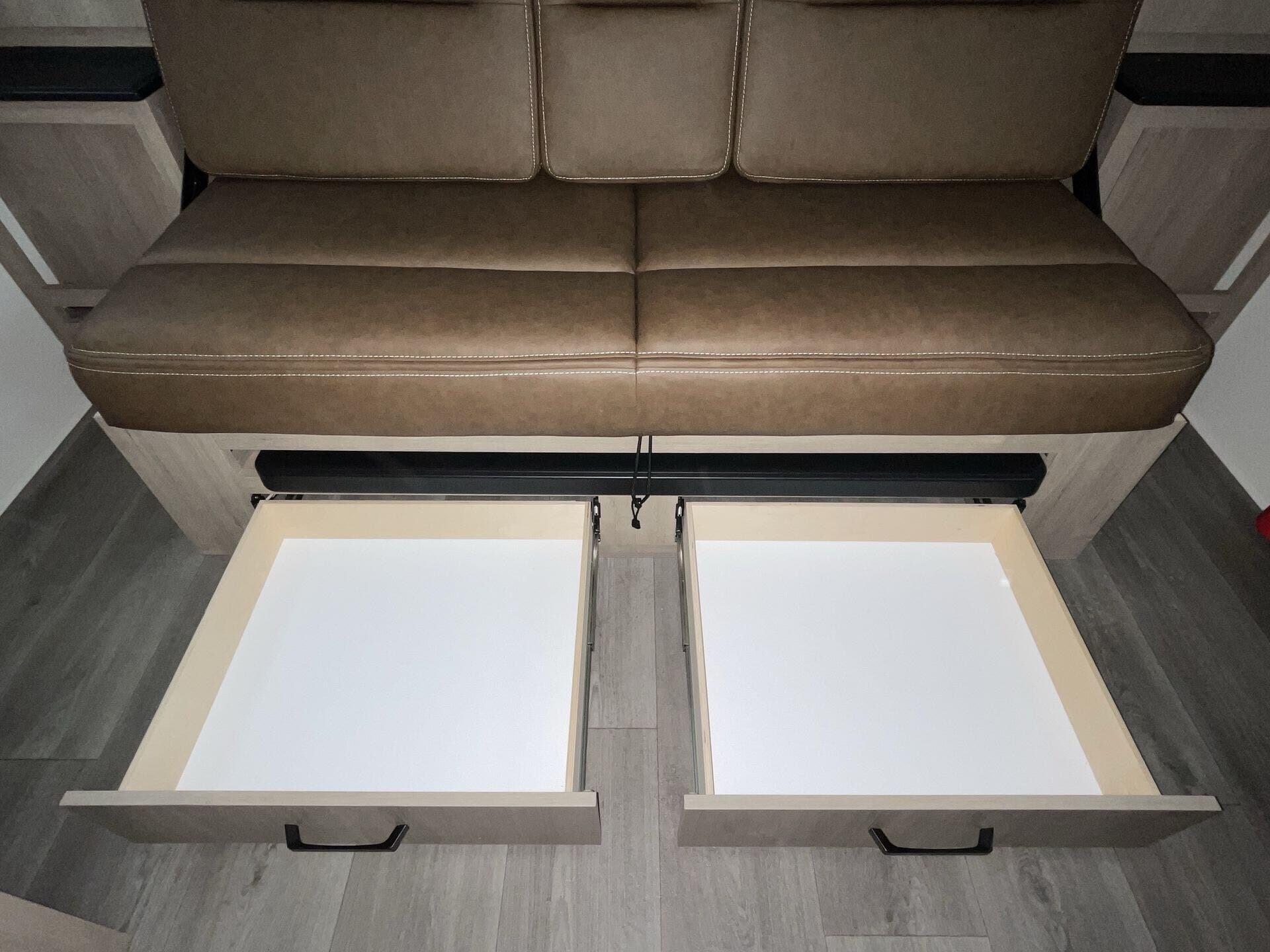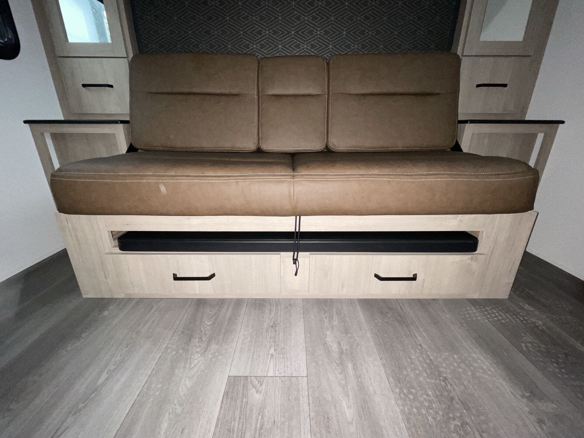 Booth Dinette, Dinette, Dinette Bed, Kitchen Sink, Medicine Cabinet, Murphy Bed, Overhead Cabinetry, Removable Table, Roof Vents, Shower, Sofa Bed, Solid Surface Countertops, Toilet, Wardrobe(s) -