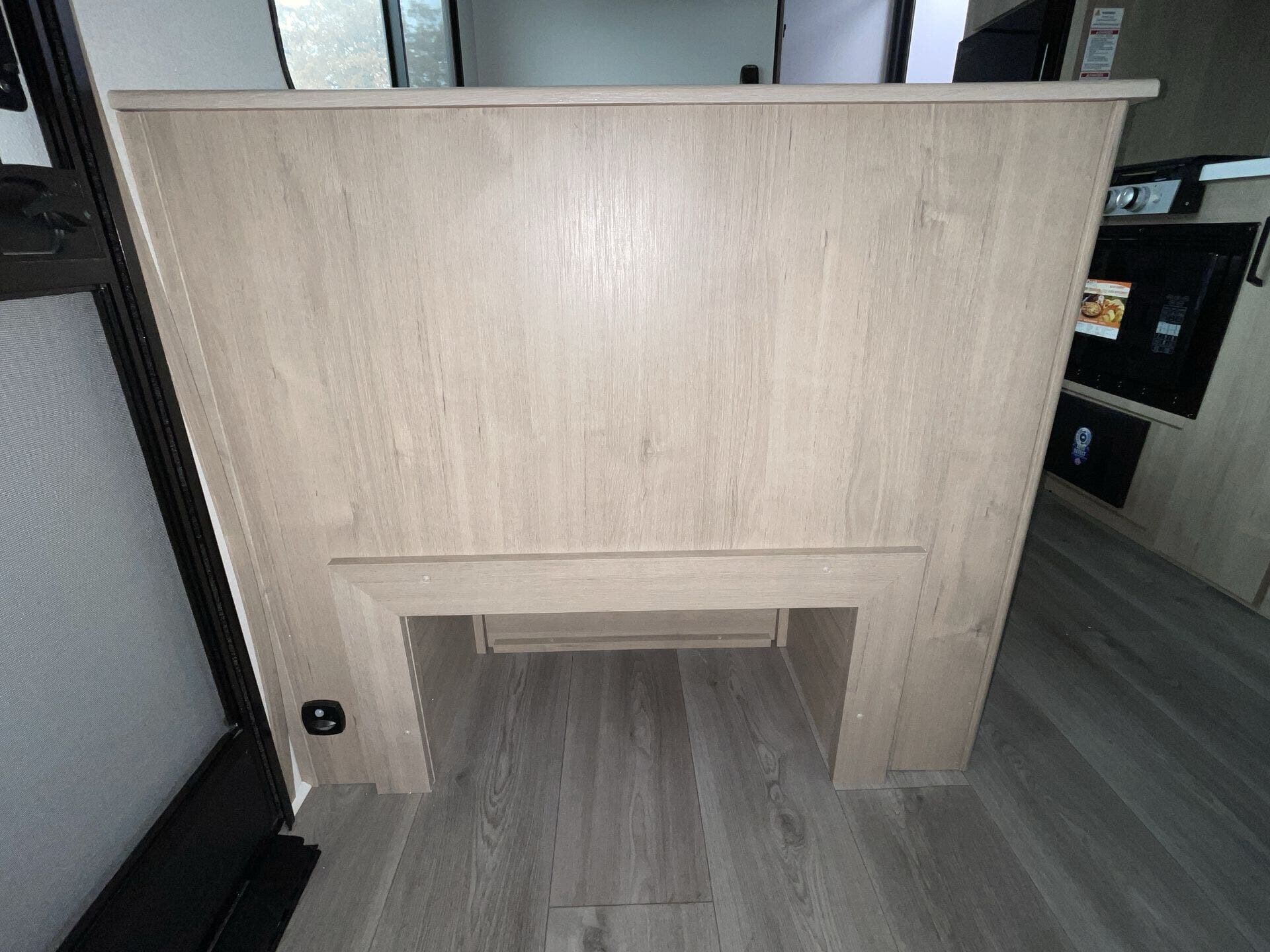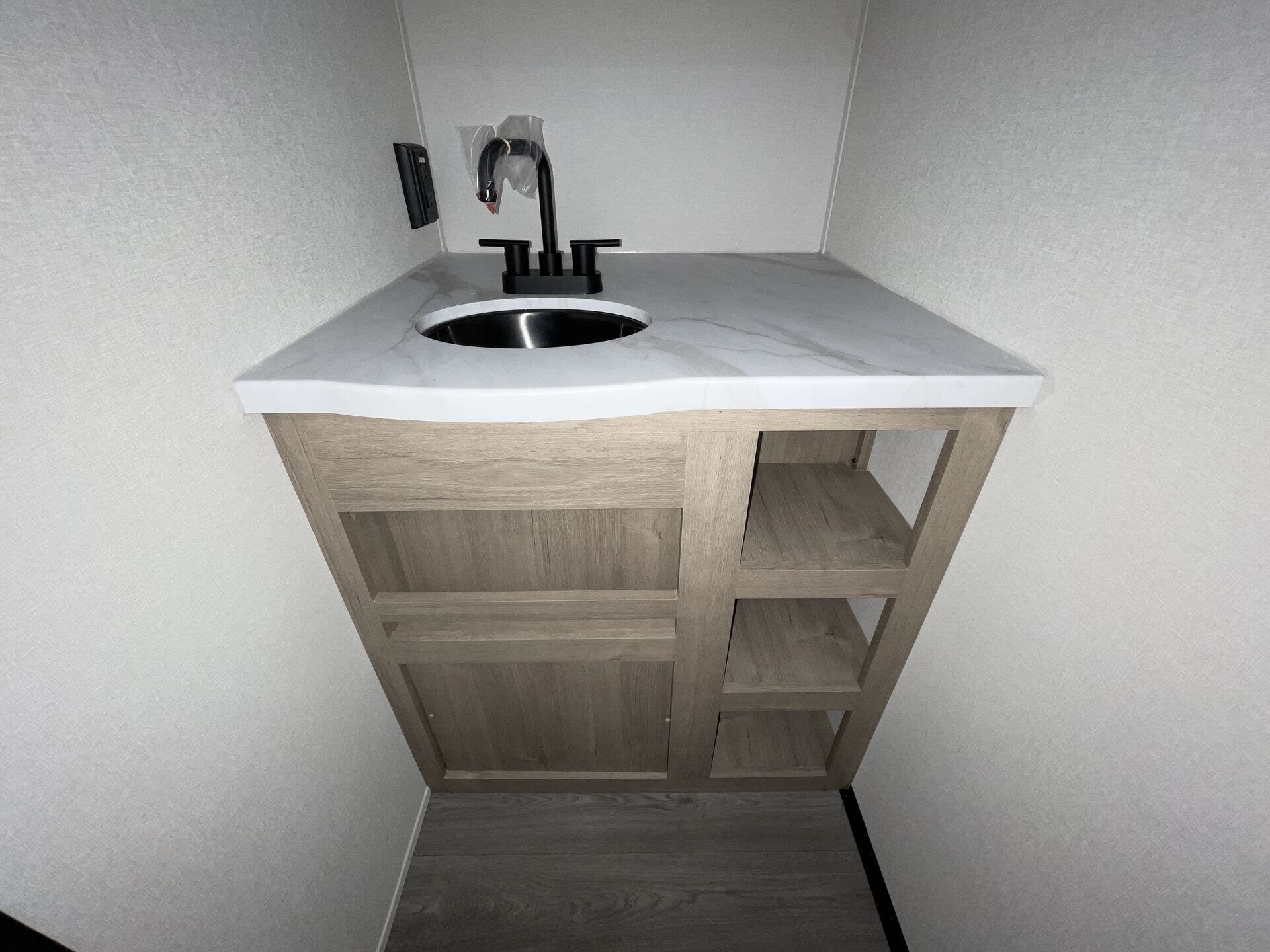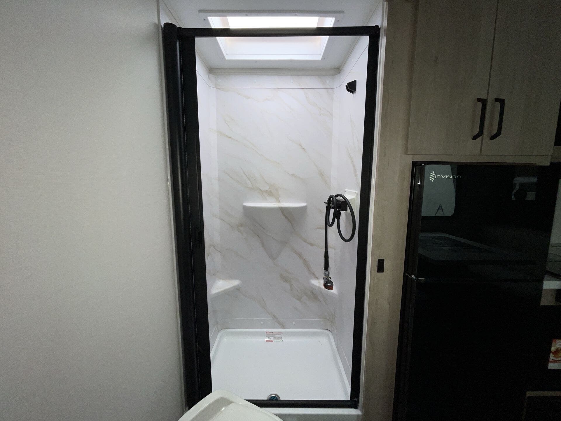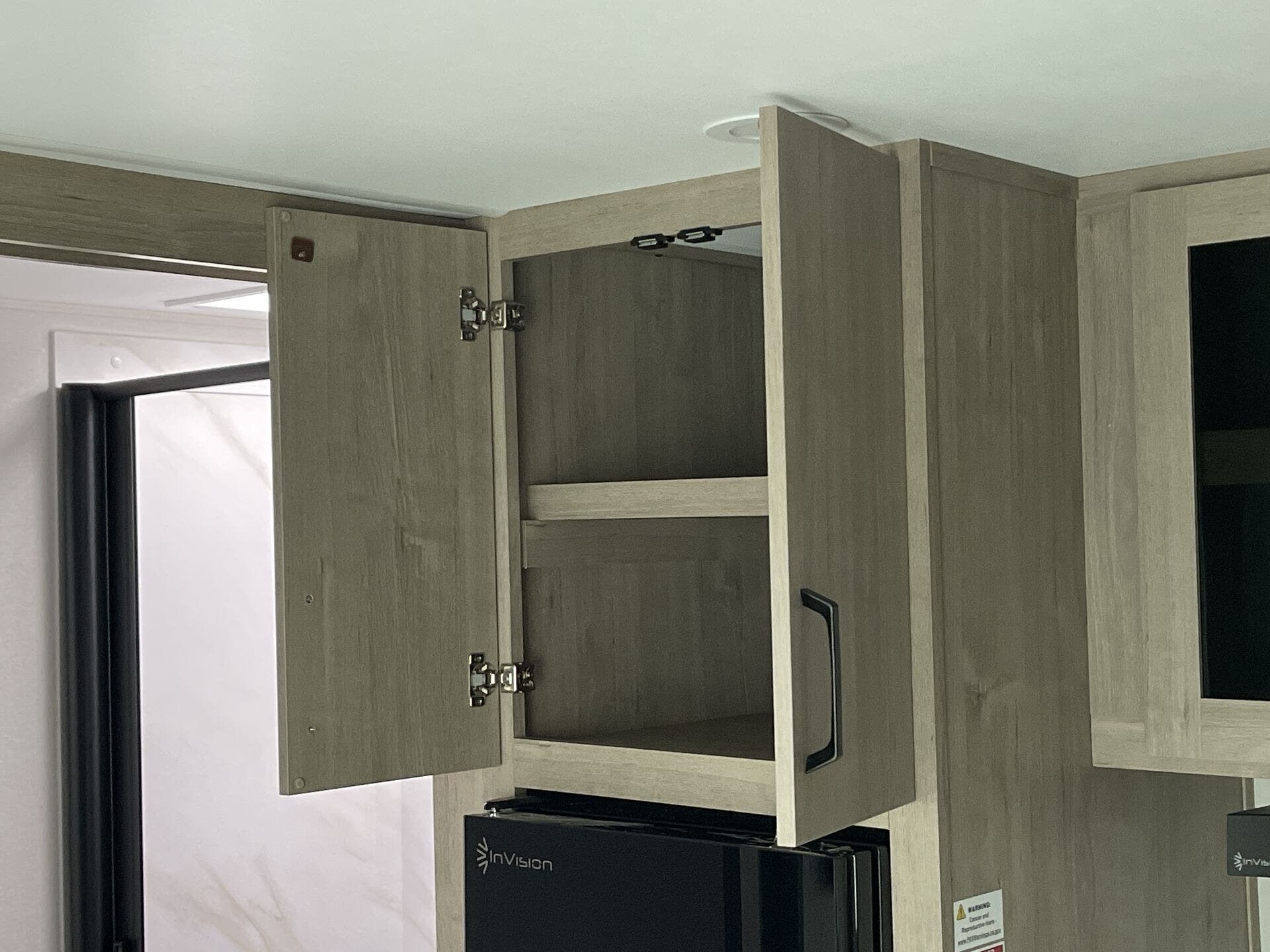 The rear bath setup is way better than having a tiny corner wet bath. It gives you real space to move around, and the front bedroom area feels private and practical. The kitchen handles the basics without feeling awkward — good fridge size, counter space that actually works, and storage that’s more than just a token cabinet.