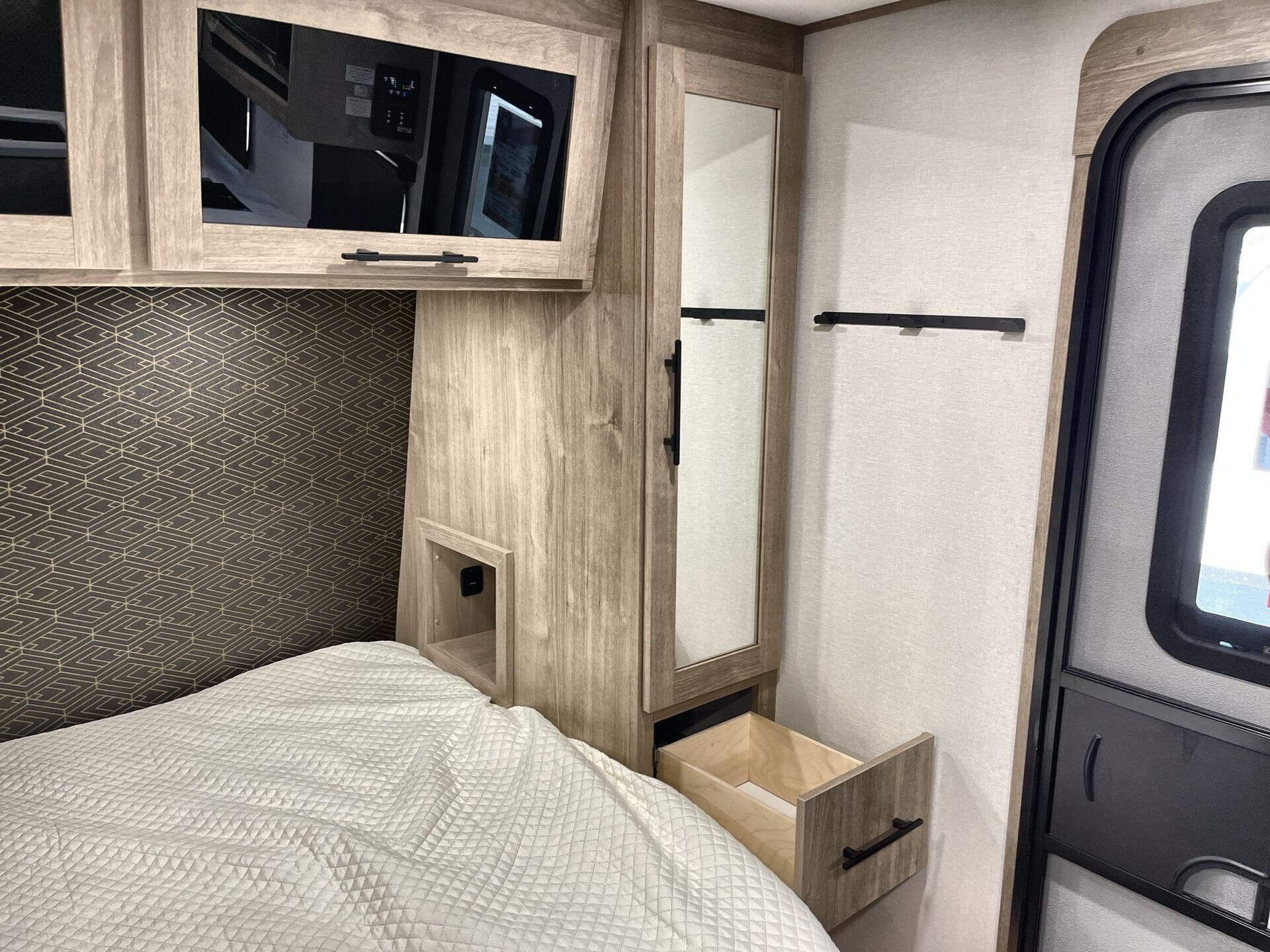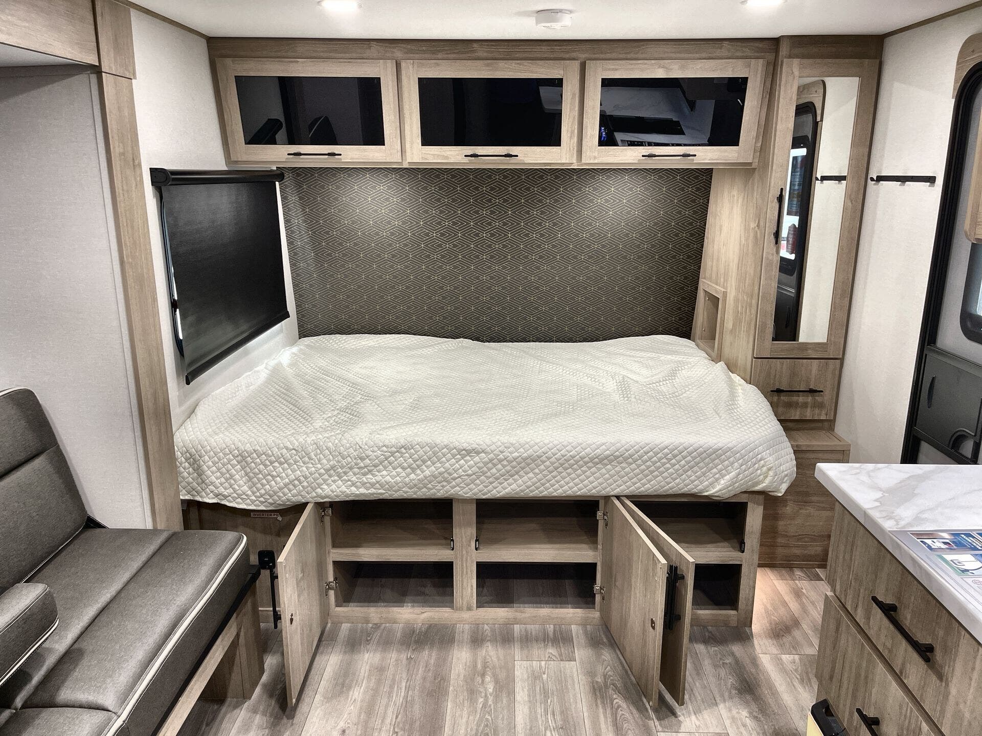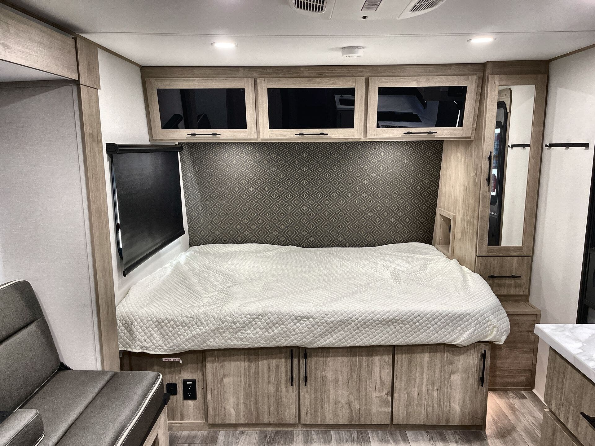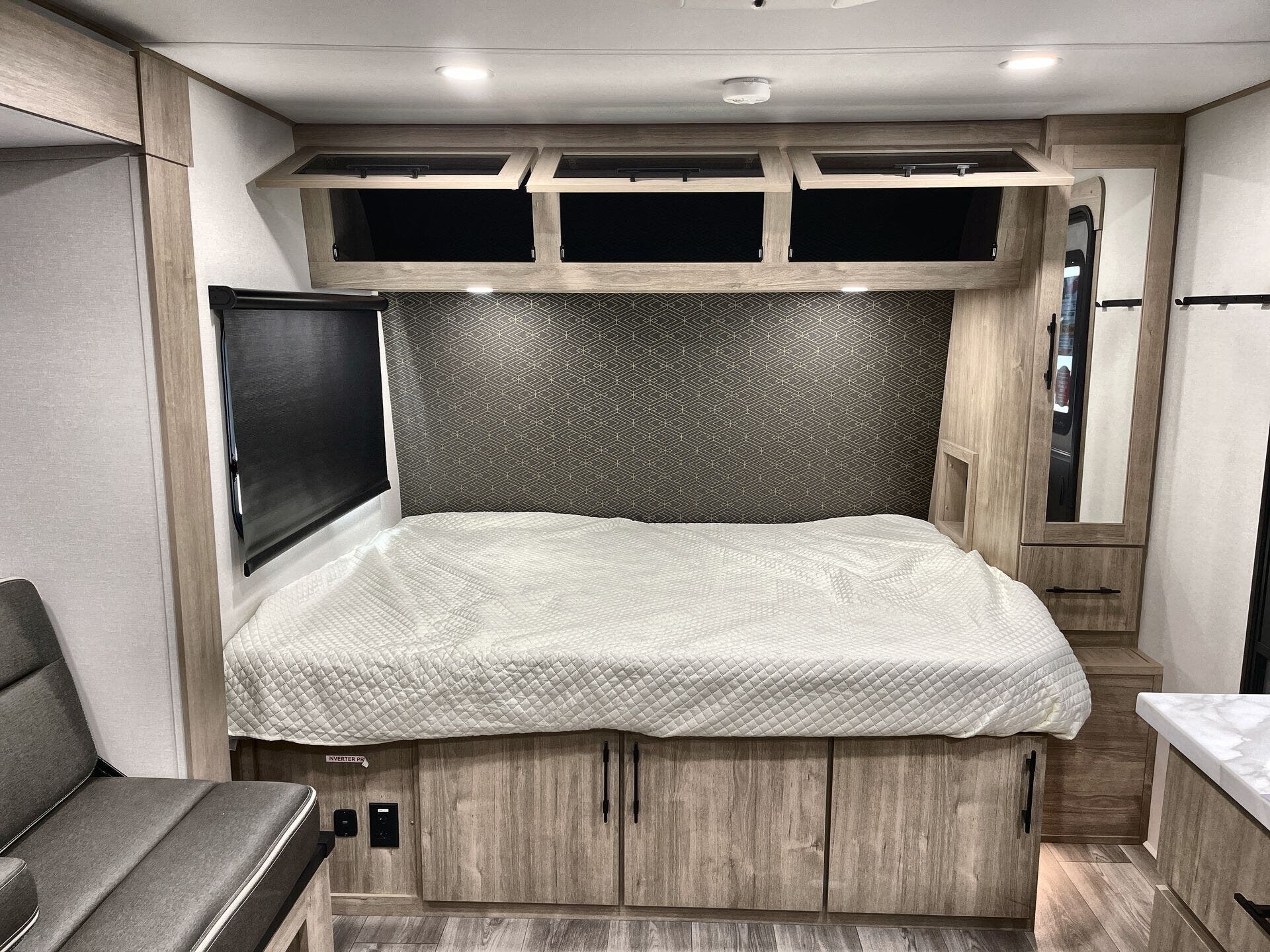 Designed for easy towing and carefree camping, the Imagine AIM includes a power awning with lighting, a detachable power cord, and a backup camera to simplify hitching and maneuvering. A solar panel reduces draw on the battery bank, helping you stay off-grid longer. With one reliable air conditioner, this model keeps your campsite cool on hot days while the overall build quality from Grand Design promises years of dependable use.