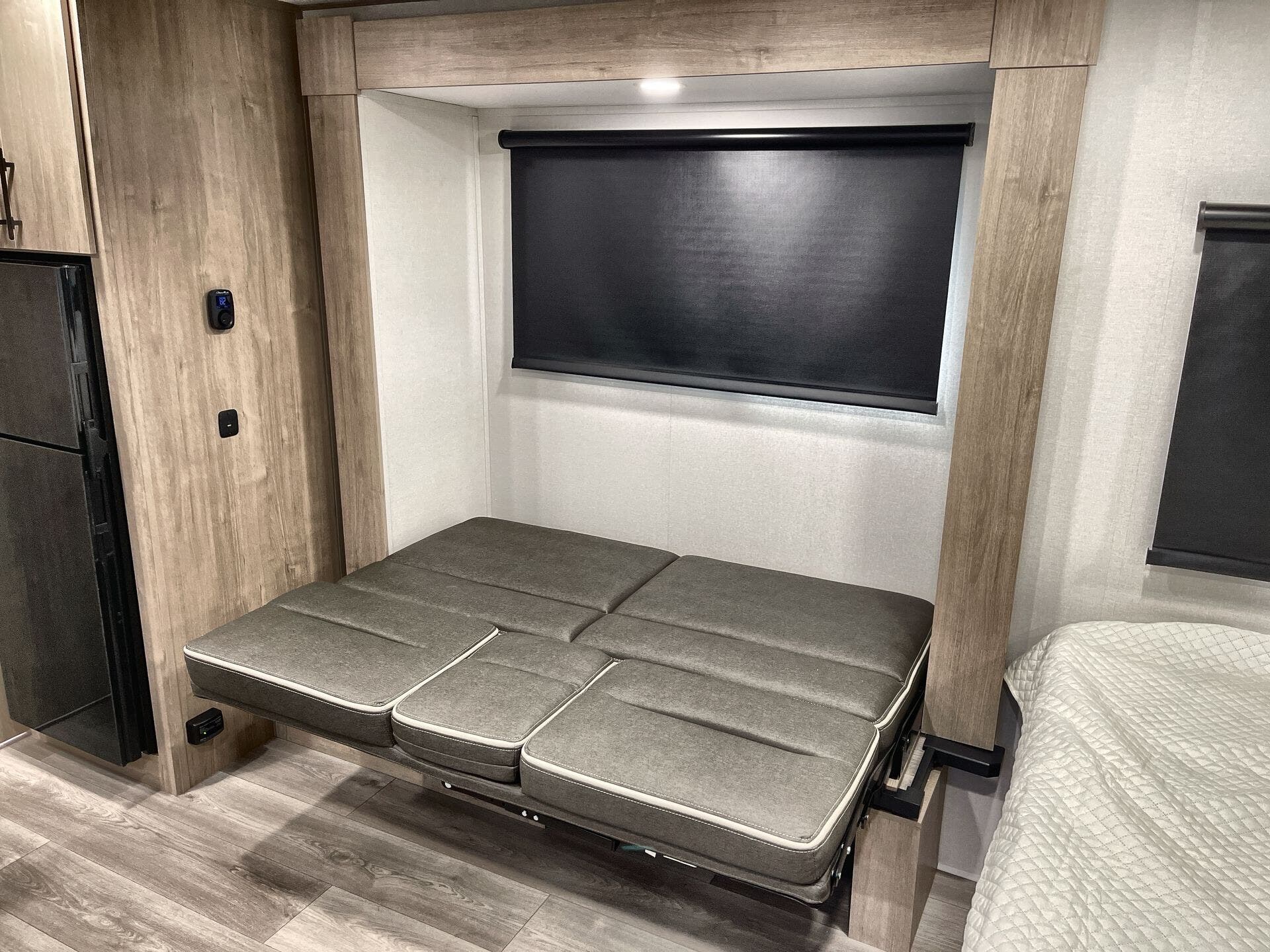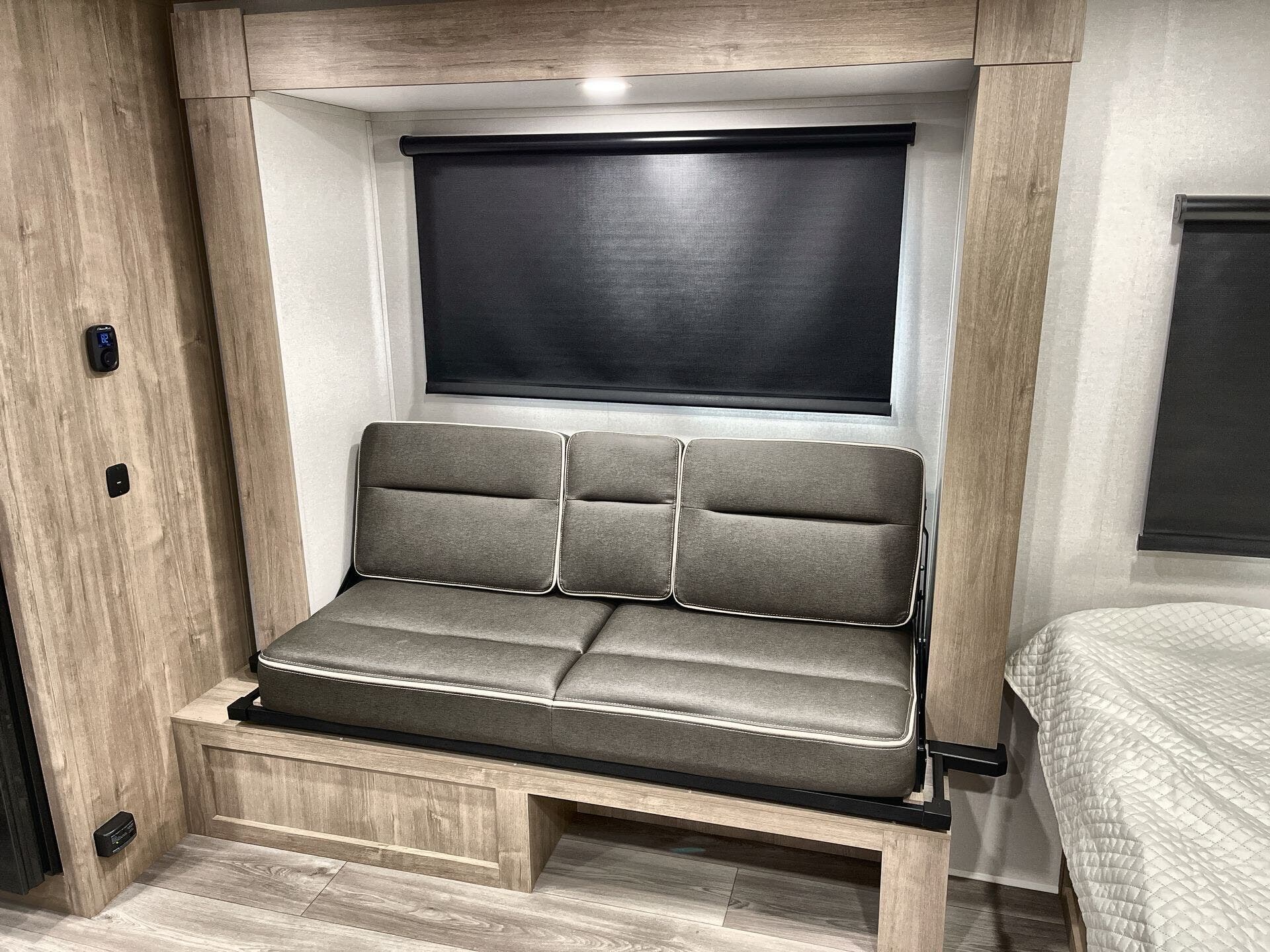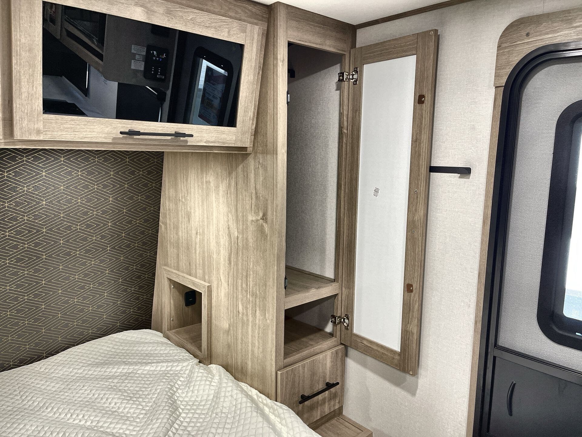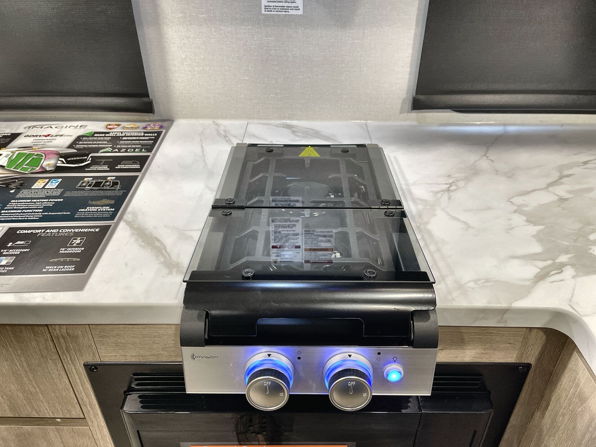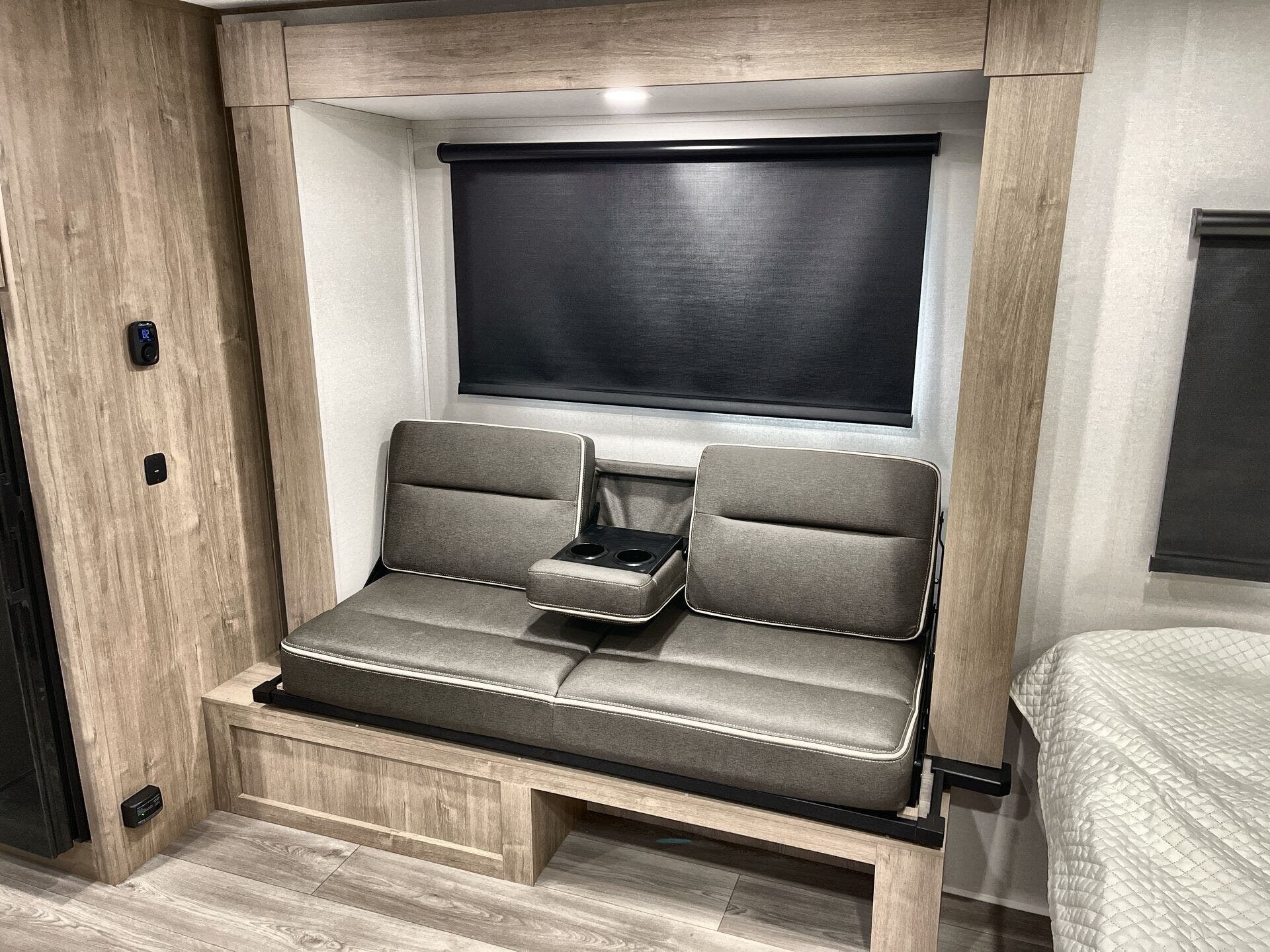 Designed for easy towing and carefree camping, the Imagine AIM includes a power awning with lighting, a detachable power cord, and a backup camera to simplify hitching and maneuvering. A solar panel reduces draw on the battery bank, helping you stay off-grid longer. With one reliable air conditioner, this model keeps your campsite cool on hot days while the overall build quality from Grand Design promises years of dependable use.