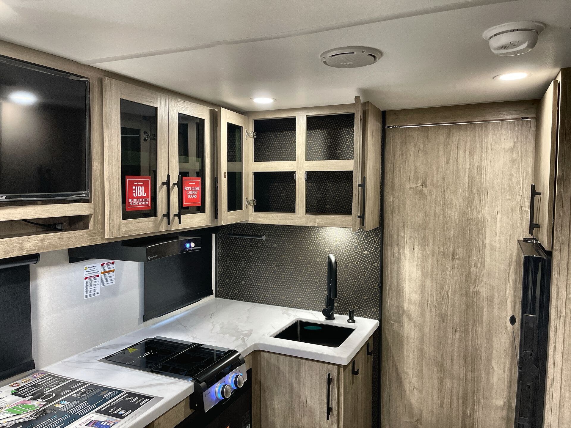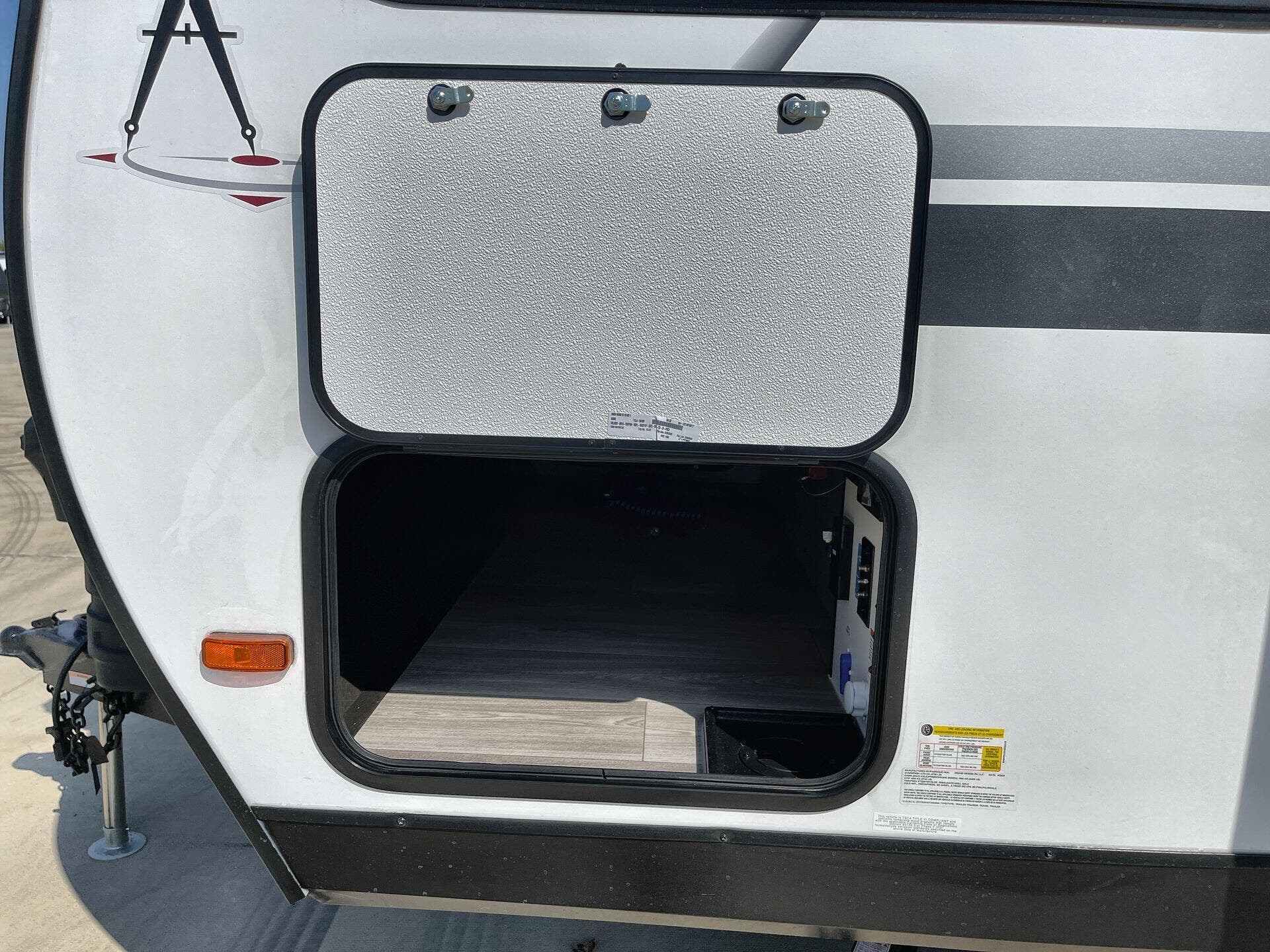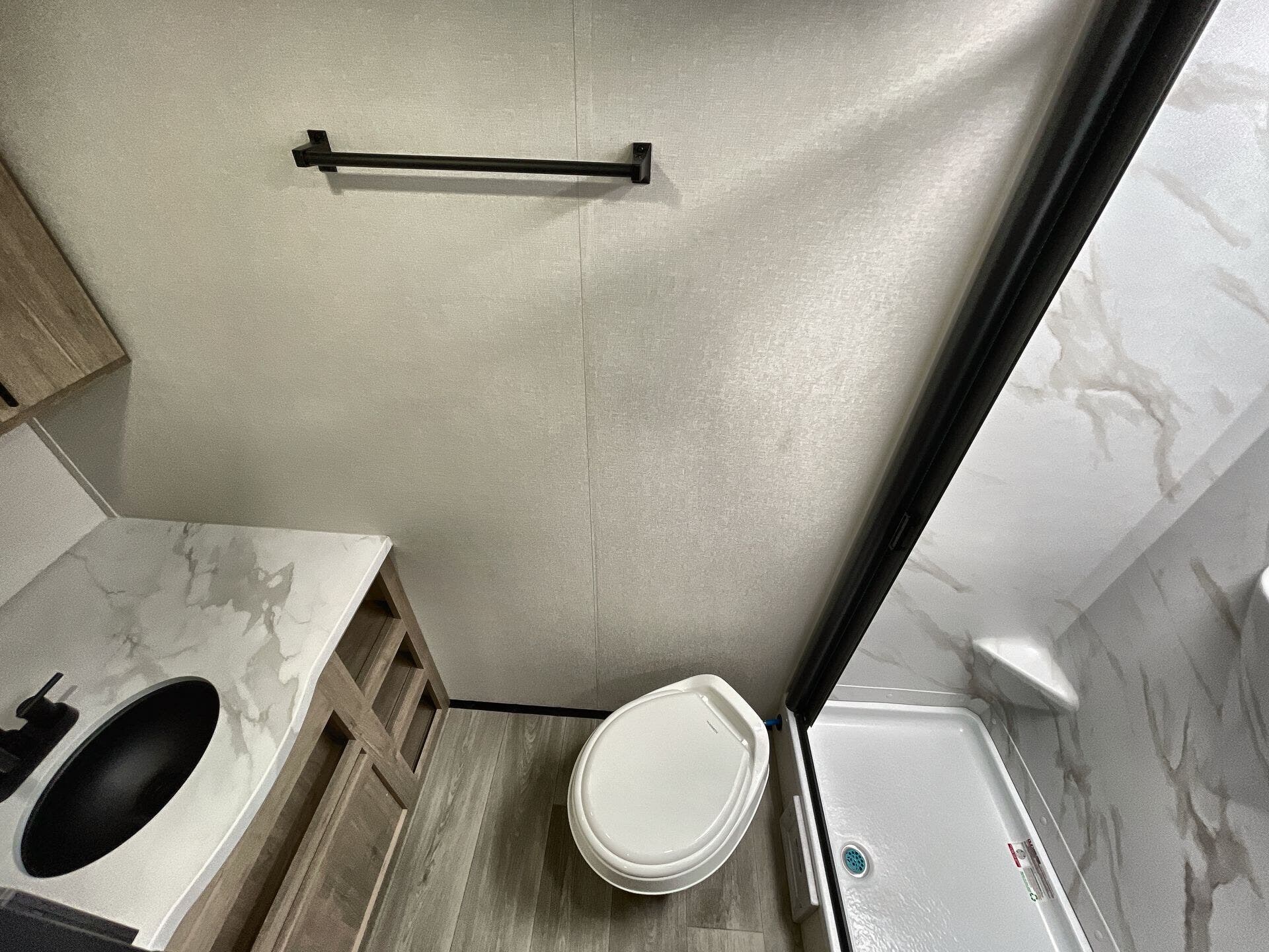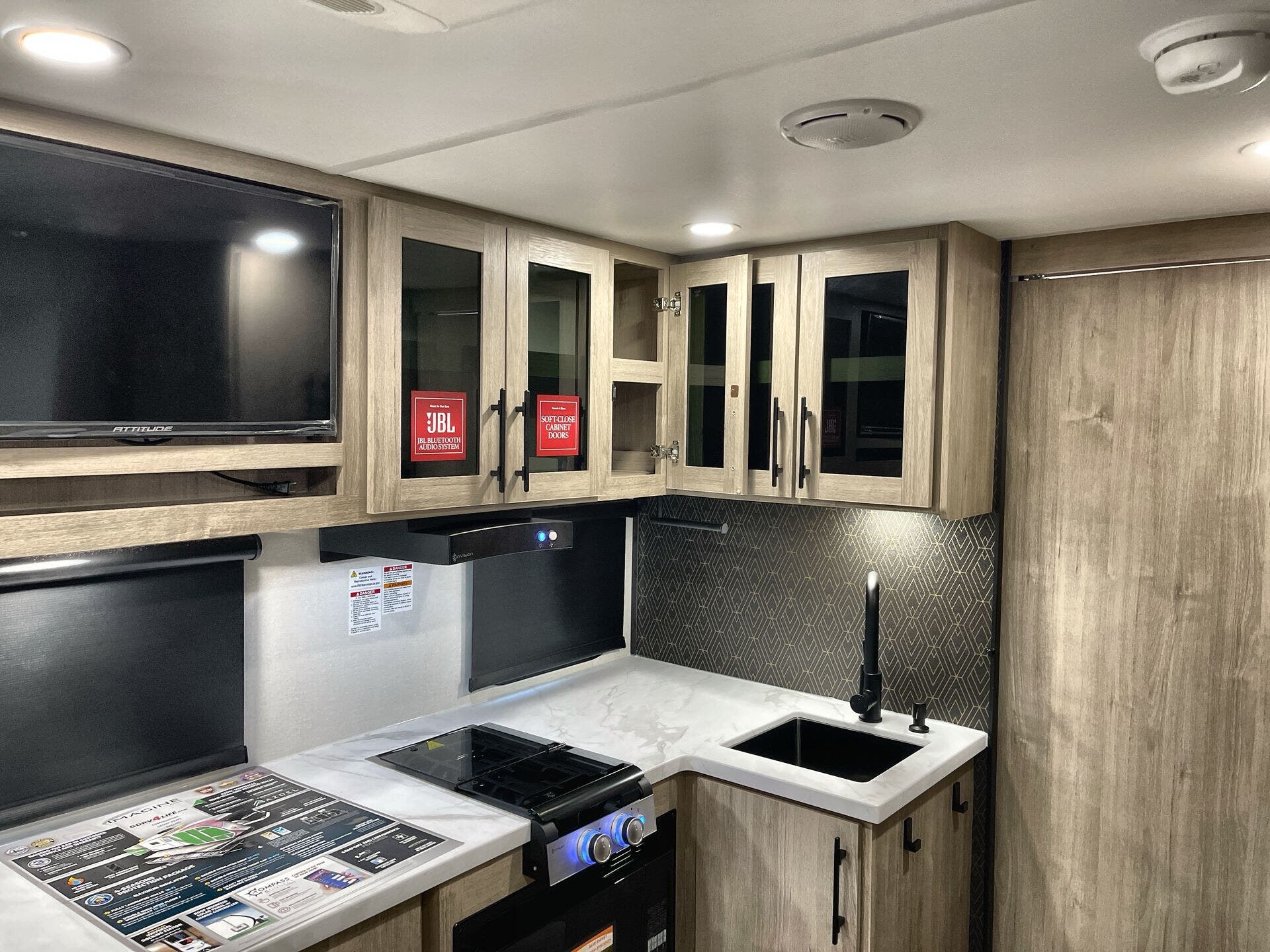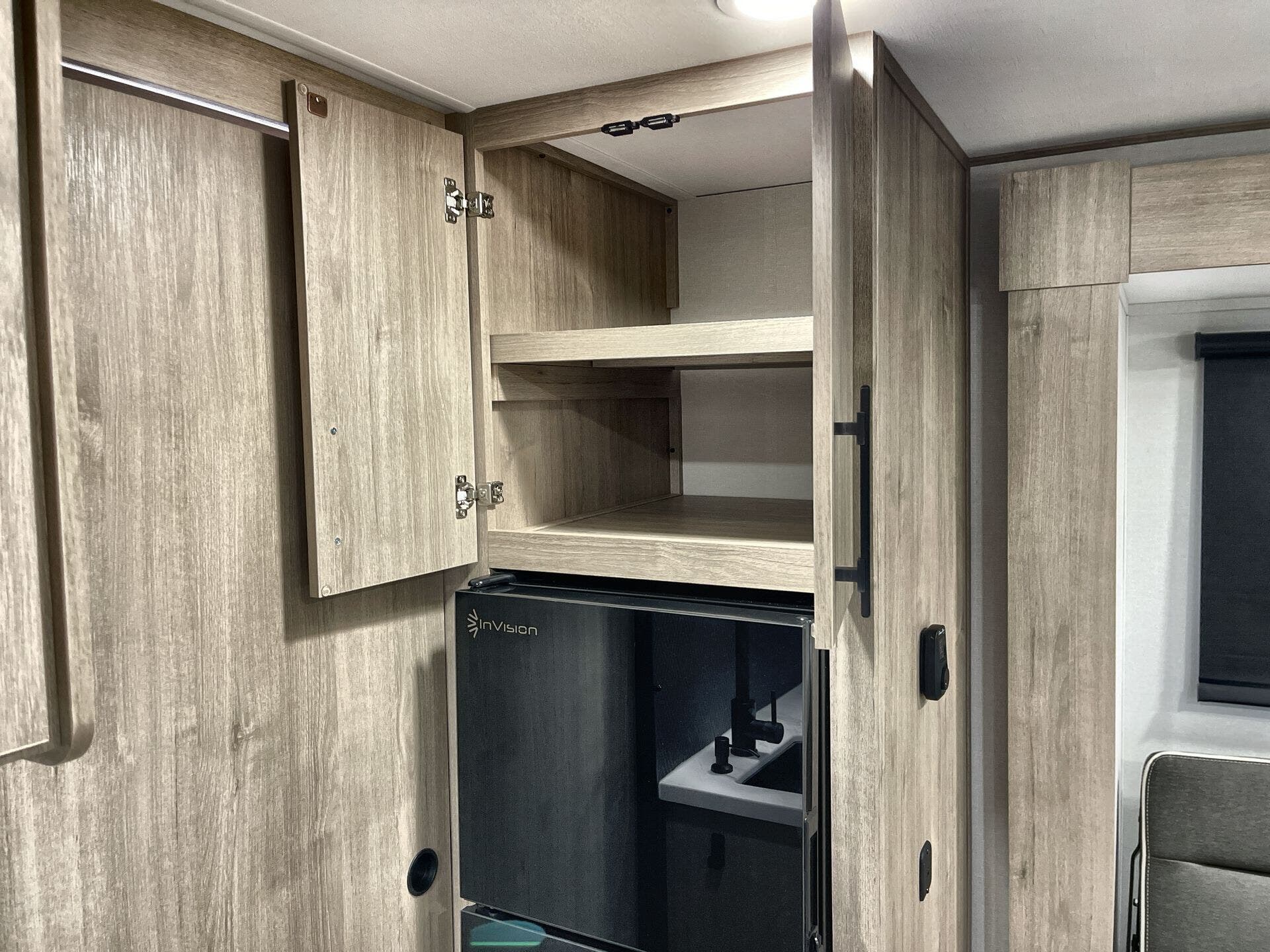 This travel trailer excels in efficiency and comfort. It features a well-equipped kitchen with both a microwave and a convection microwave for versatile cooking, a refrigerator to keep perishables fresh, and a dependable water heater for hot shows. The living area includes LED lighting, a dinette with a removable table, and a TV for easy entertainment. A dedicated shower keeps morning routines simple, while a queen bed and skylight add a touch of homey luxury. The enclosed underbelly provides additional protection against the elements, and the insulated construction helps maintain comfortable temperatures year-round.