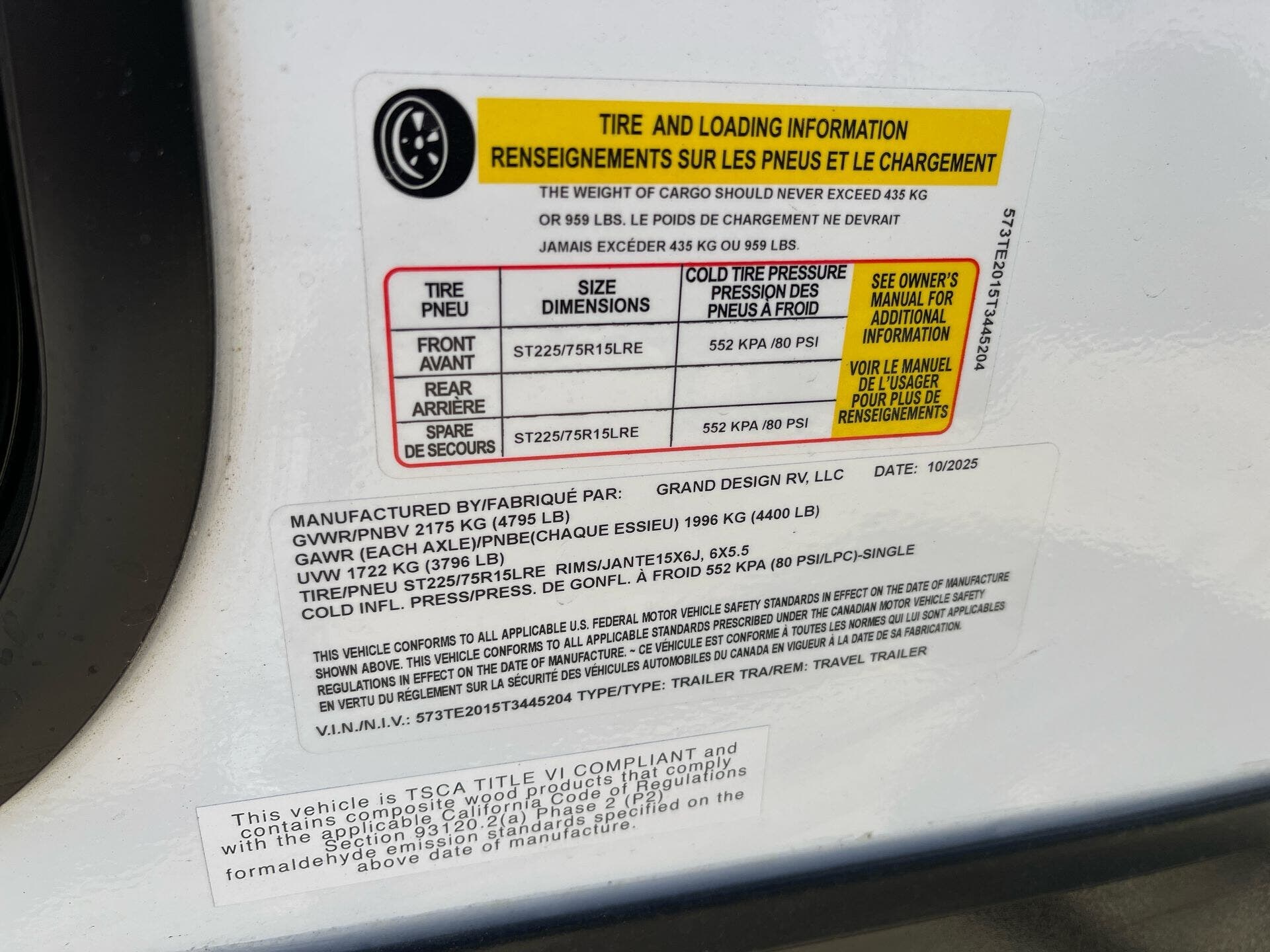 - VIN573TE2015T3445204