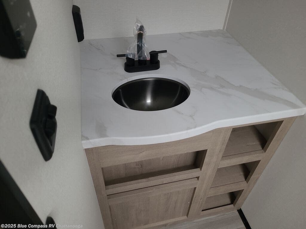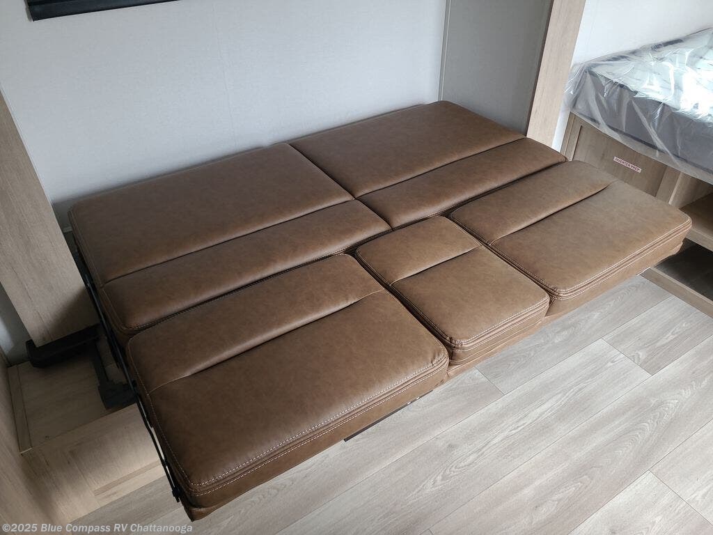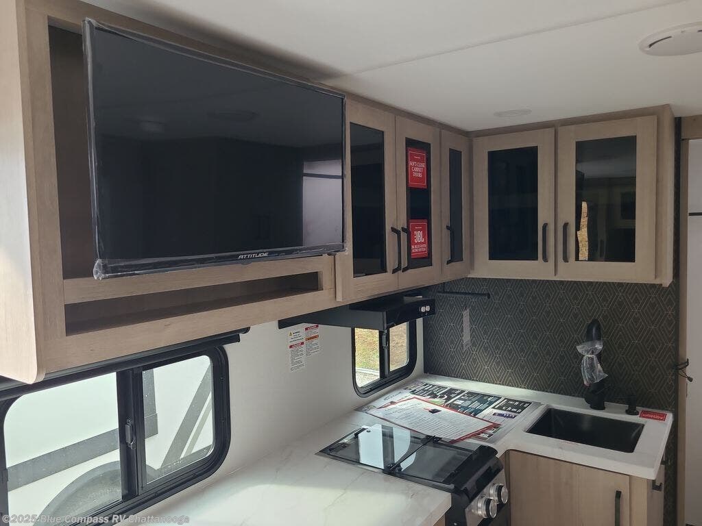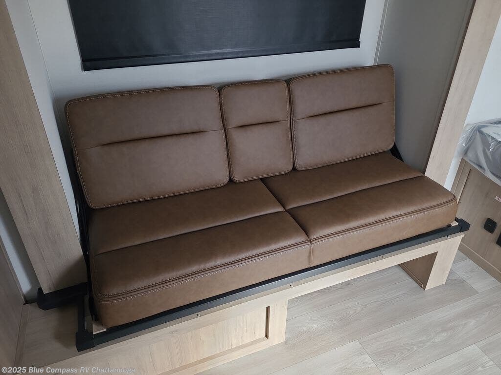 Pack your bags and head out on a fun camping trip in this travel trailer! The front queen bed offers a comfortable place to sleep at night, as well as the roll-over sleeper sofa slide with shoe storage. You can make meals on the cooktop or in the convection microwave. The full rear bathroom has a walk-in shower with an oversized vanity to easily get ready each day. Outside, you'll find a spray port, an unobstructed pass-thru storage, and an interior/exterior table to use at your convenience.